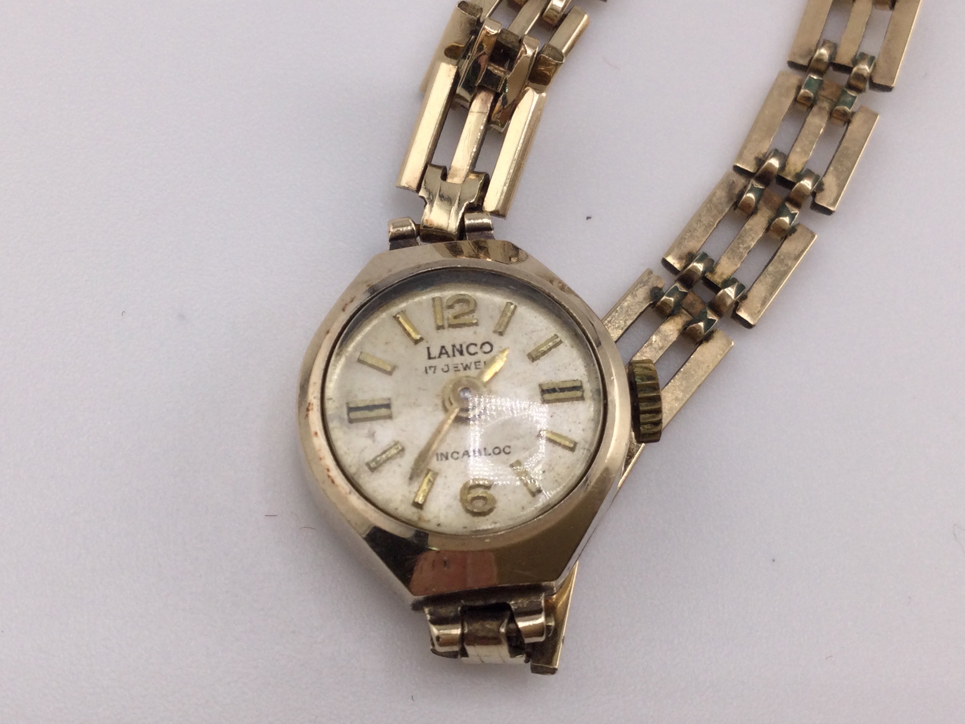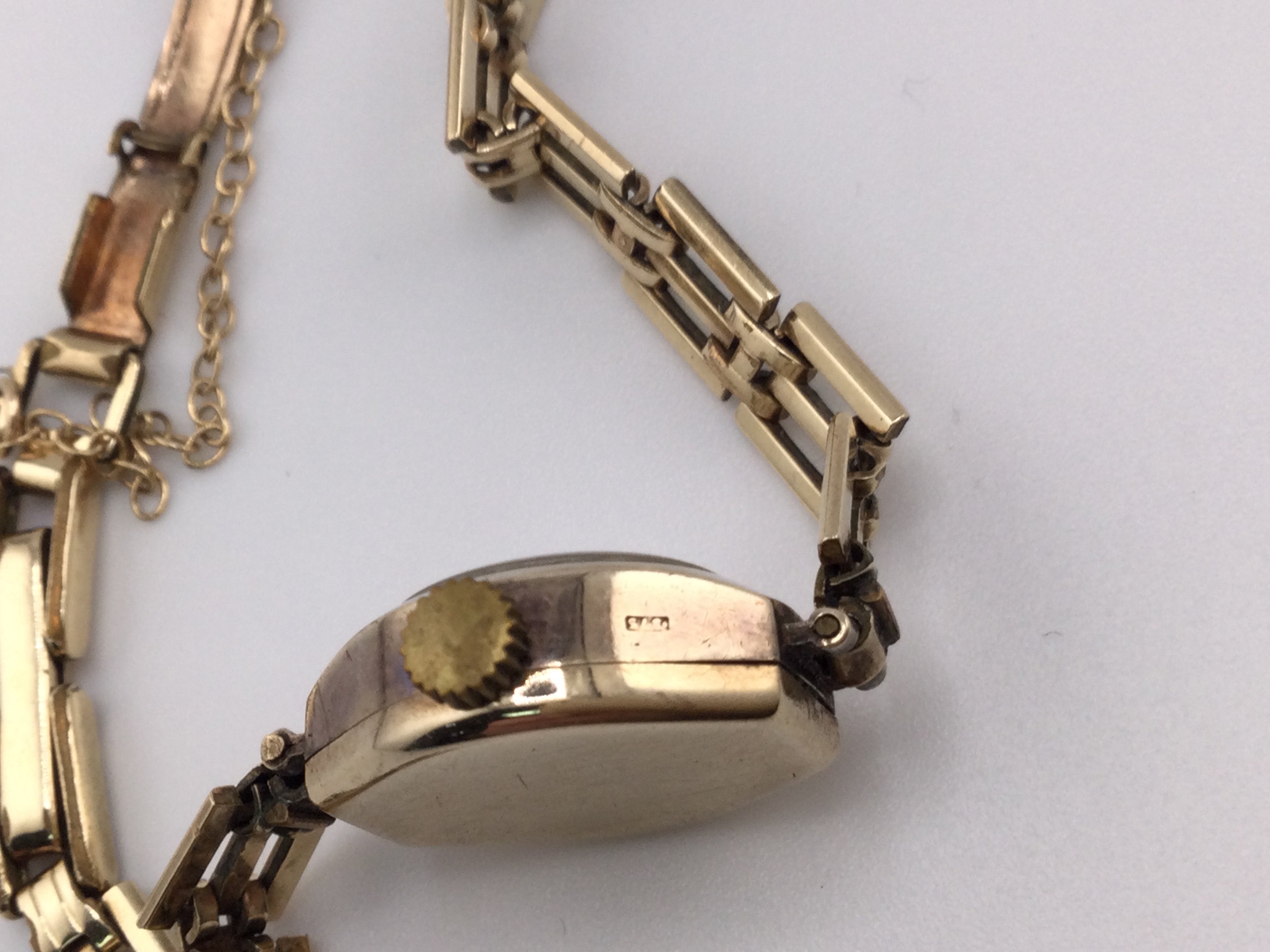 9ct gold vintage gold ladies watch with 9ct metal core strap. 9.95g