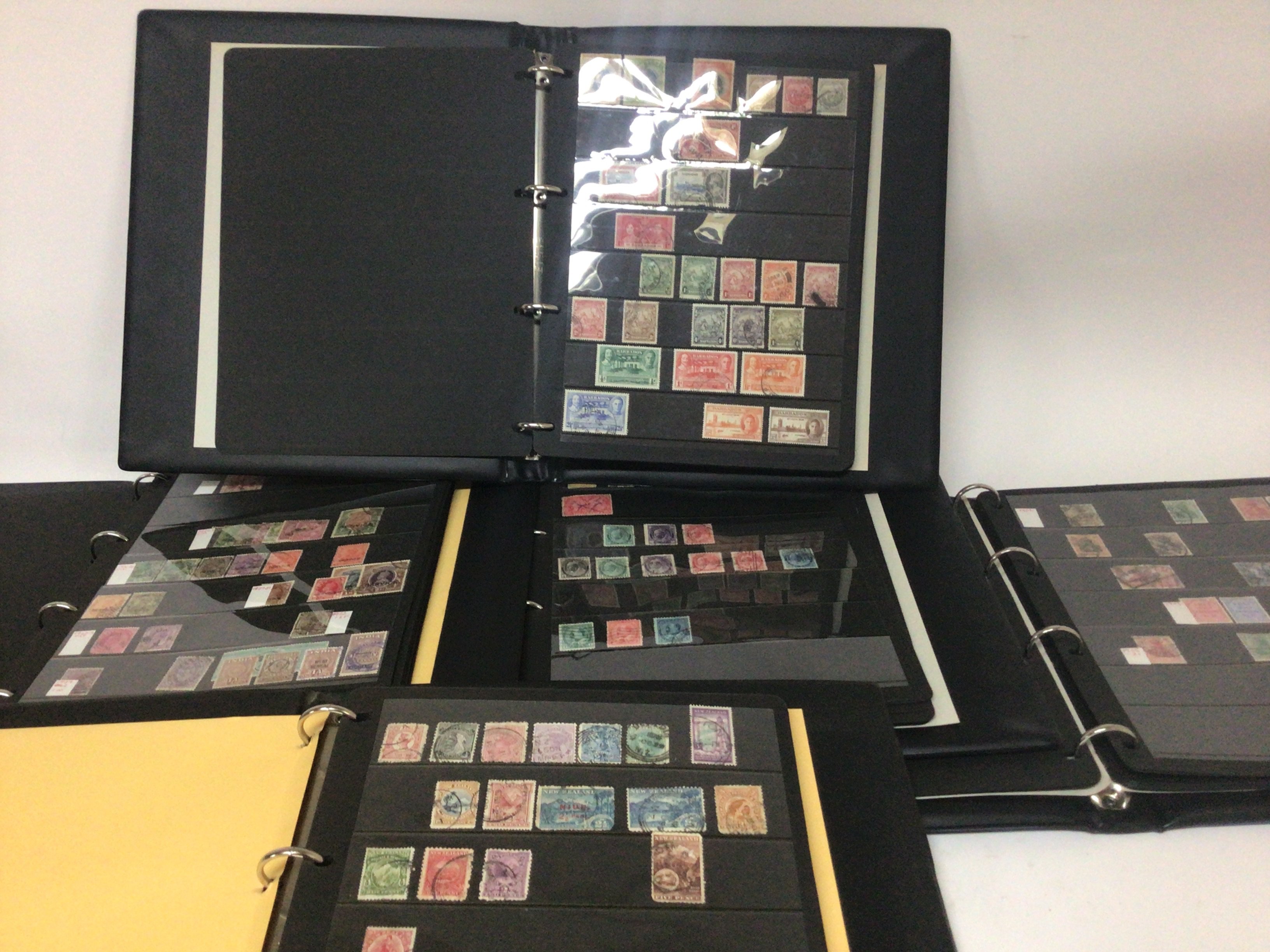 Five blue Alpha Stamp Albums containing British colonial and Empire stamps from Queen Victoria to Elizabeth II mainly used stamps well presented in sleeves an album of New Zealand stamps India Australia Barbados and more (5)