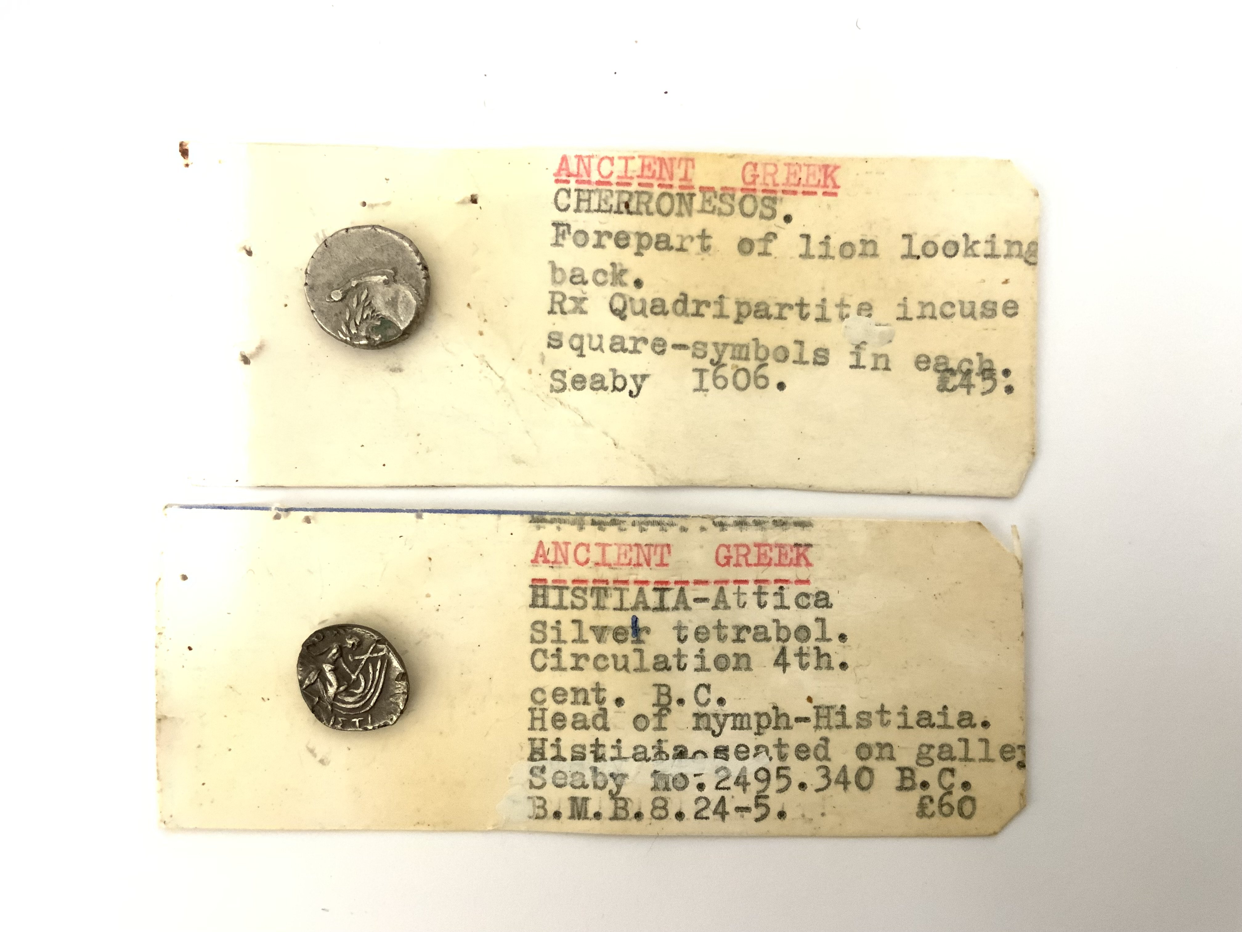 Thracian Cherronesos Circa 400-350 BC. H below pellet, lion looking back / EUBOEA, Histiaia. Circa late 4th Century BC. AR Tetrabel. (2)