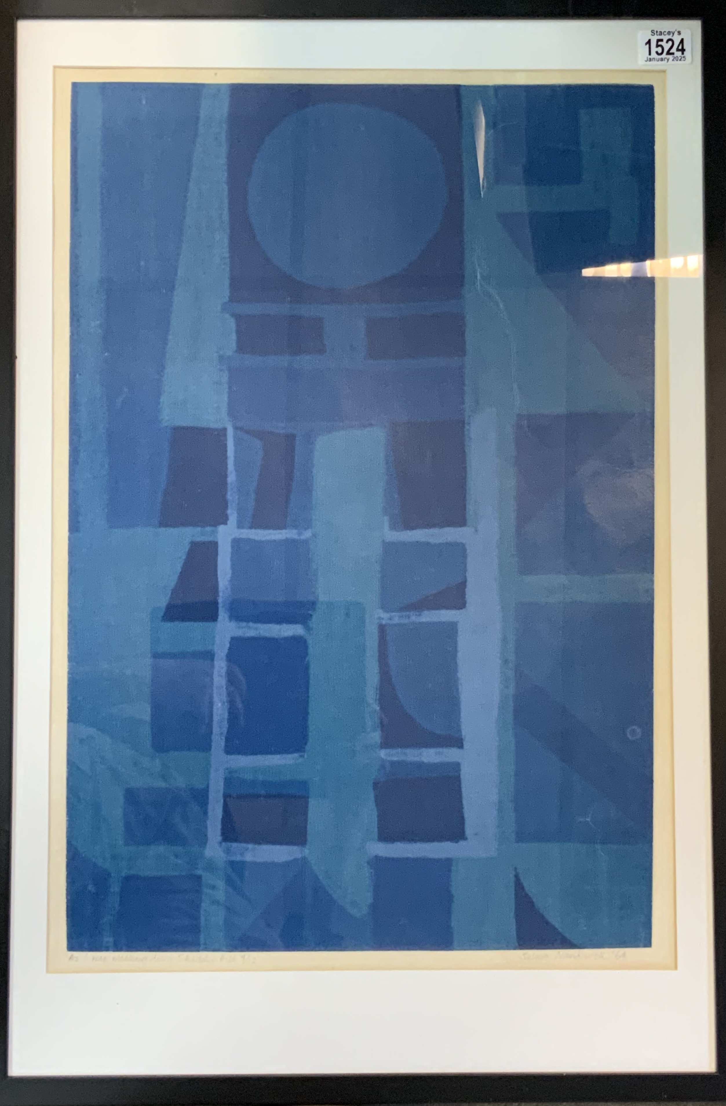 Selma Nankivell (1934-2022), also known as Selma Montford, abstract lino cut print titled As I was walking down by Skidden Hill 4/12. 79cm x 54cm. NO RESERVE