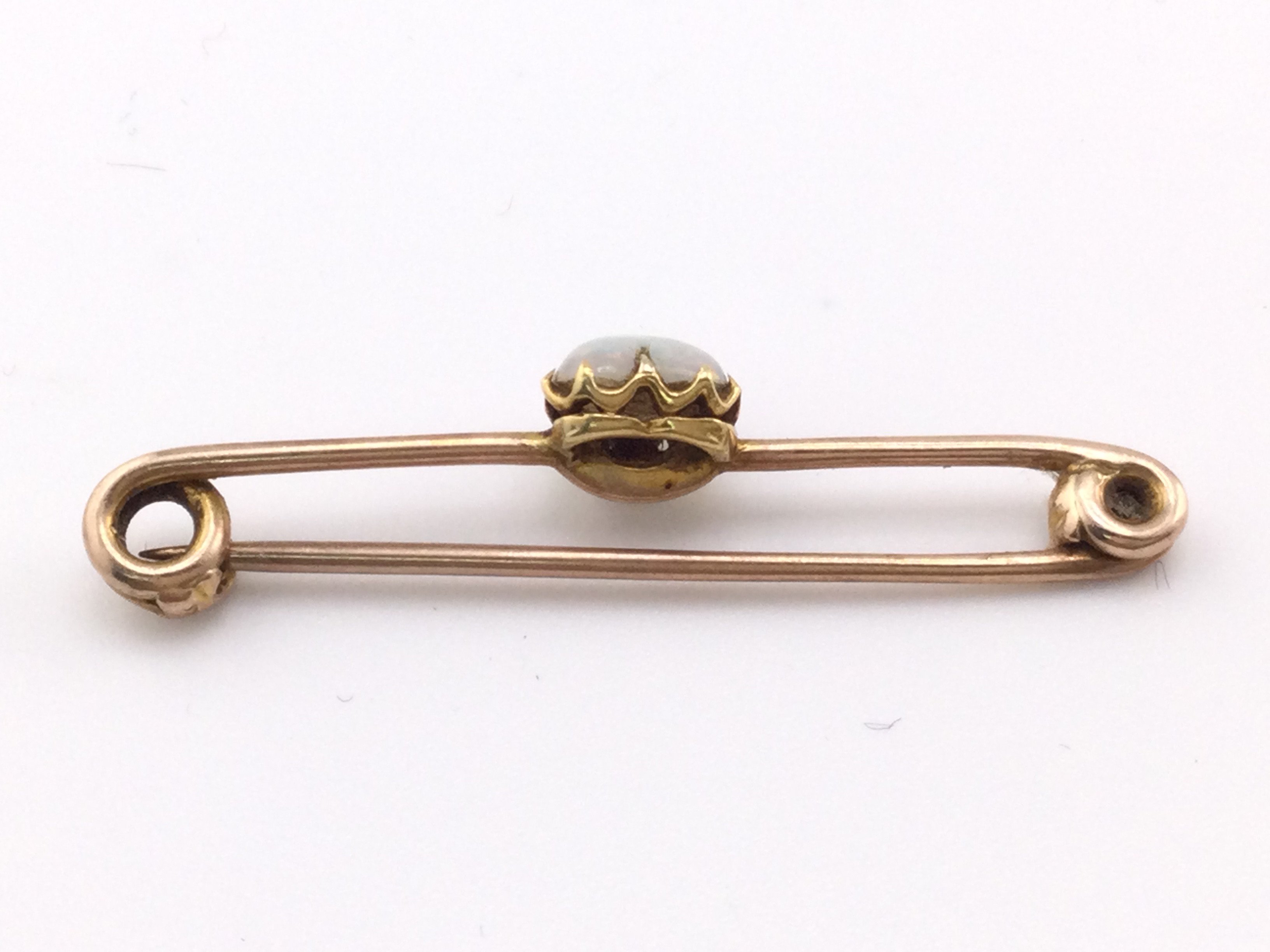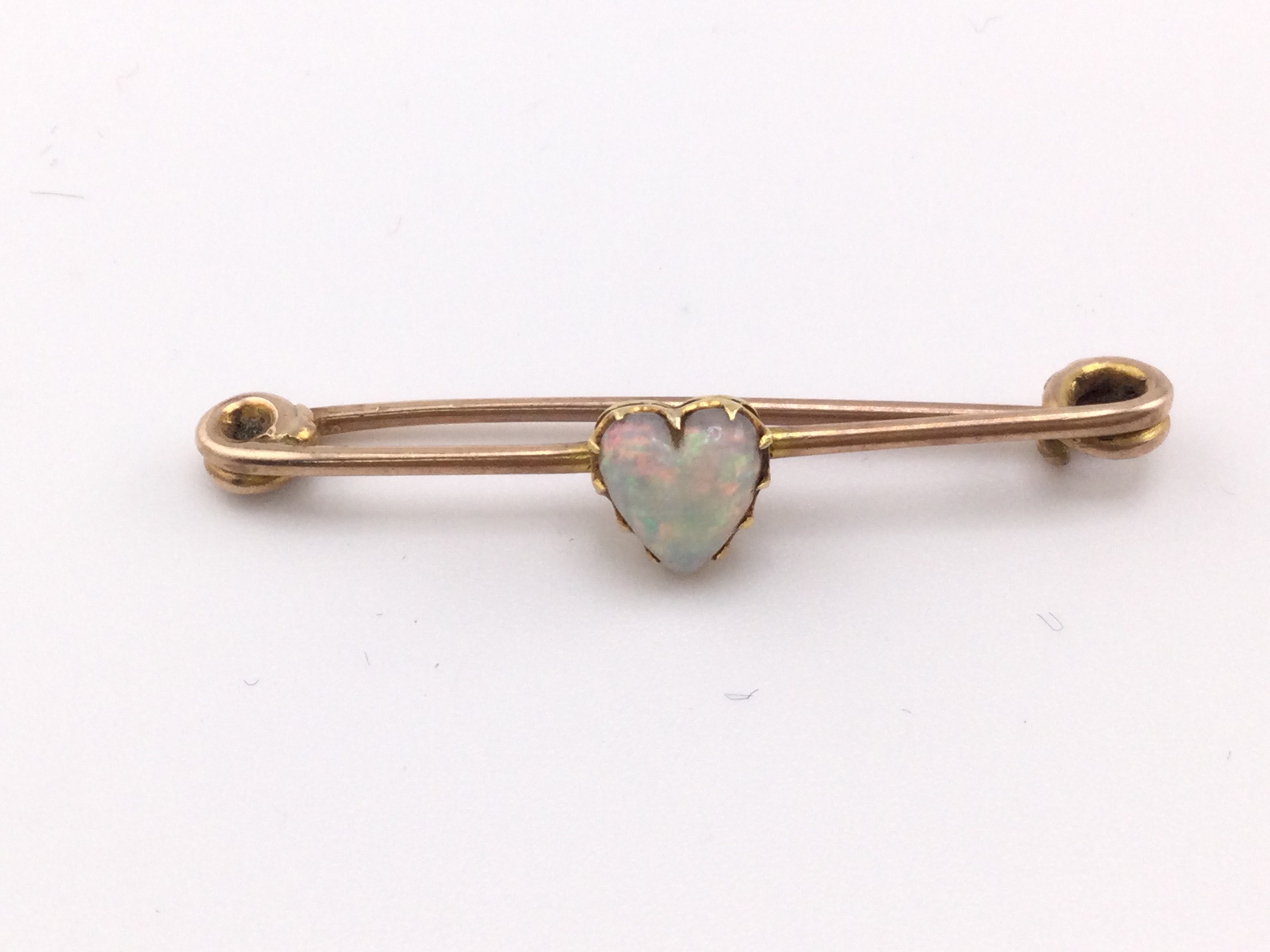 A 9ct gold brooch with heart shaped opal. 2.20g