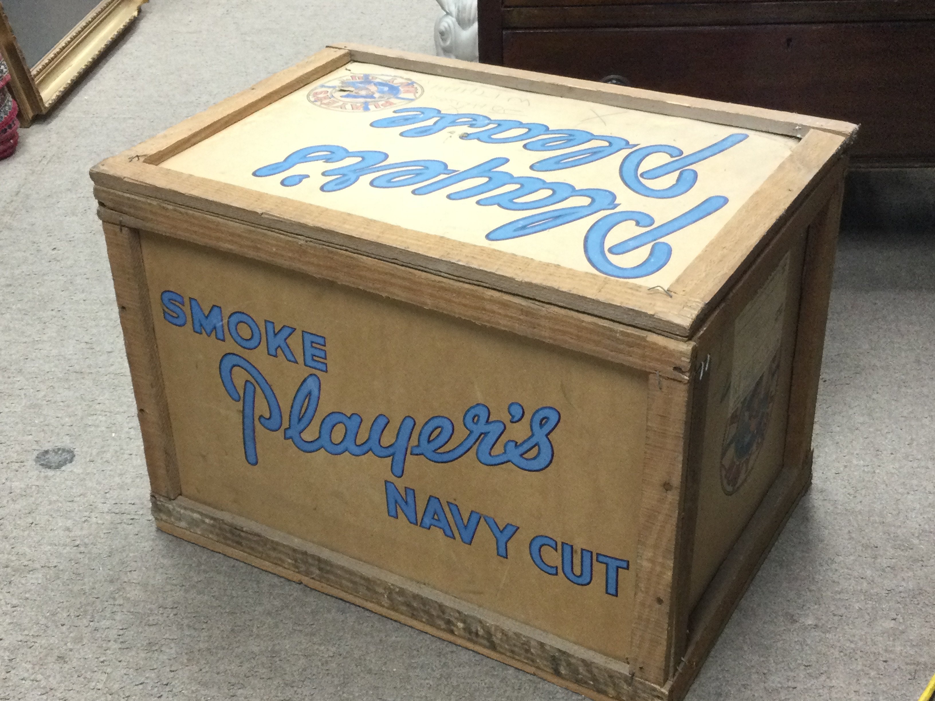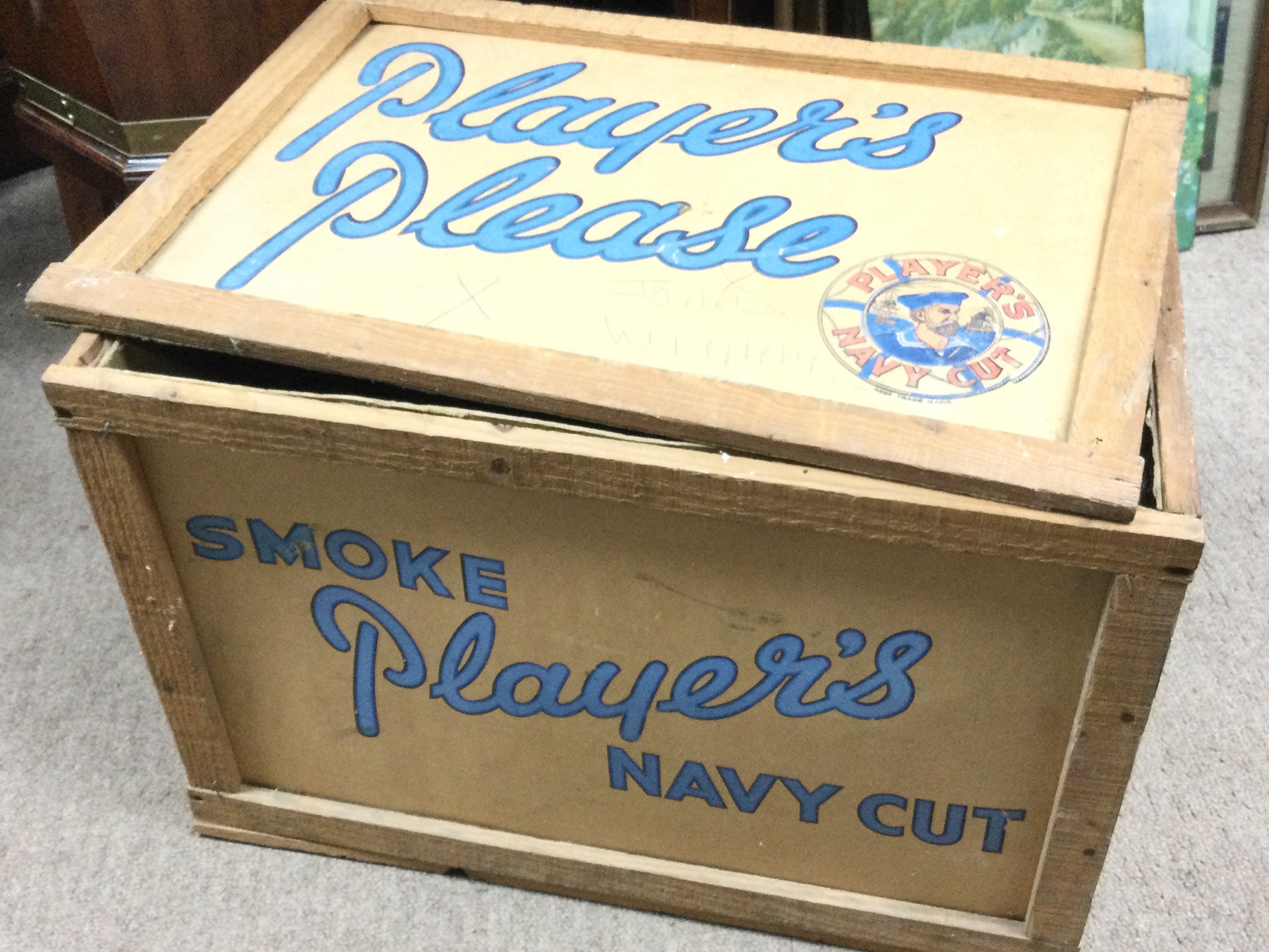 A vintage wooden Players Navy Cut cigarettes crate, dimensions 40x57x40cm. This lot cannot be posted. NO RESERVE