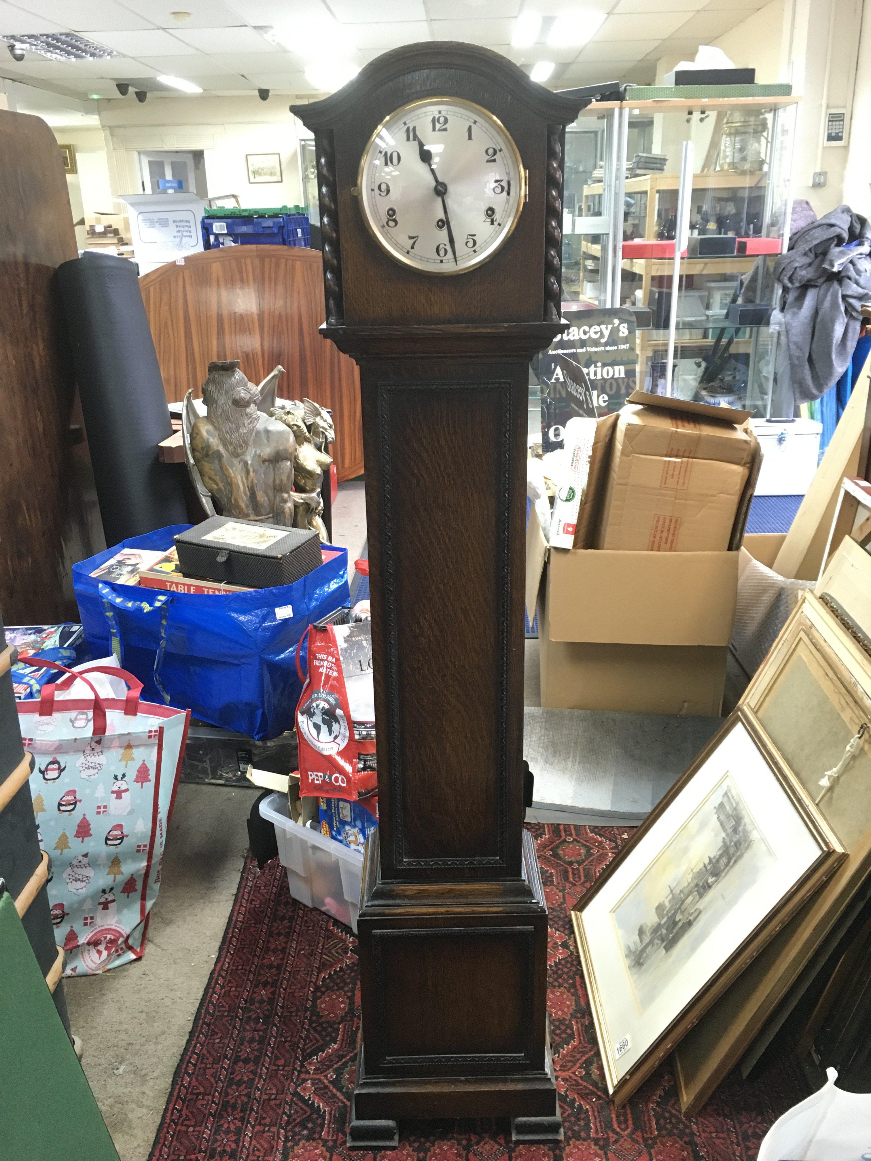 An oak Granddaughter clock ,148cm tall , 31cm wide. NO RESERVE