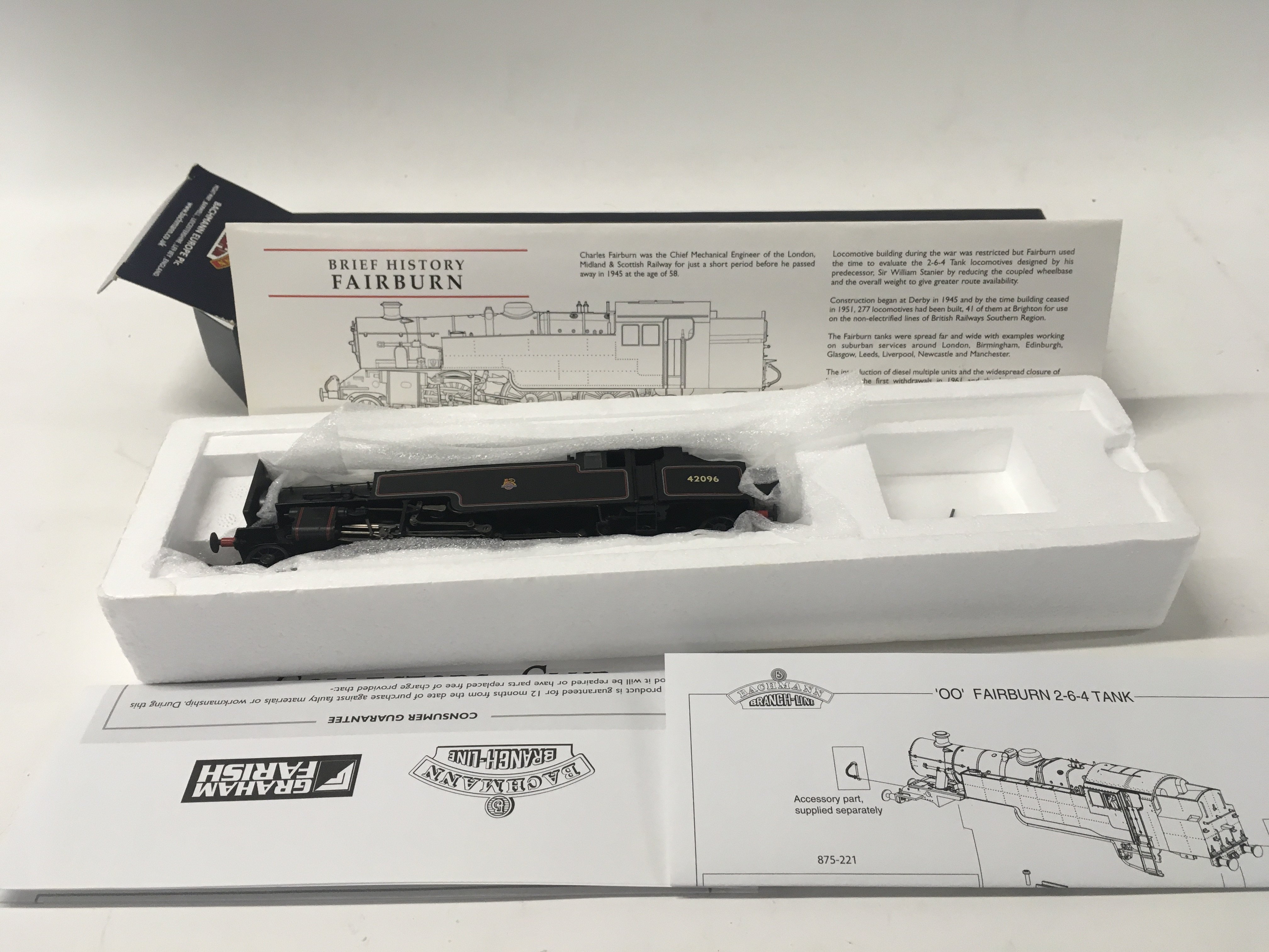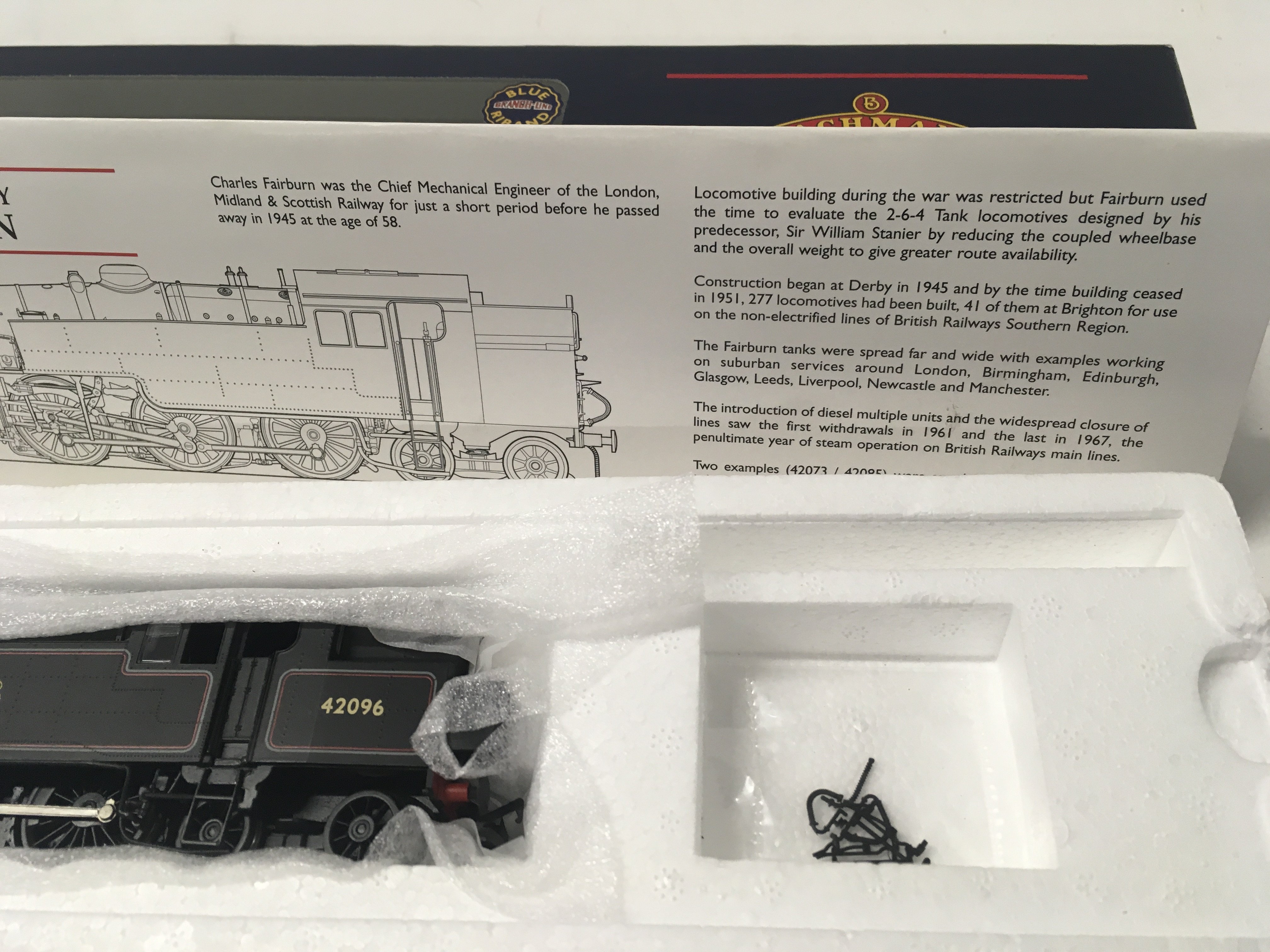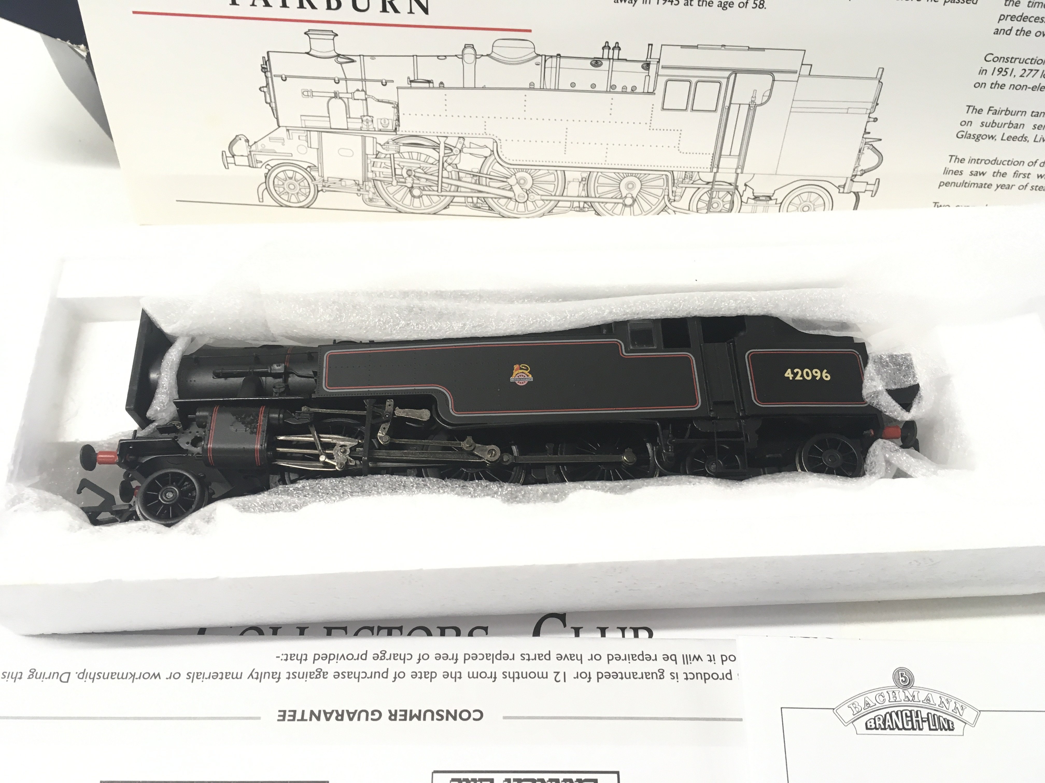 Boxed Model locomotive by Bachmann 00 gauge. No.32.876. Fairborn Tank 42096. BR lined black. Early emblem. DCC ready No Reserve