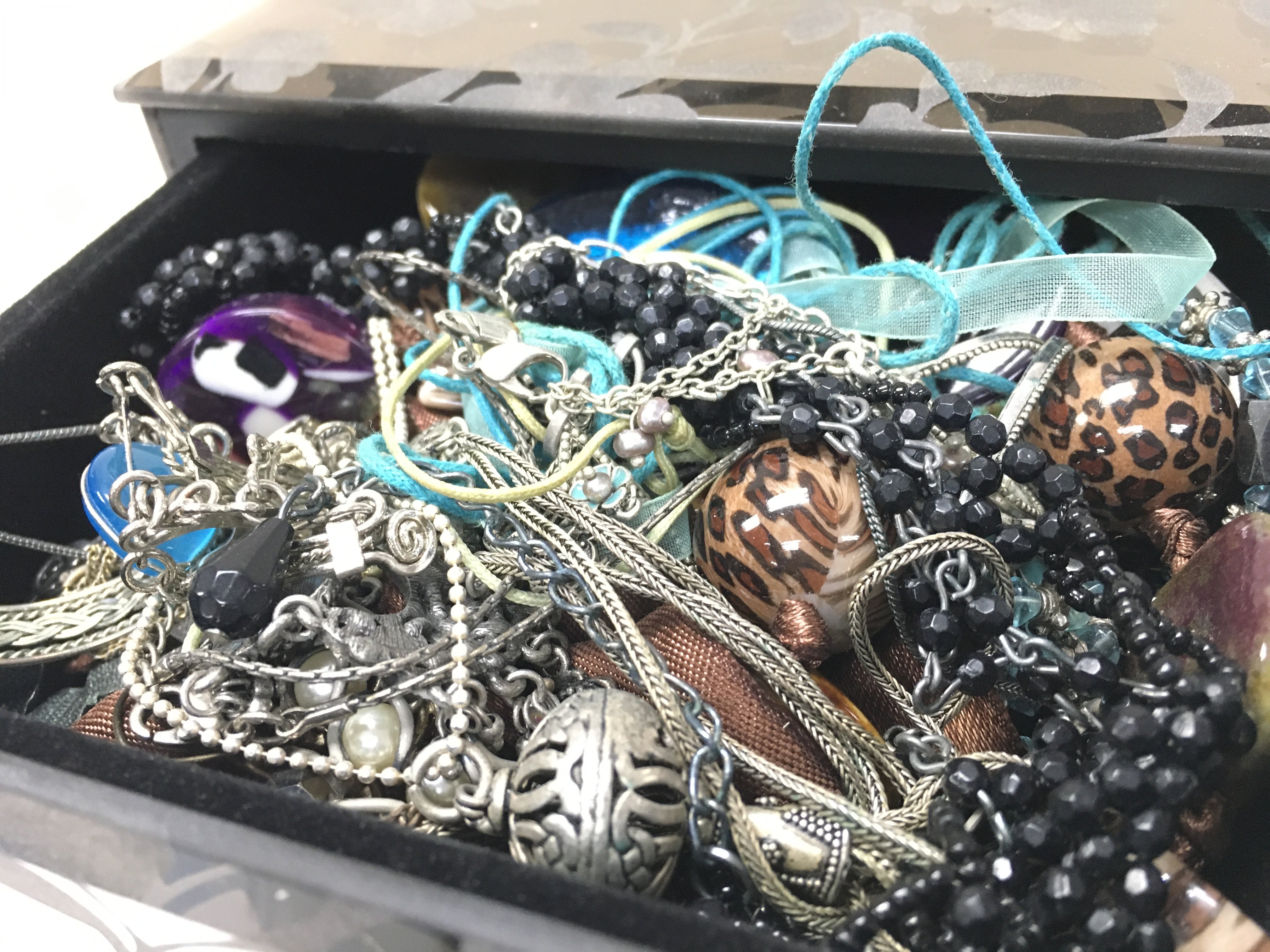 A box of costume jewellery including necklaces, earrings etc. postage category B NO RESERVE