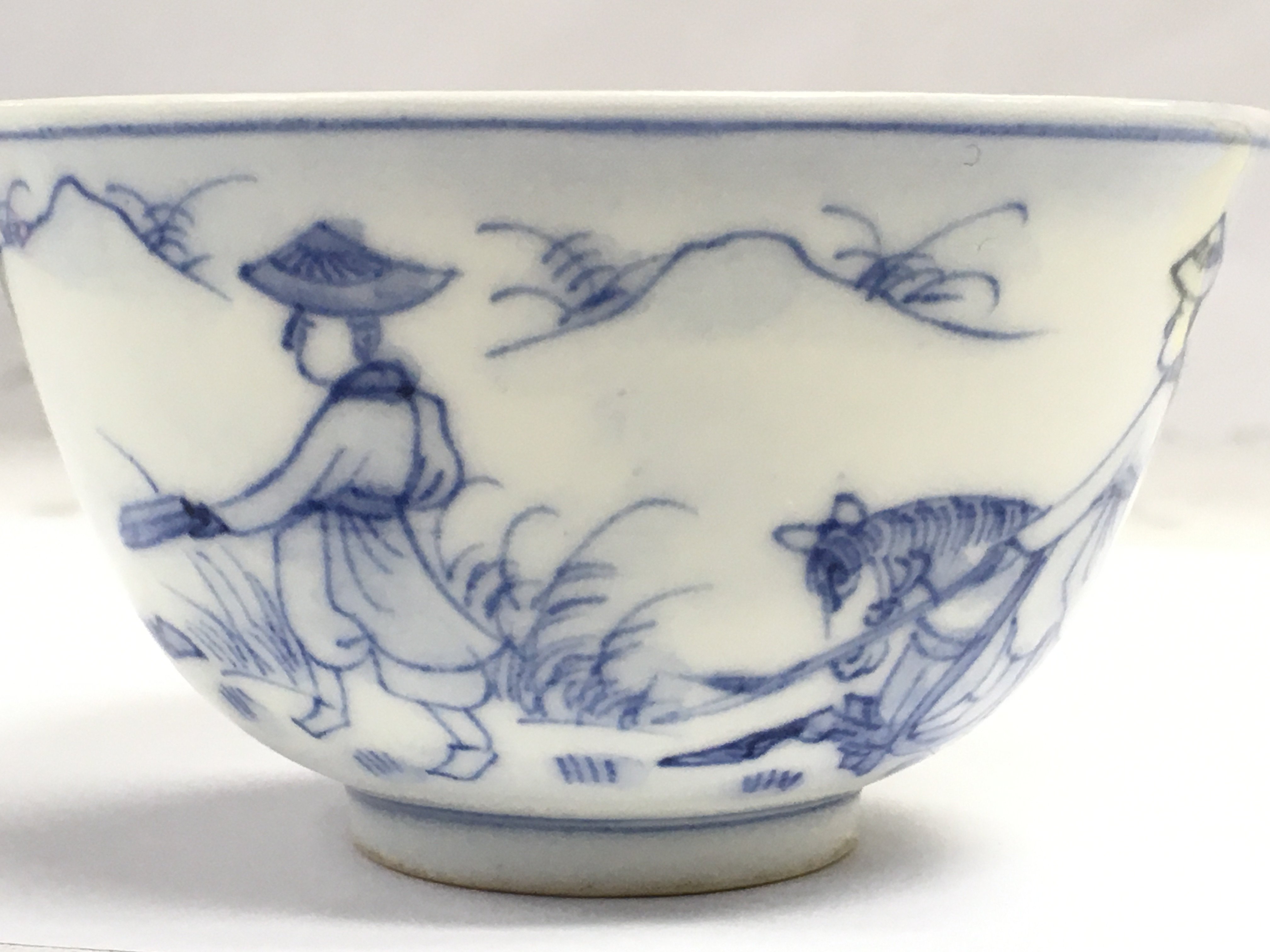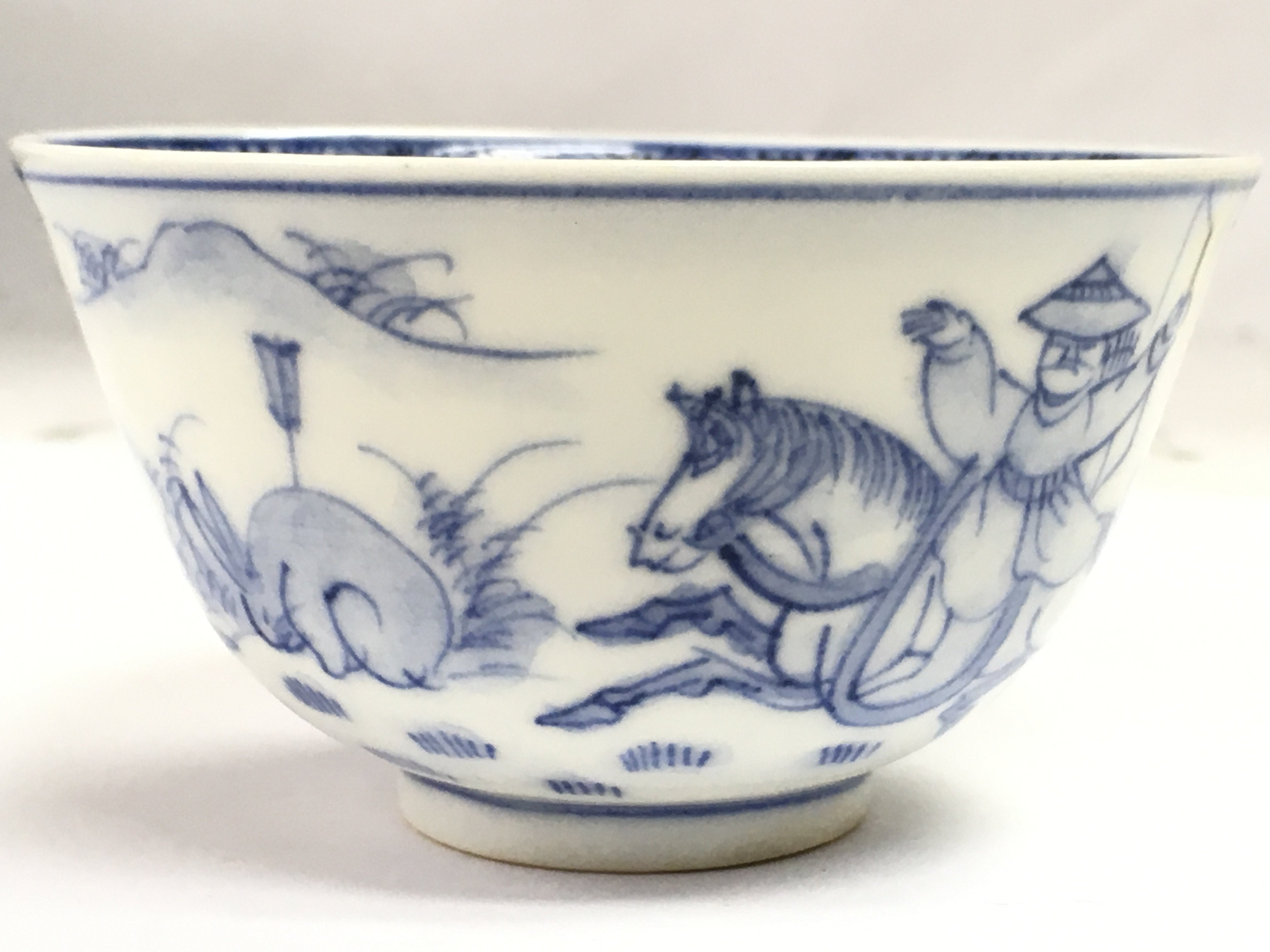 A Chinese ChengHua Tea bowl decorated with figures on horse back. Approximately 8.5cm wide. No obvious damage or restoration.This lot cannot be posted