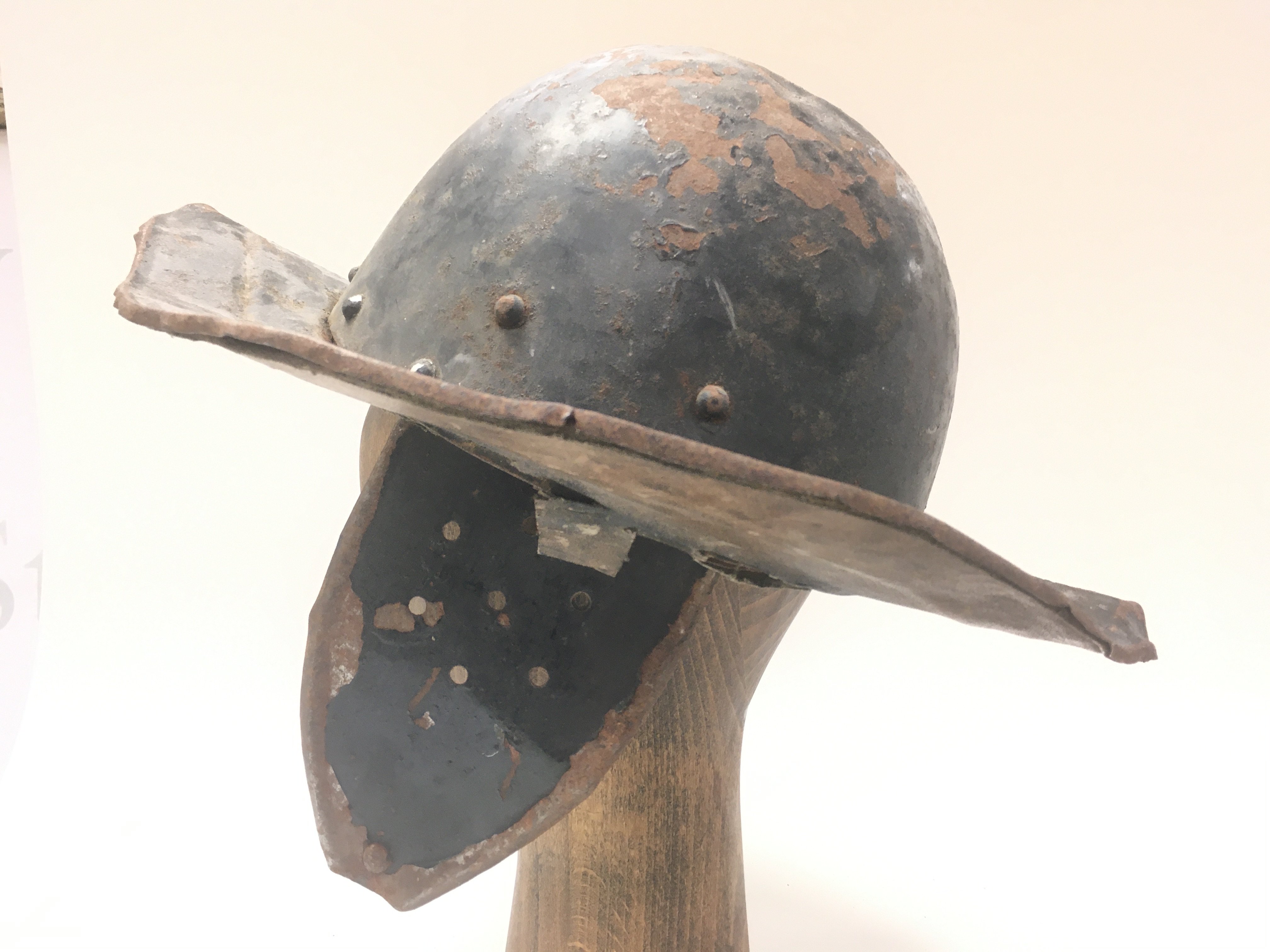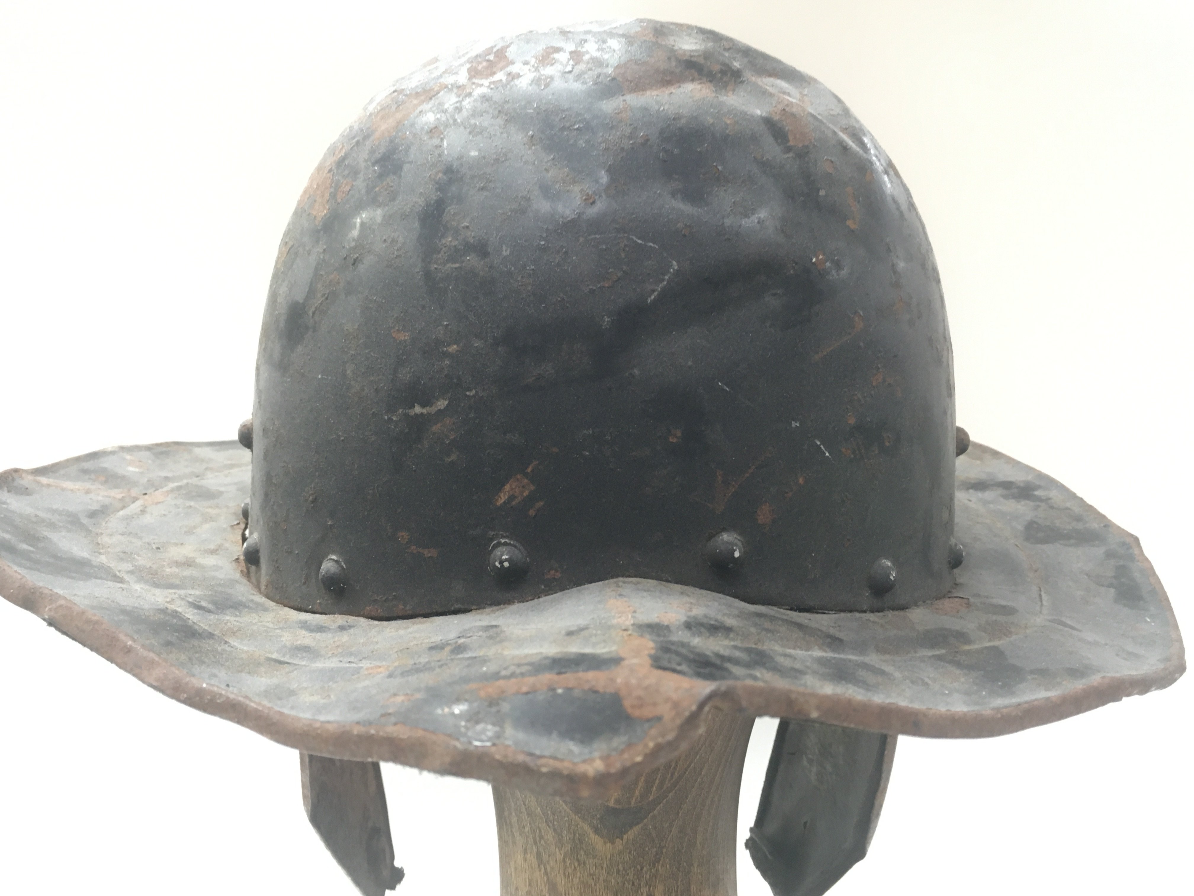 A Cromwellian Civil War style tin Roundhead soldiers/Pikemans helmet (head for display purposes and is not featured with this lot). Postage category C