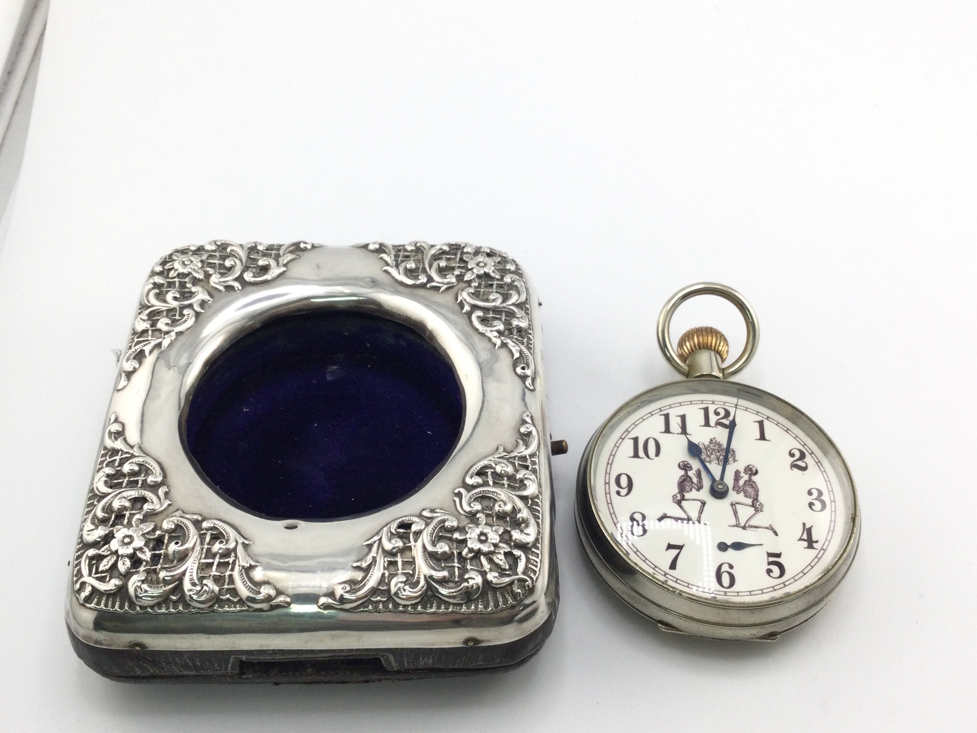 A Goliath pocket watch with momento mori face and a silver hallmarked case. Seen running. Postage B