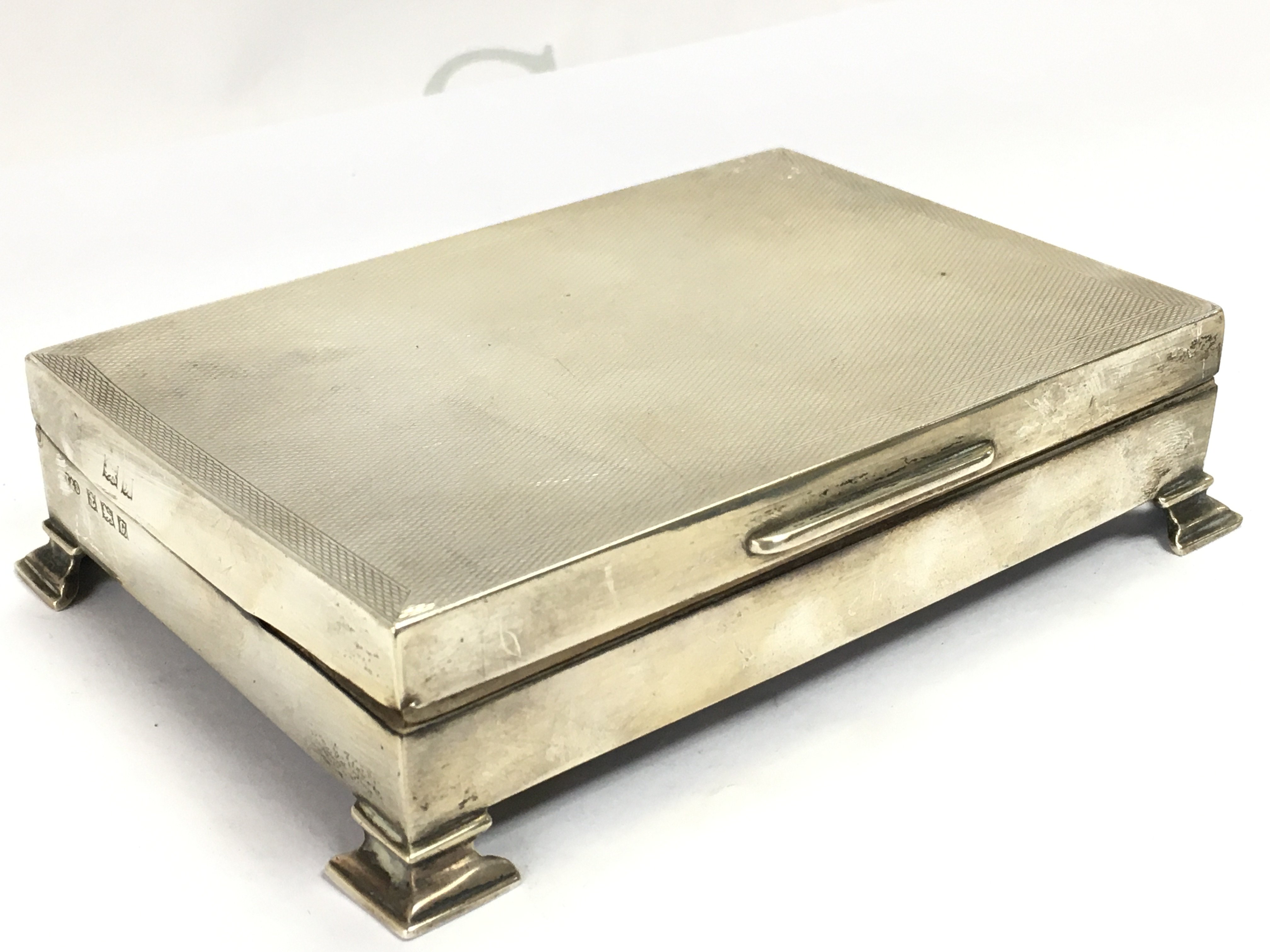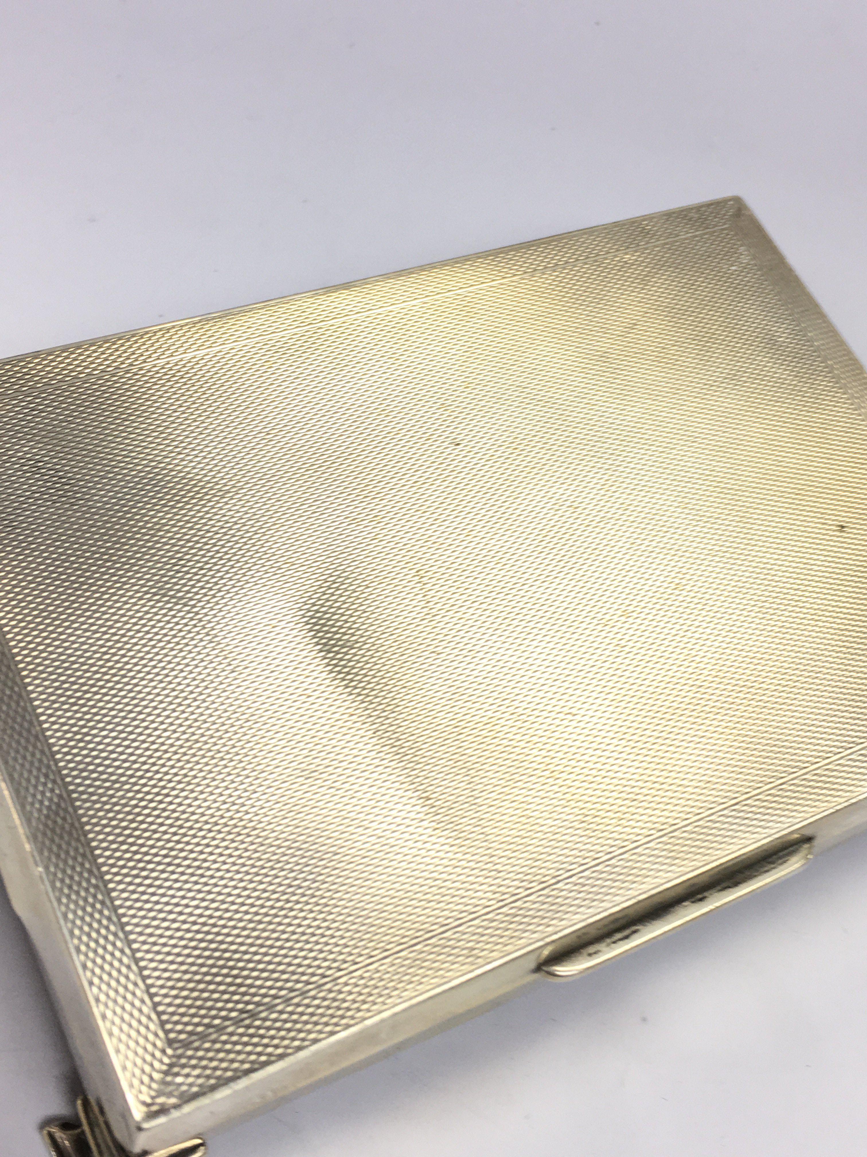 A silver cigarette box with a turned top, 9x12.5x3.5cm