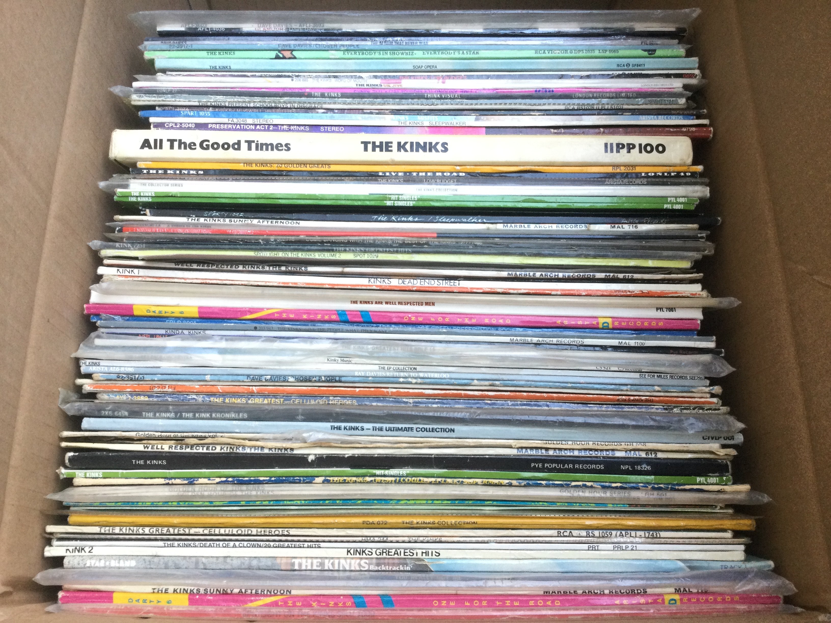A box of Kinks and related LPs and 12" singles including 'Muswell Hillbillies', 'Sleepwalker', 'Schoolboys In Disgrace' and others.