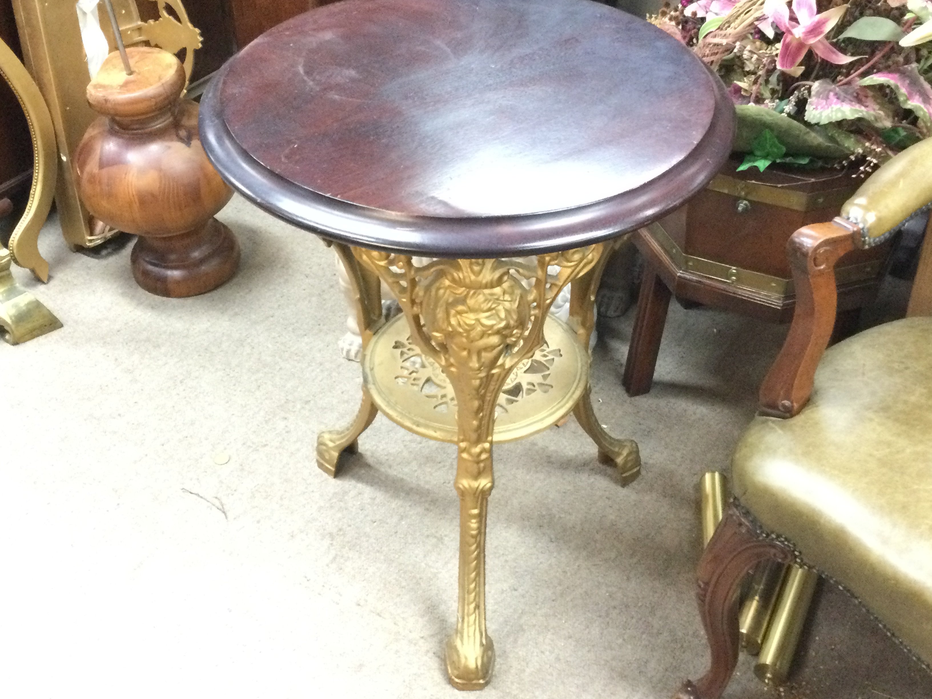 A Victorian cast metal gilt pub table. 58cm diameter 70cm tall.