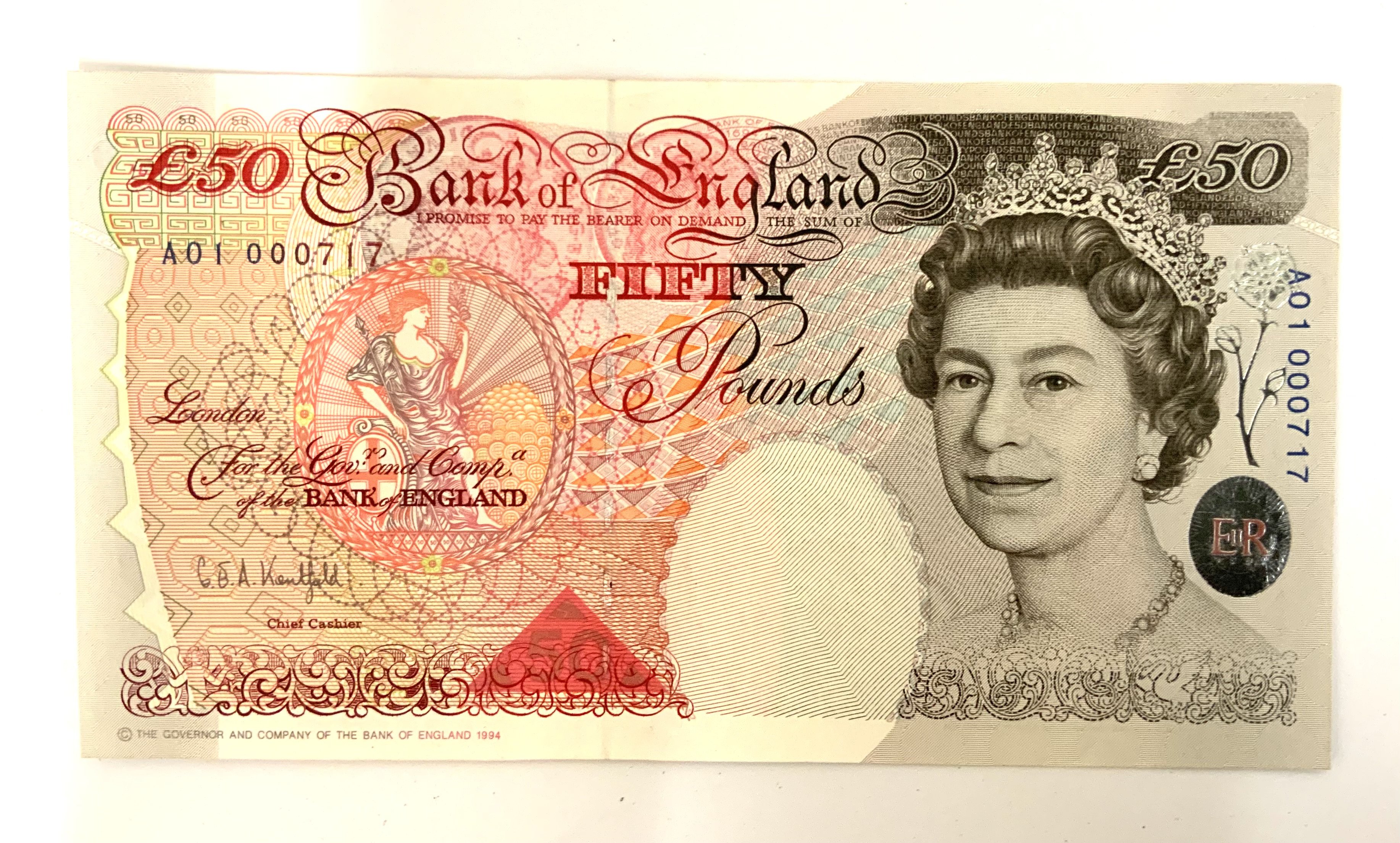 1994 G.E.A Kentfield, 50 note, First run Serial A01 000717, Unc, Mint. High Grade.