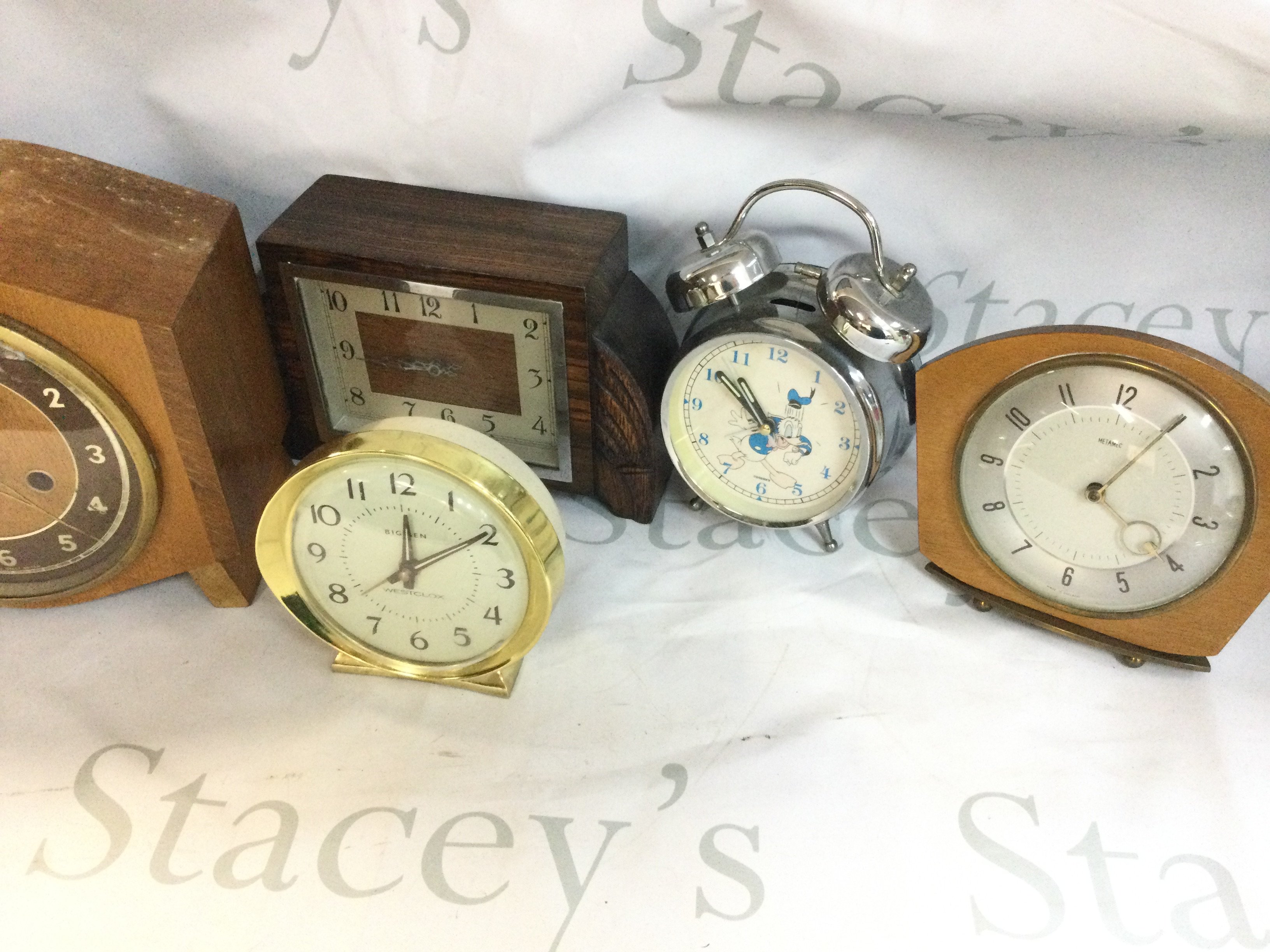 A collection of clocks including mantle clocks and alarm clocks. NO RESERVE