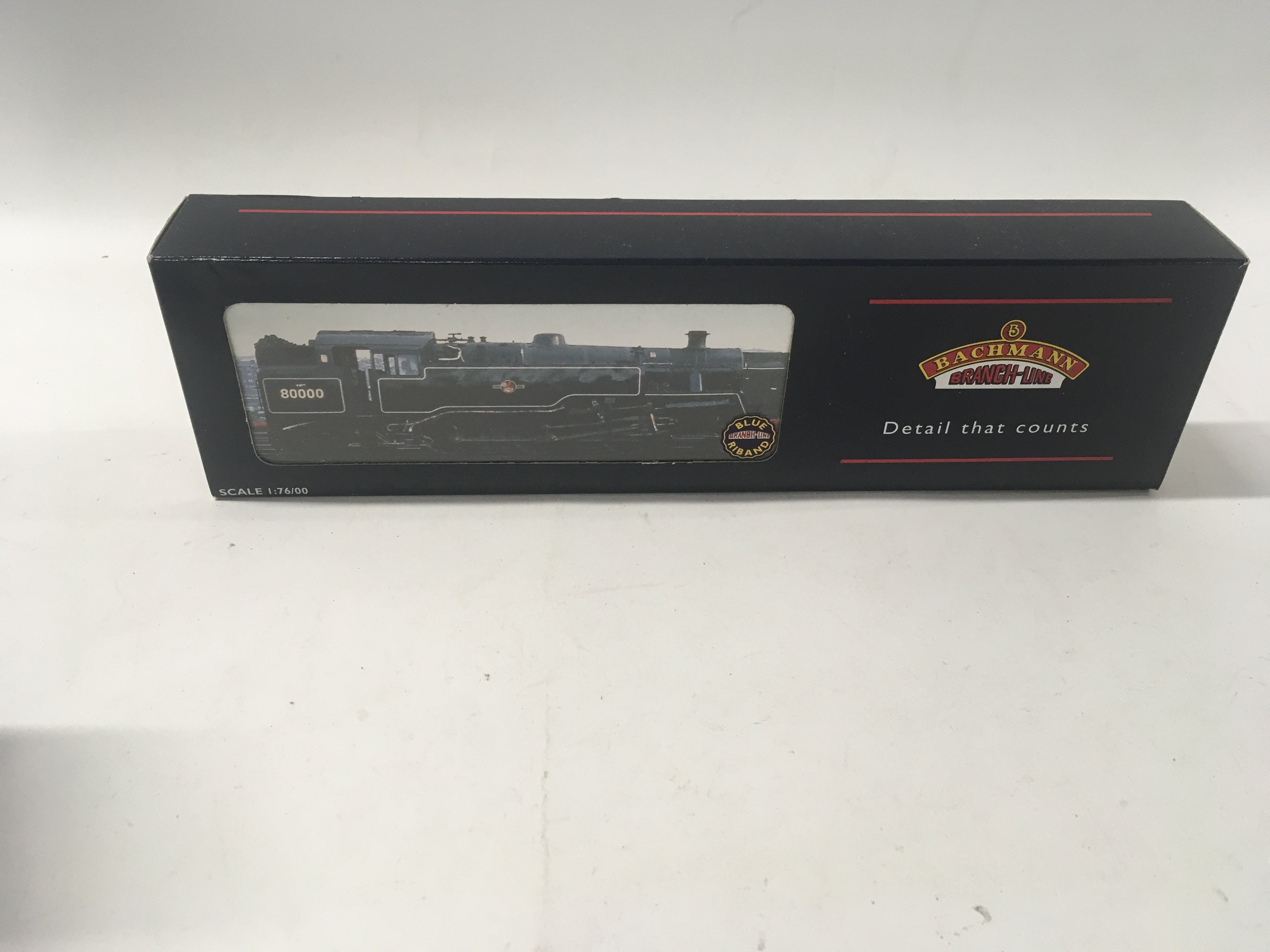 Boxed 00 gauge model railway locomotive by Bachmann 32.351. Standard class 4MT Tank 80097. BRLcrest. No Reserve