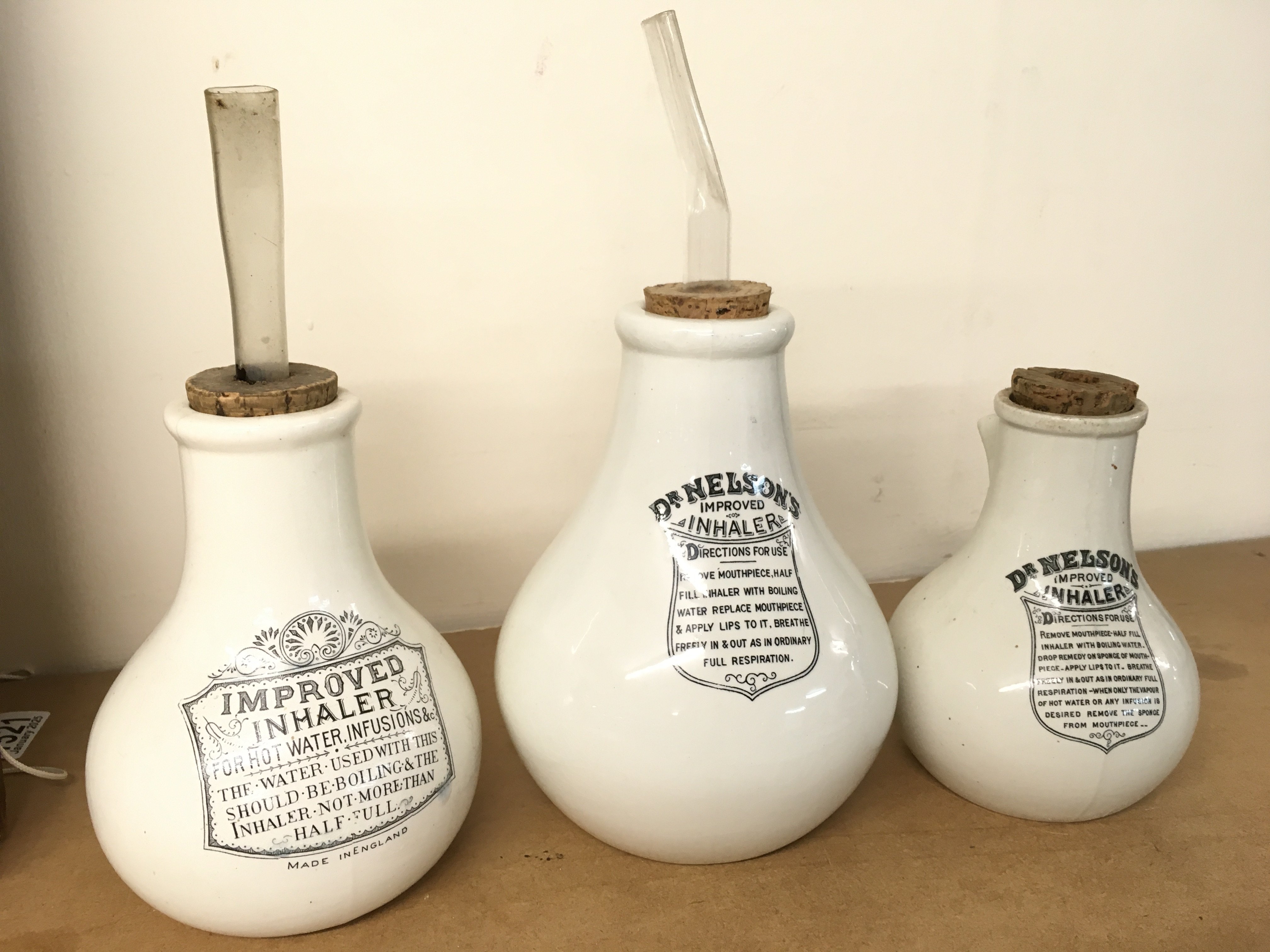 Ceramic chemist/apothecary inhalers, Dr Nelsons improved