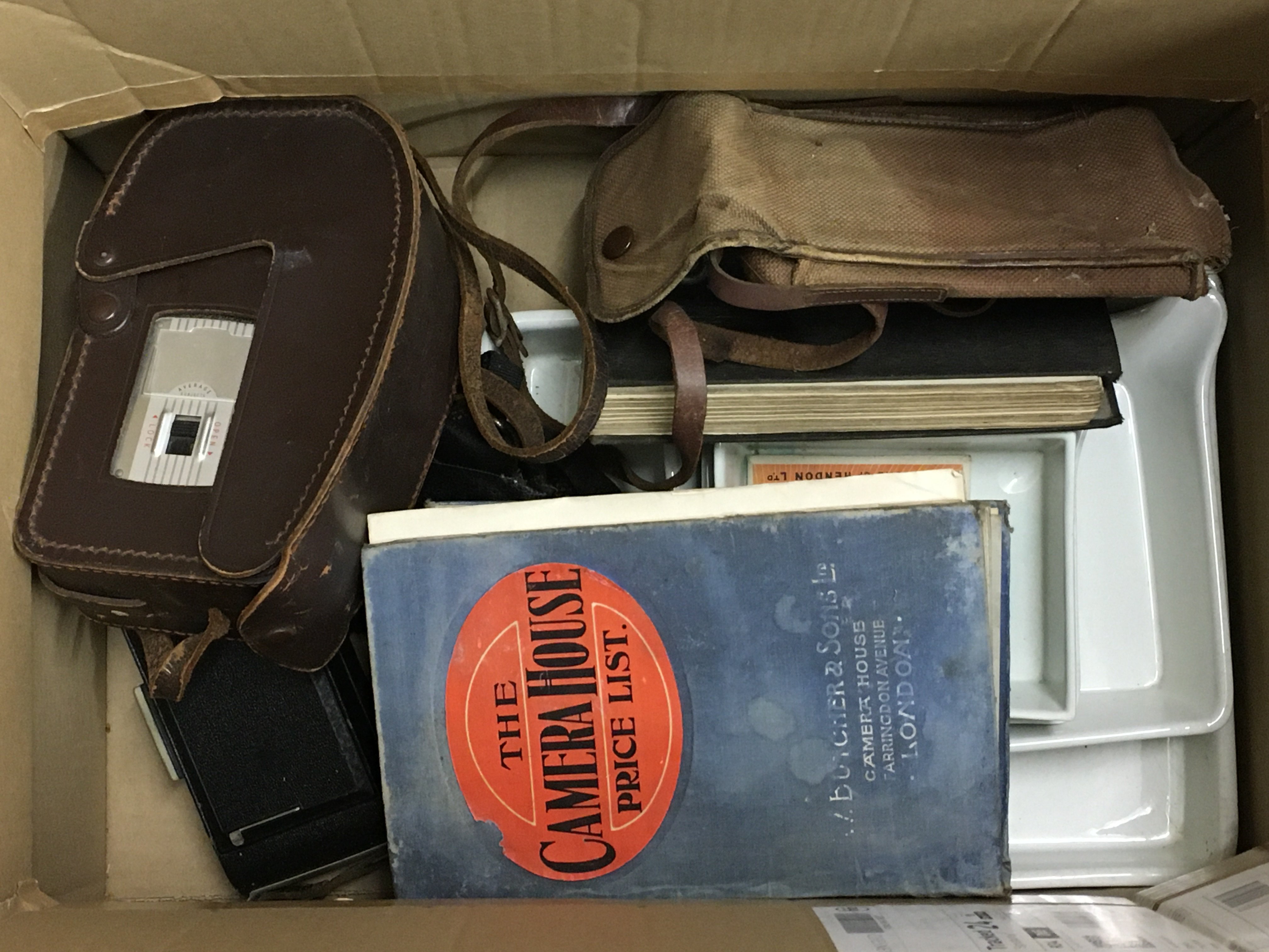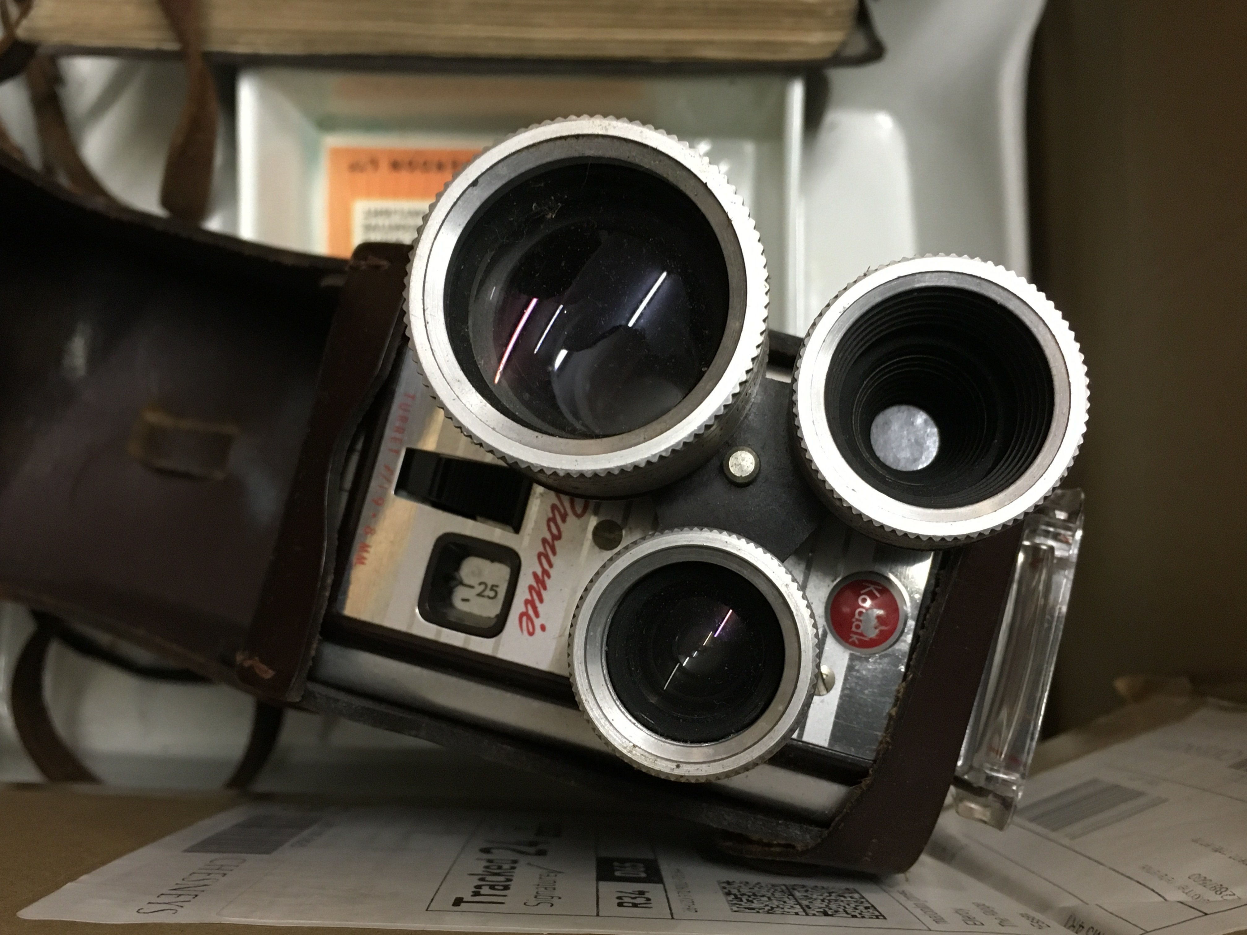 Collection of vintage cameras including a Coronet 620, Kodak Brownie double 8 movie camera , 1908 The Camera House fully illustrated catalogue etc. this lot cannot be posted