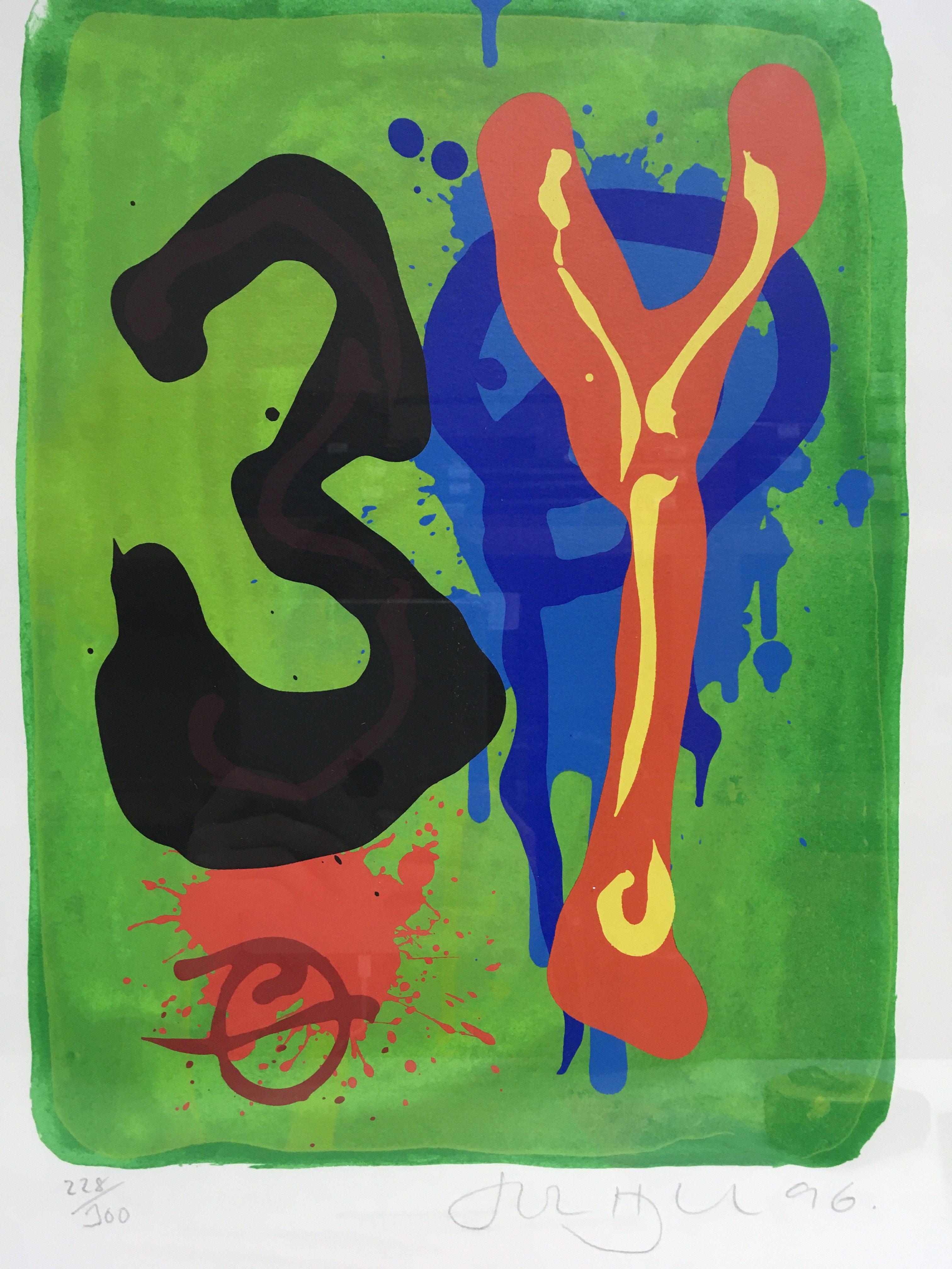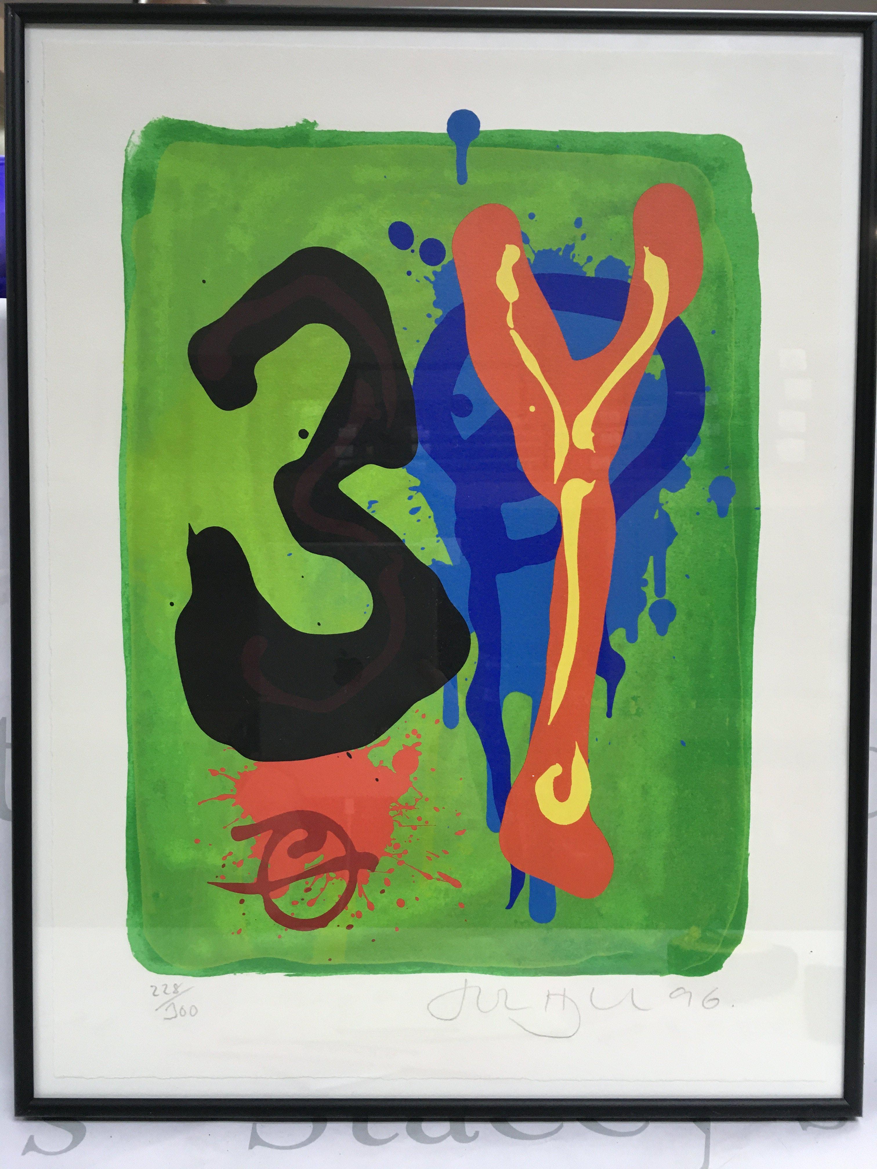 A framed John Hoyland limited edition print 228/300, titled Names and Voices. Commissioned by Martin Krajewski managing director of Joplin Rowe associates to celebrate Christmas 1996. Dimensions 39.5x50.5cm