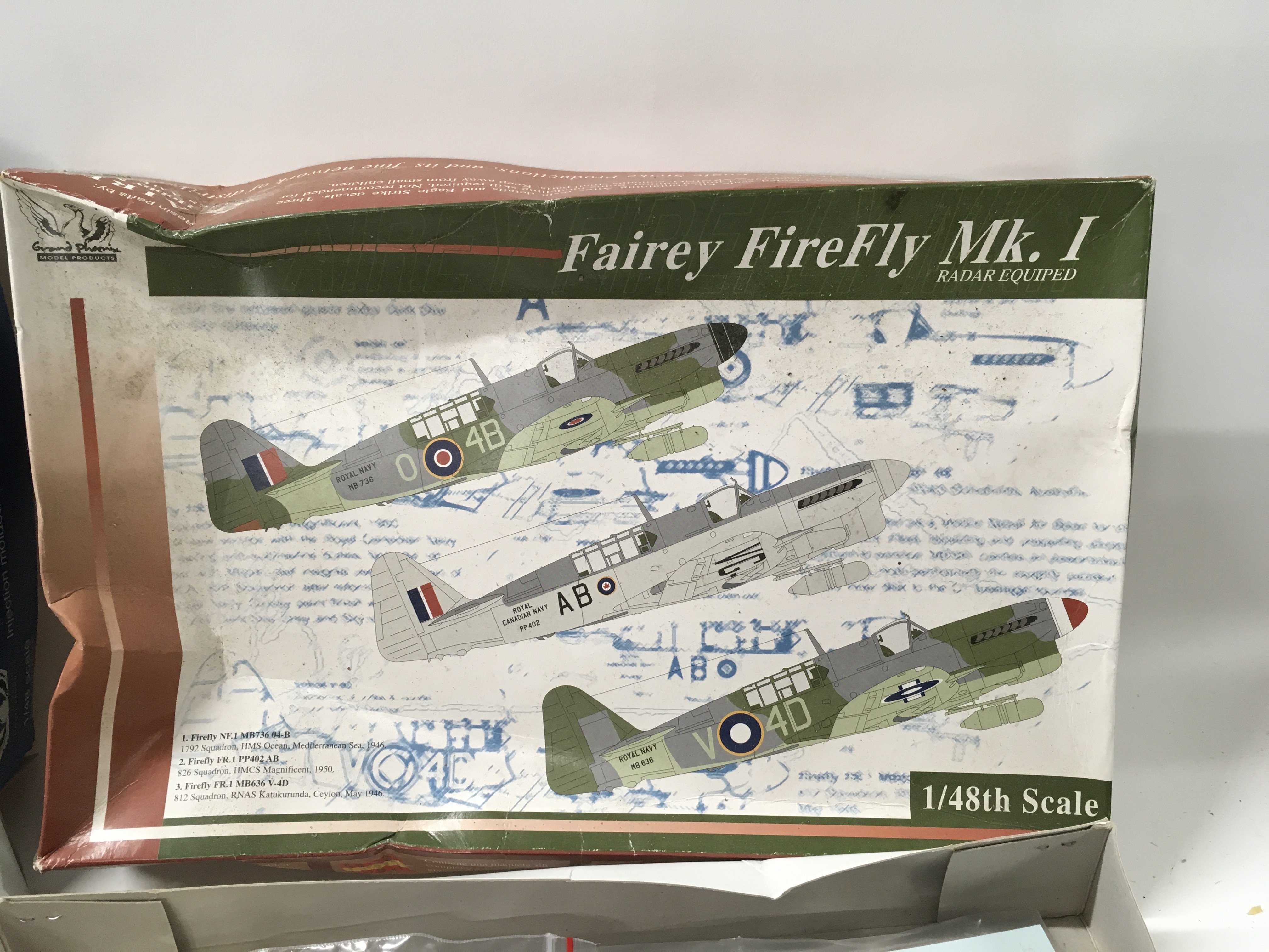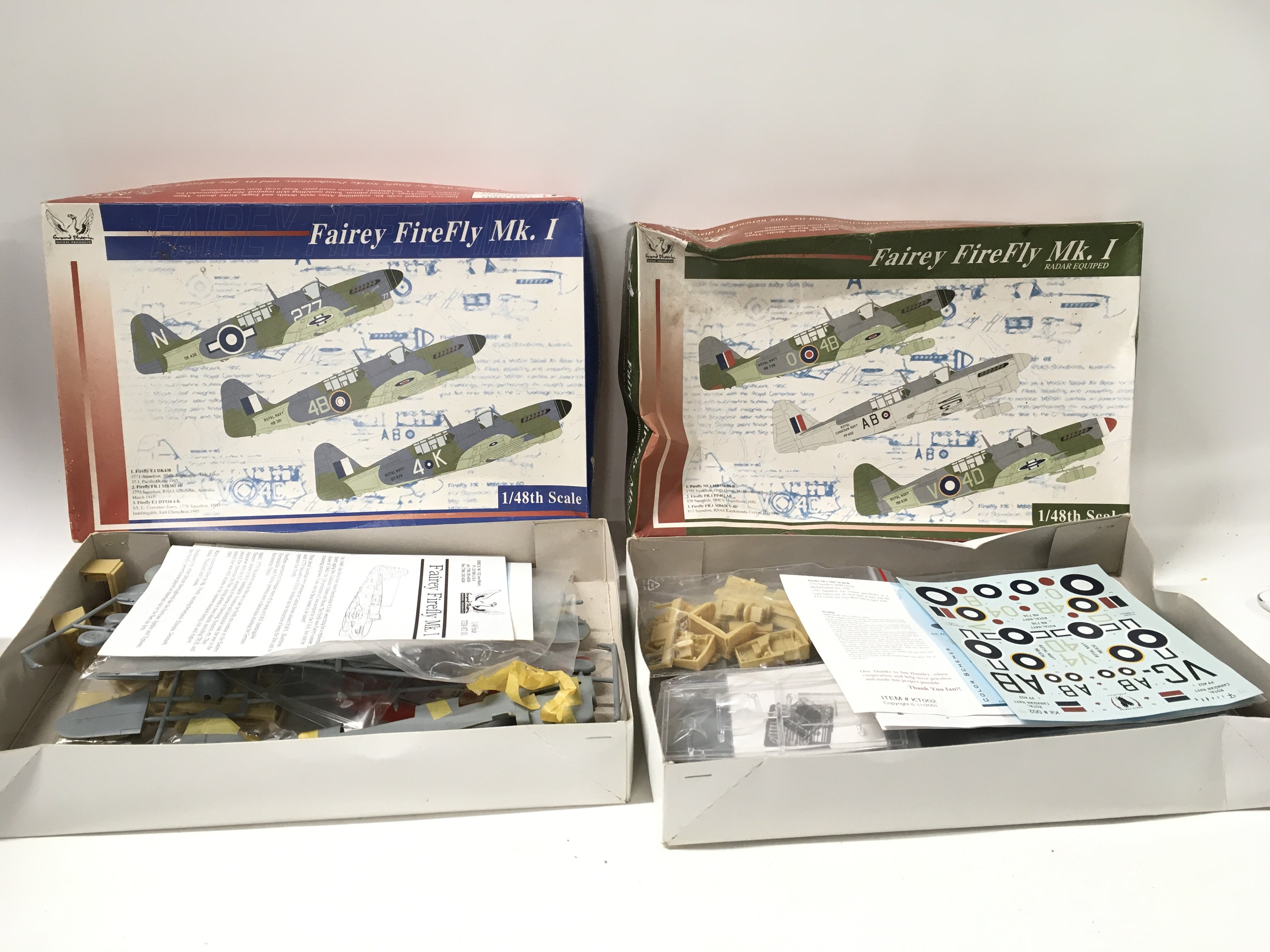 2x boxed model aircraft kits by Grand Phoenix . Both are Fairey Firefly Mk1 ..one has radar fitted. One appears started but unglued. No reserve