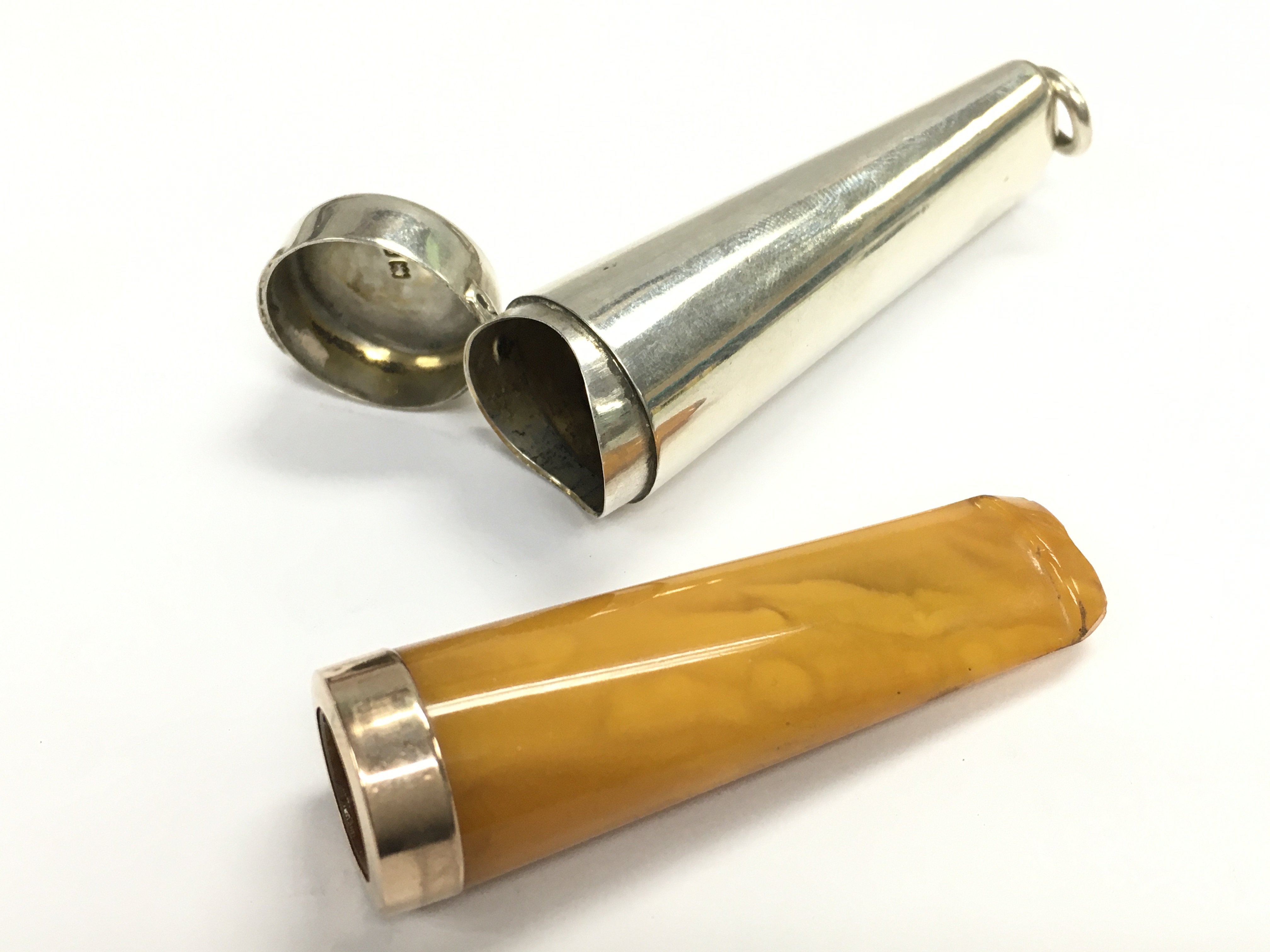 A cheroot holder with a 12ct rose gold collar with a silver hallmarked case . Postage category A