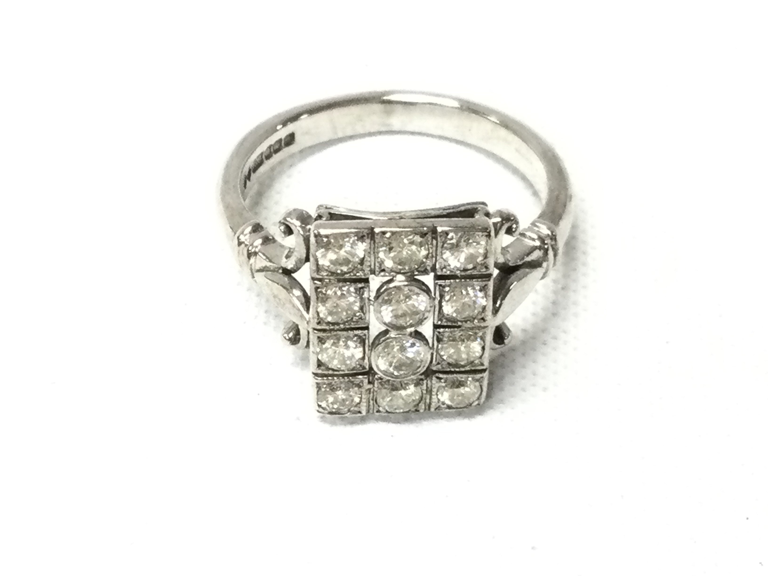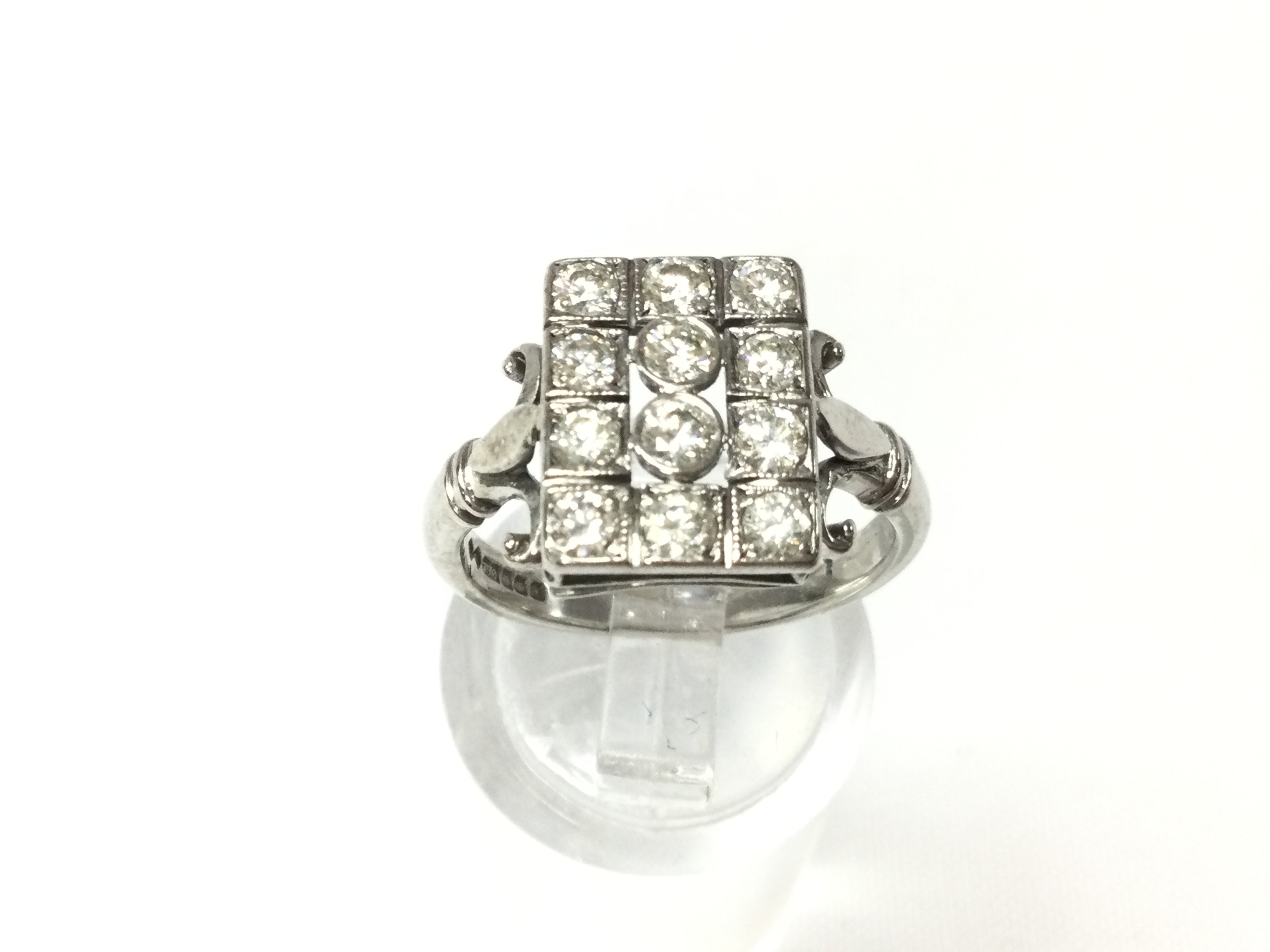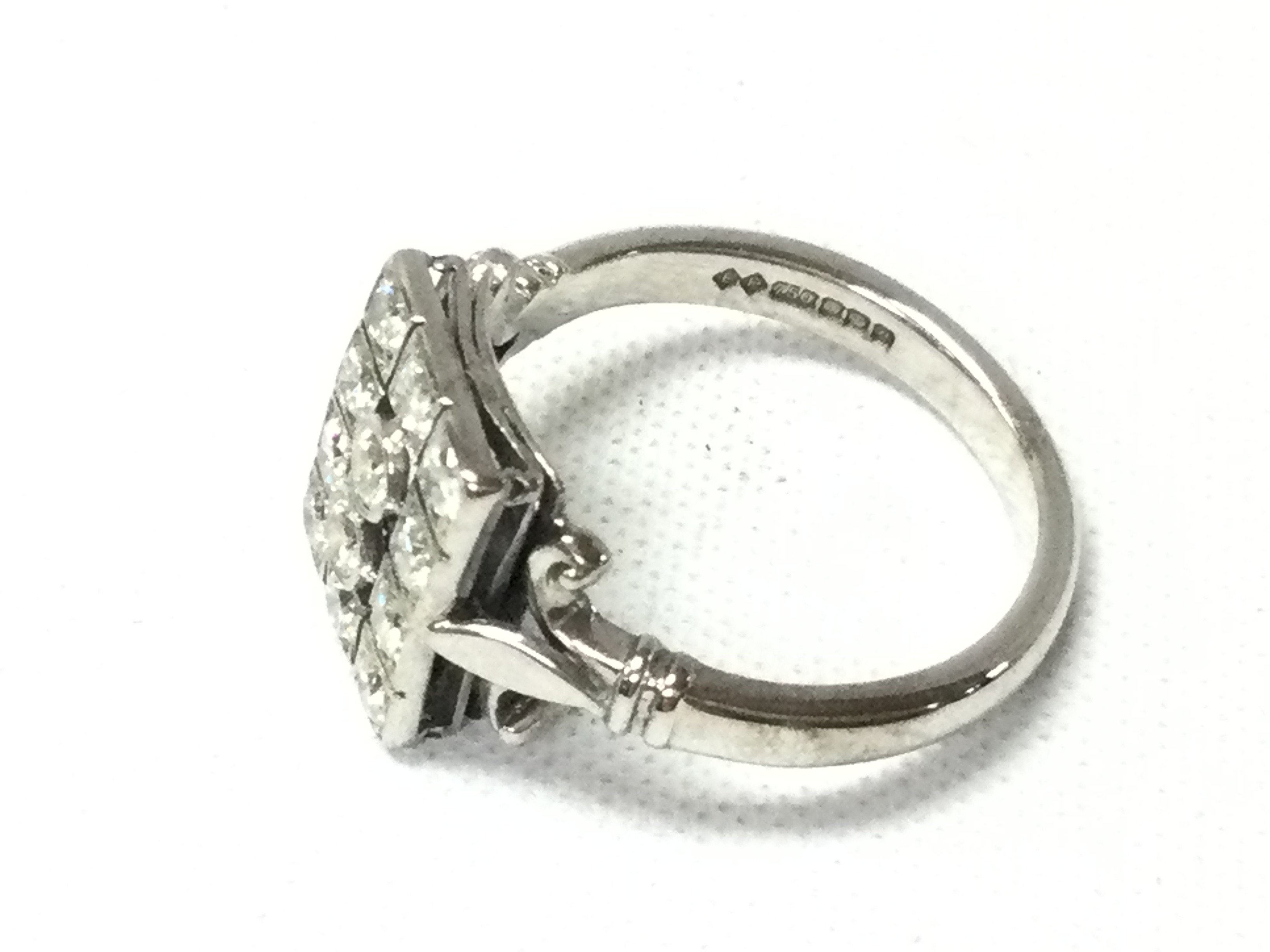 An 18ct white gold 1930s style diamond cluster ring. Size M and 5.05g