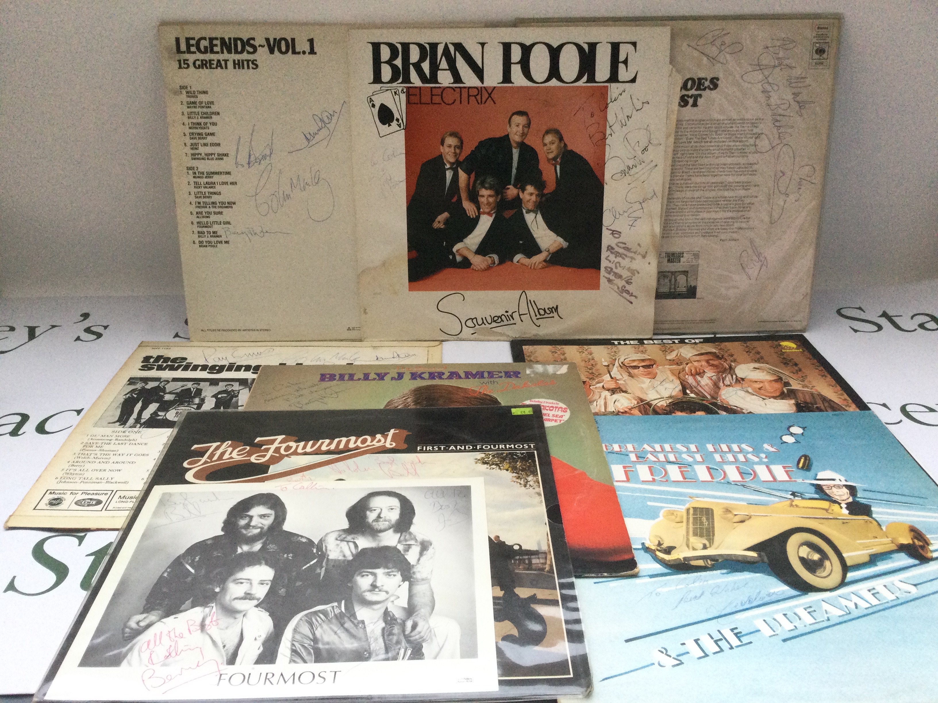 A collection of signed LPs by various artists including Billy J Kramer, Brian Poole & The Tremoloes, Freddie & The Dreamers and others.