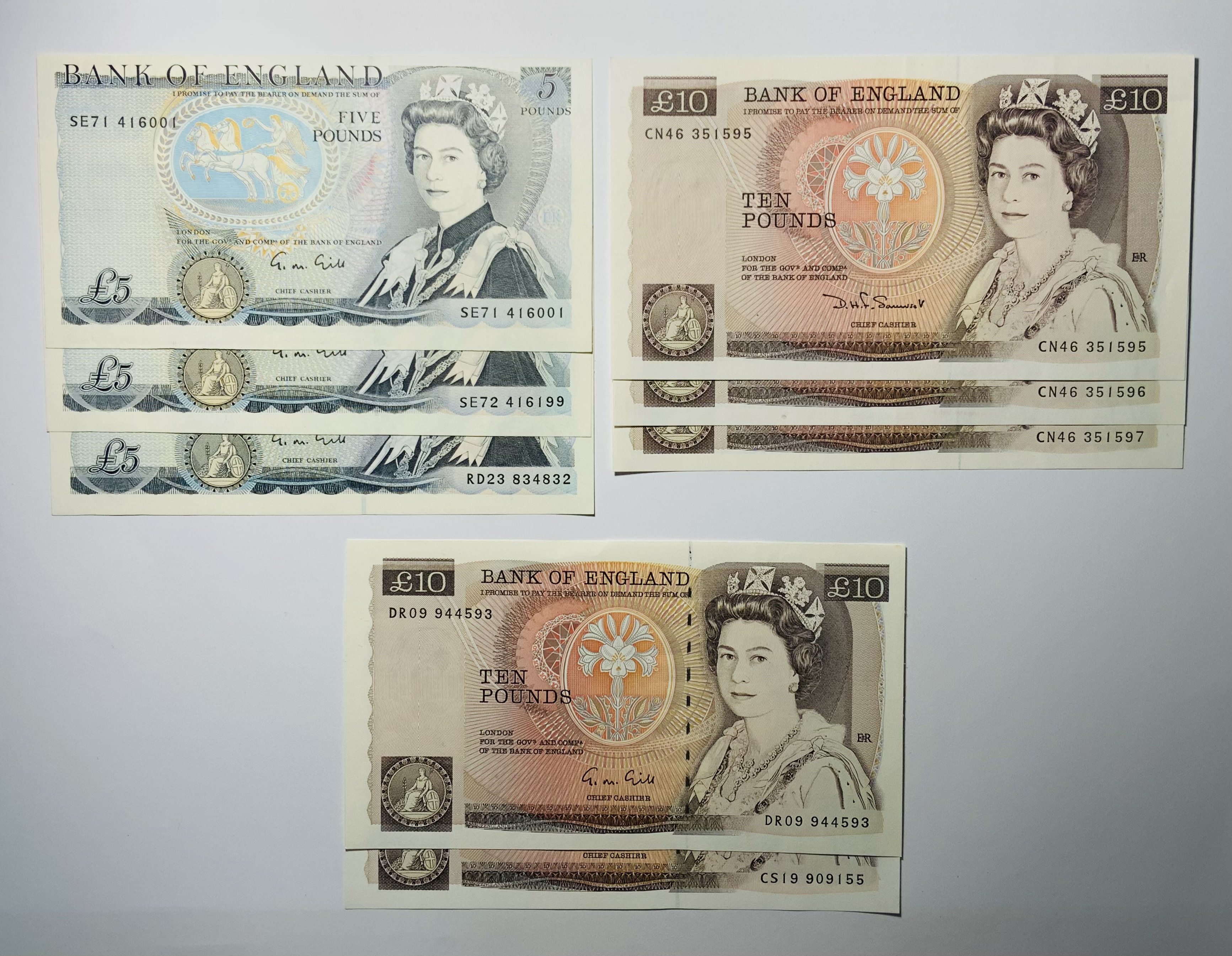 D.H.F Somerset, 5 10 Notes, Unc, G.M.Gill, 3 5 notes.