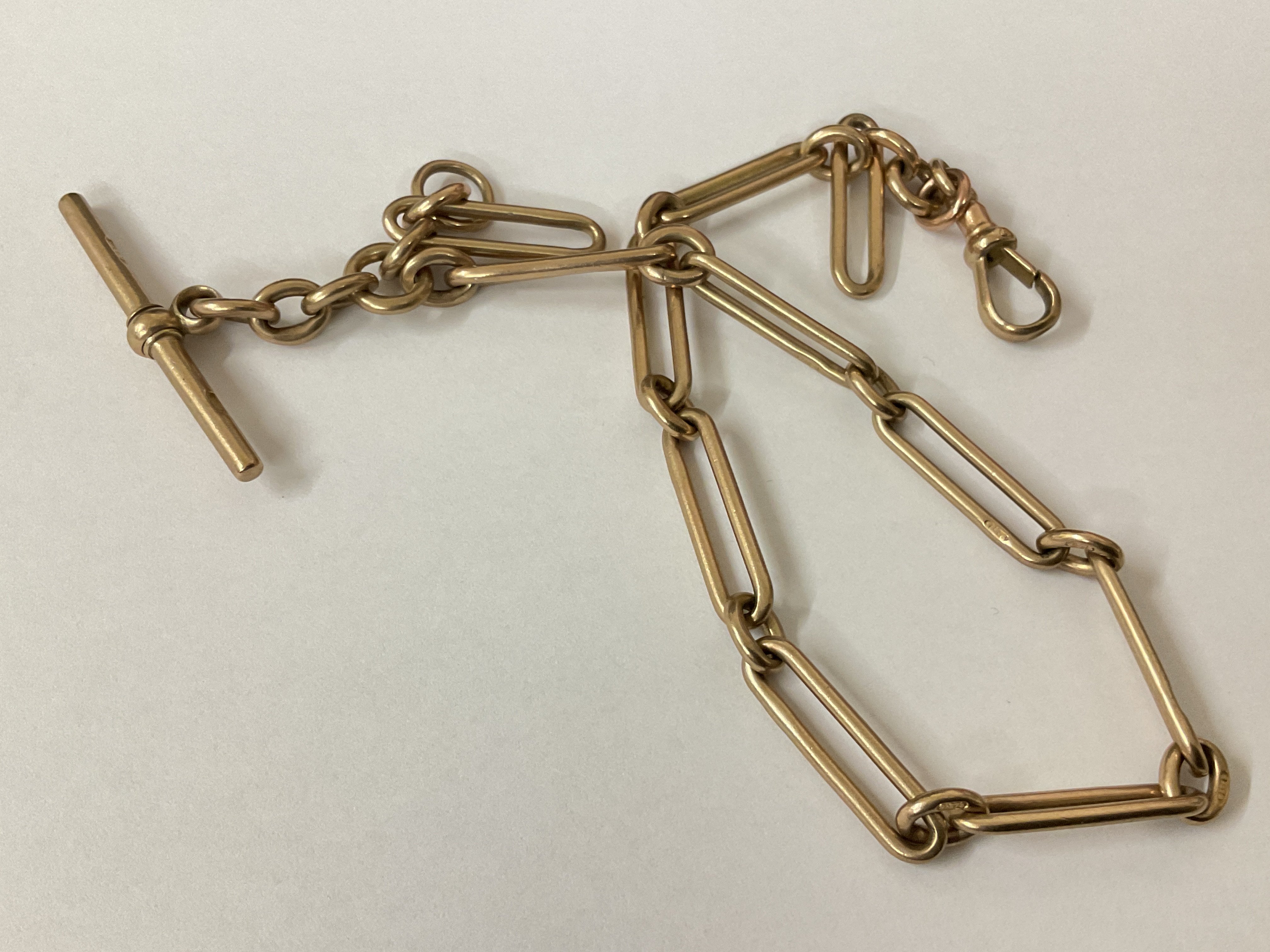 A 9ct gold Albert Chain. 37.36g approximately. Postage category A.