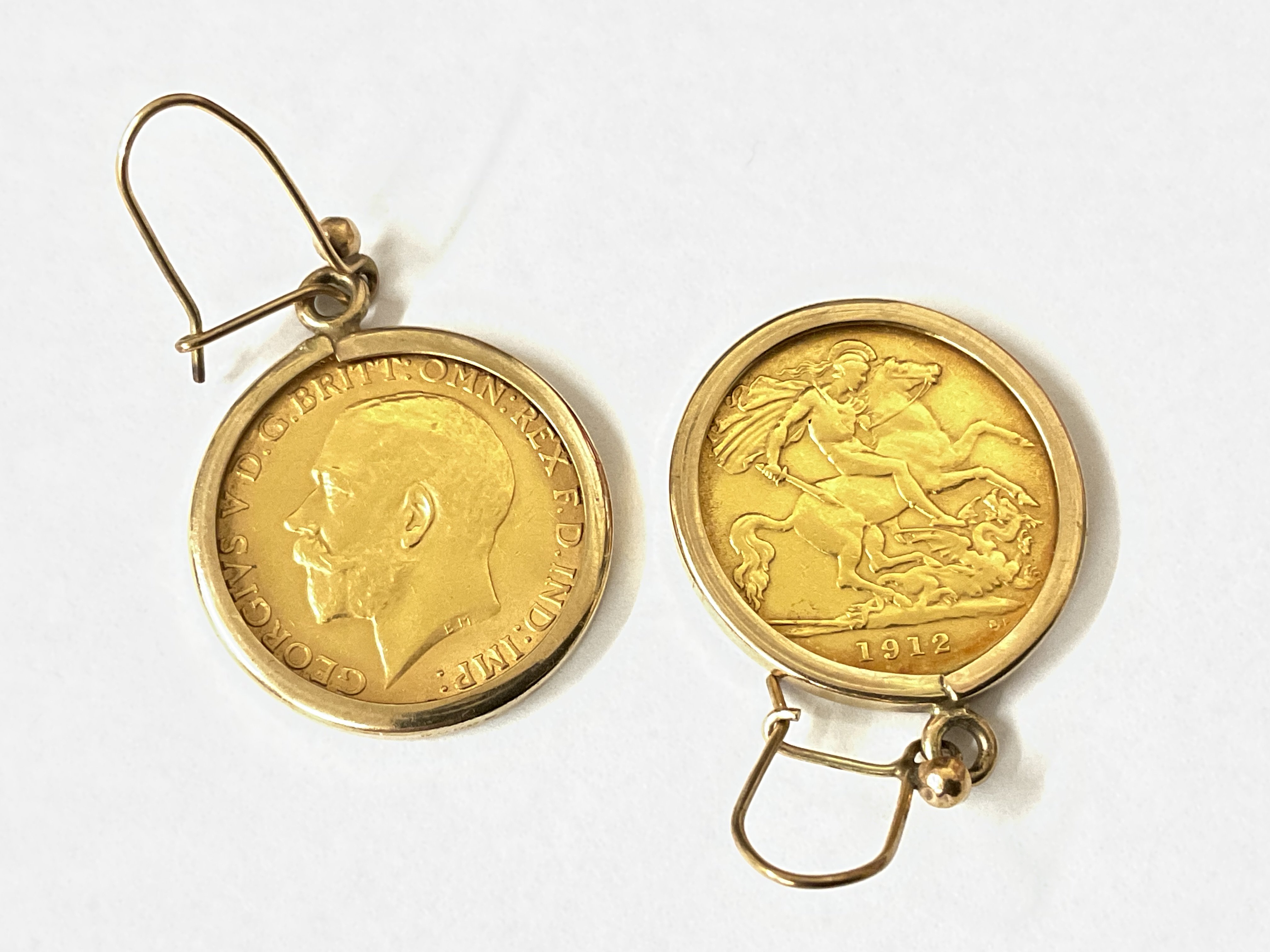 1912 and 1914 half sovereign earrings, 9.97g approximately, postage category A.