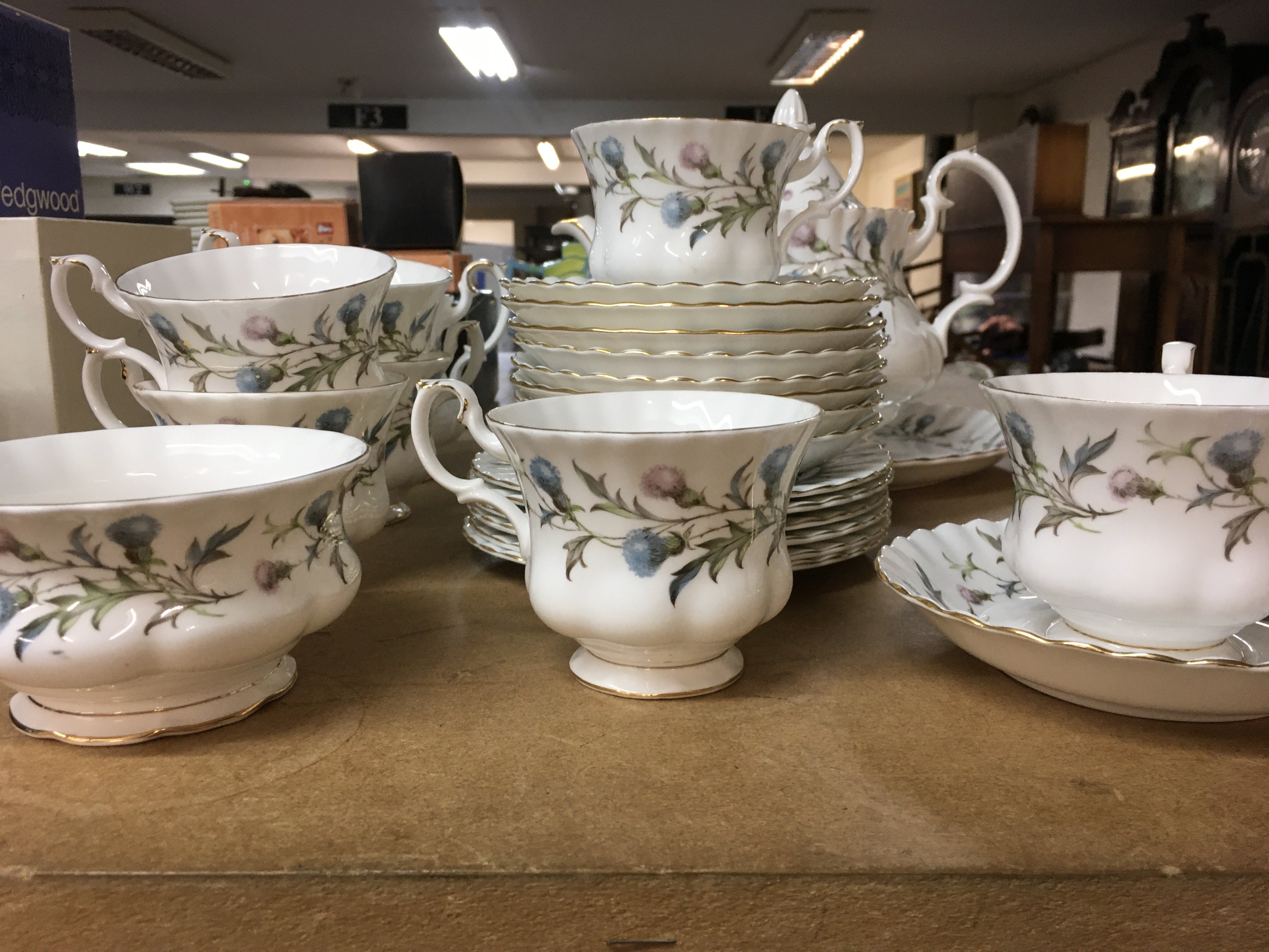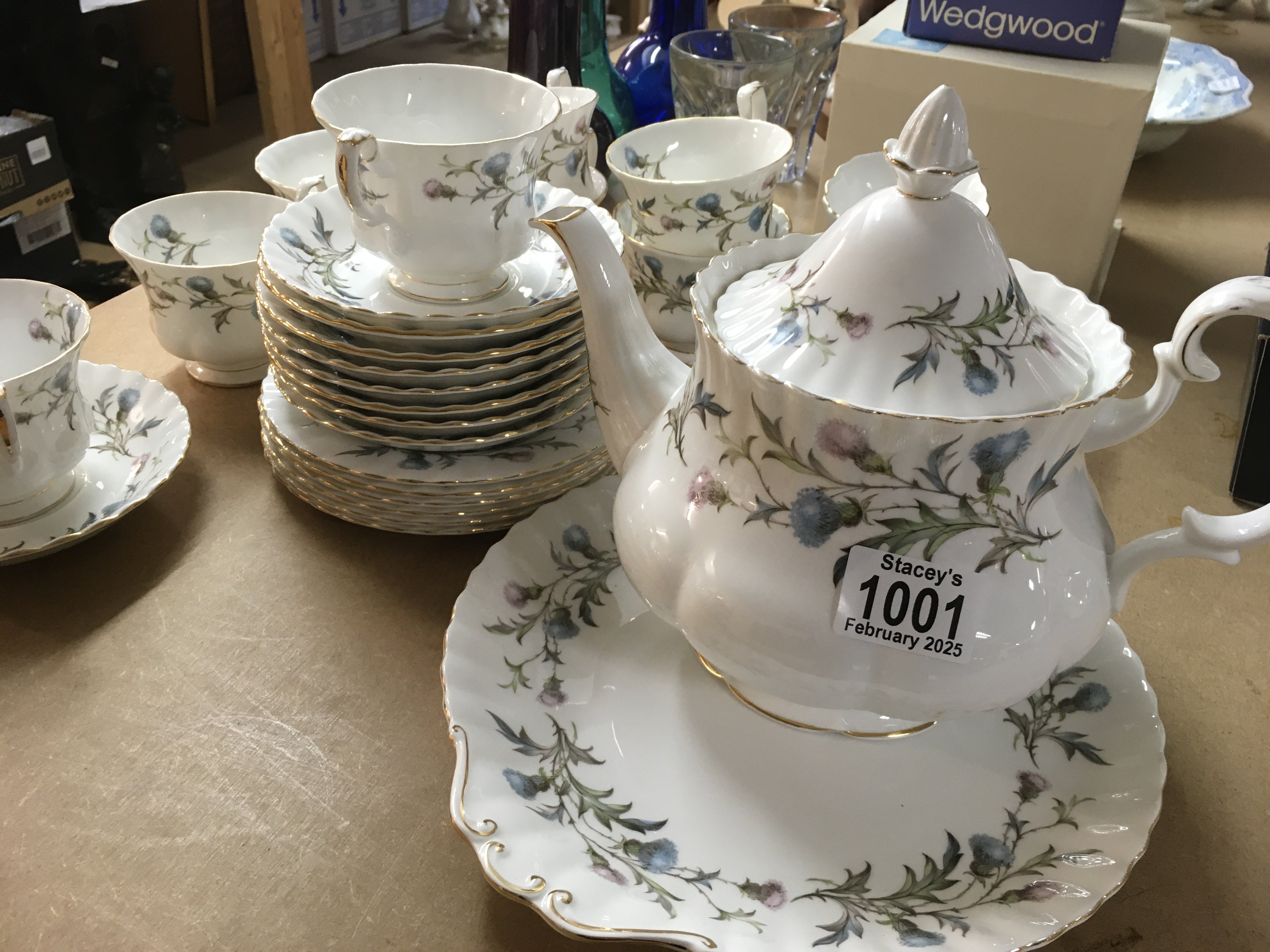 A Royal Albert Brigadoon tea set including tea pot milk jug sugar bowl Cups and saucers.