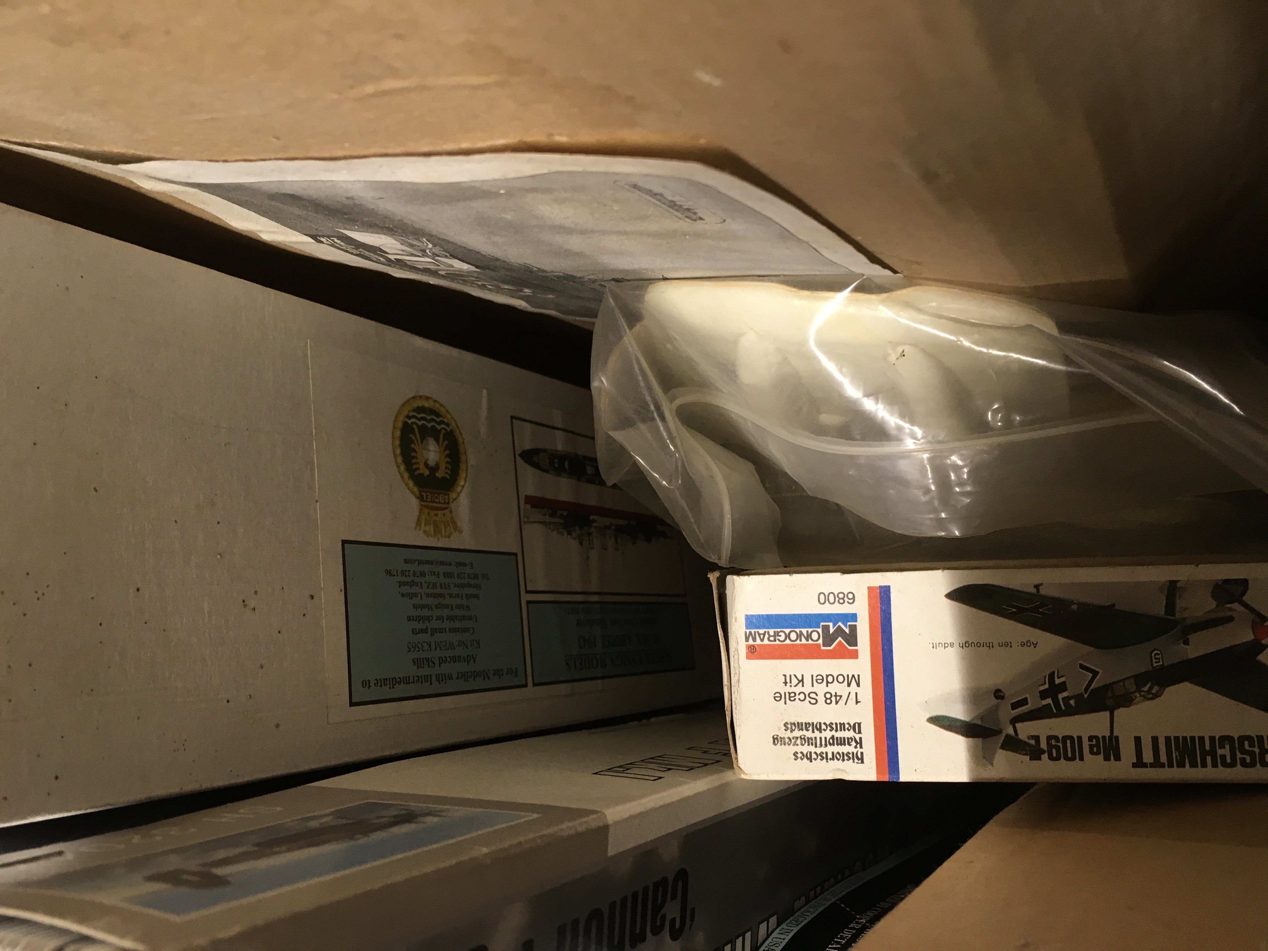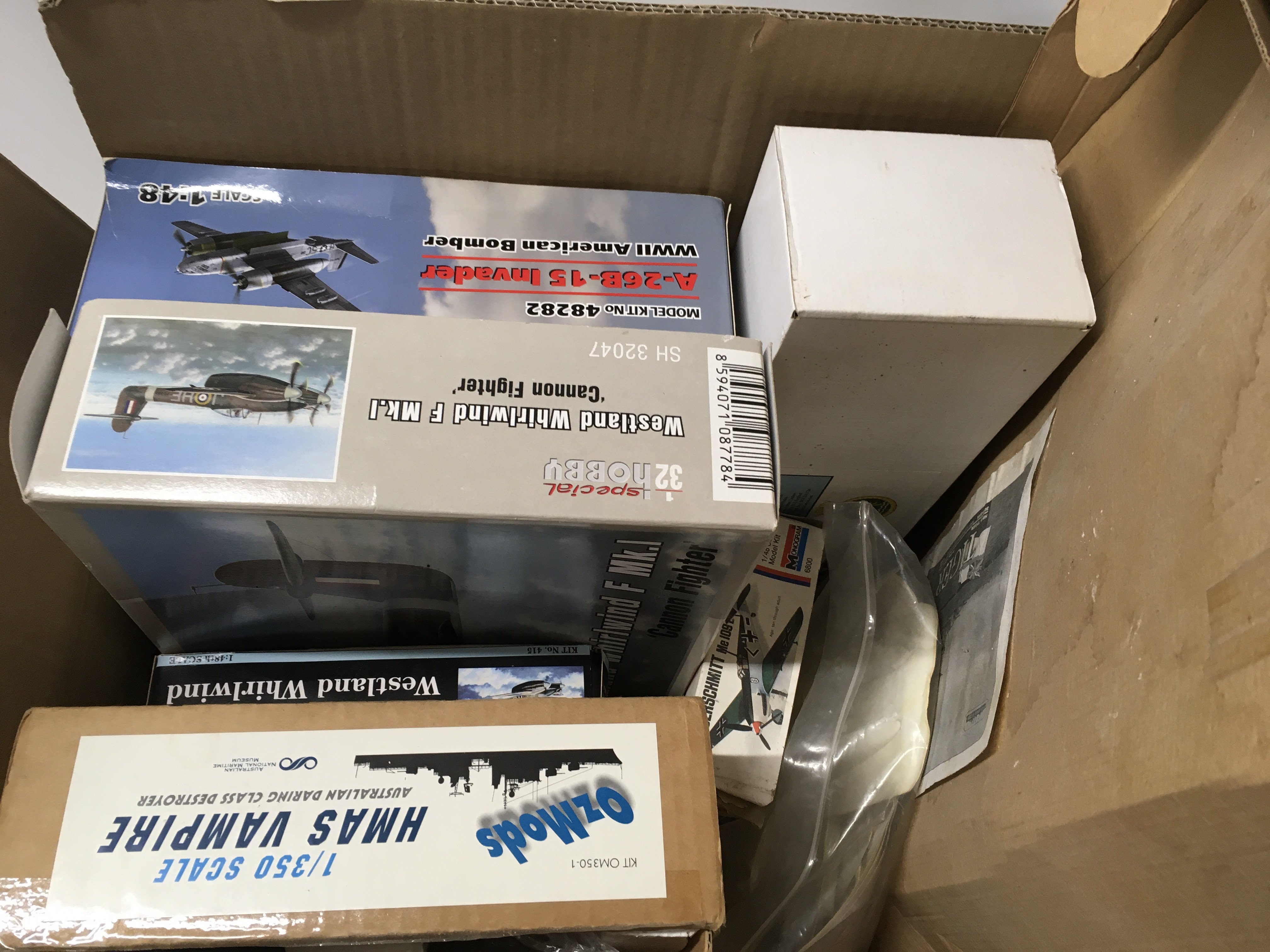 A collection of 8 model kits featuring warships and warplanes. Some started…some incomplete …some complete. No reserve