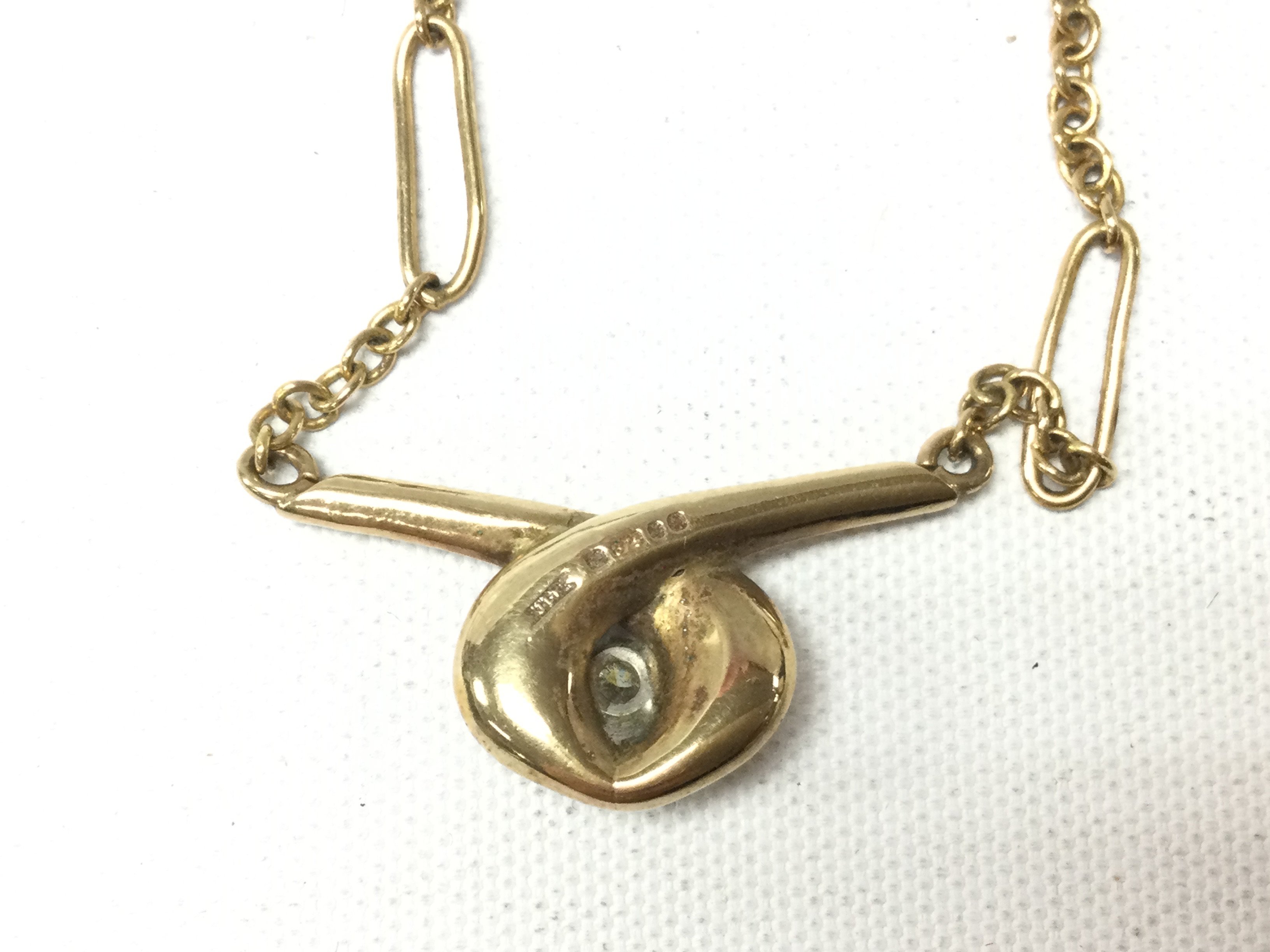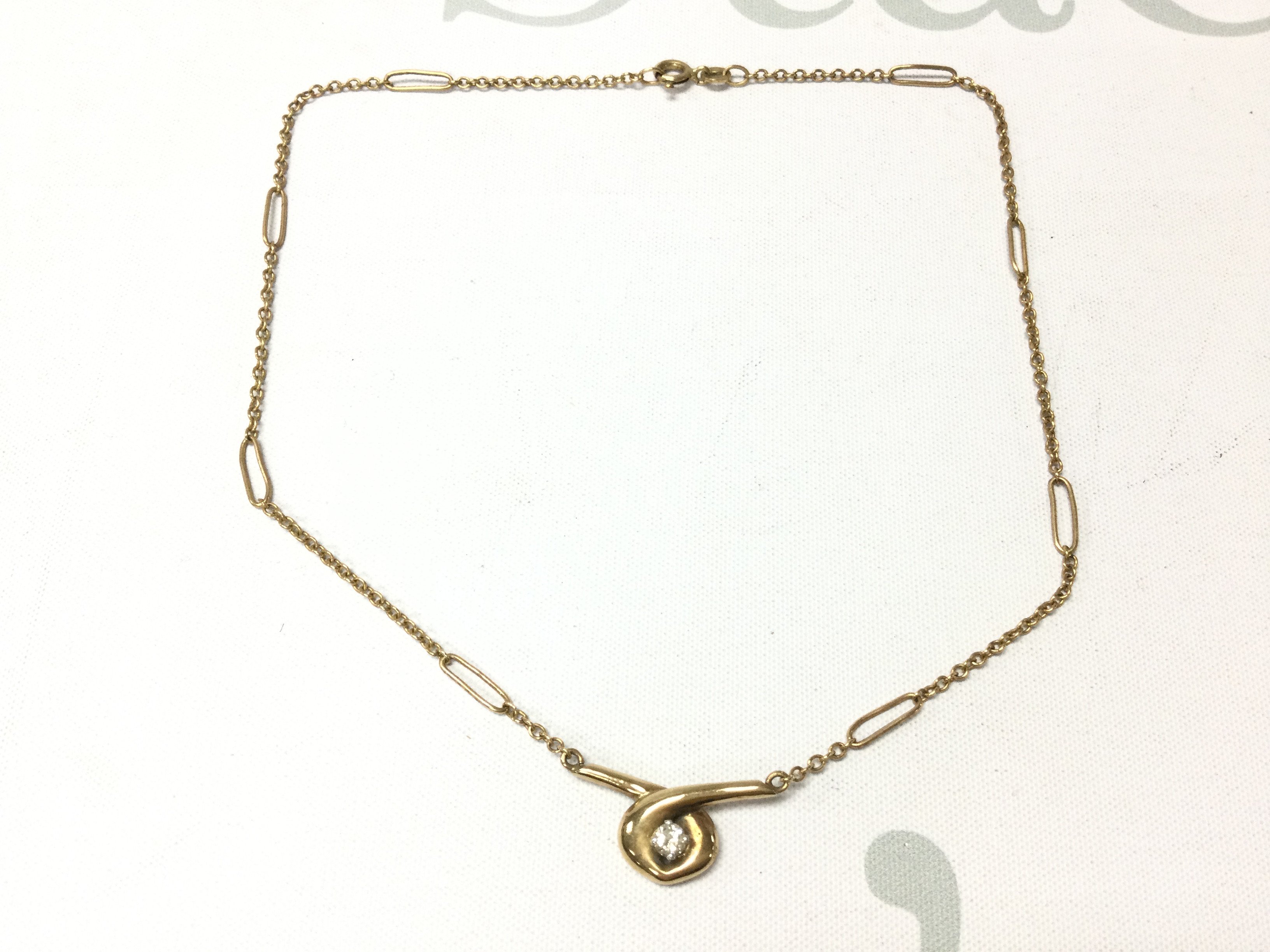 A 9ct gold necklace set with a single moissonite. 6.24g Postage A
