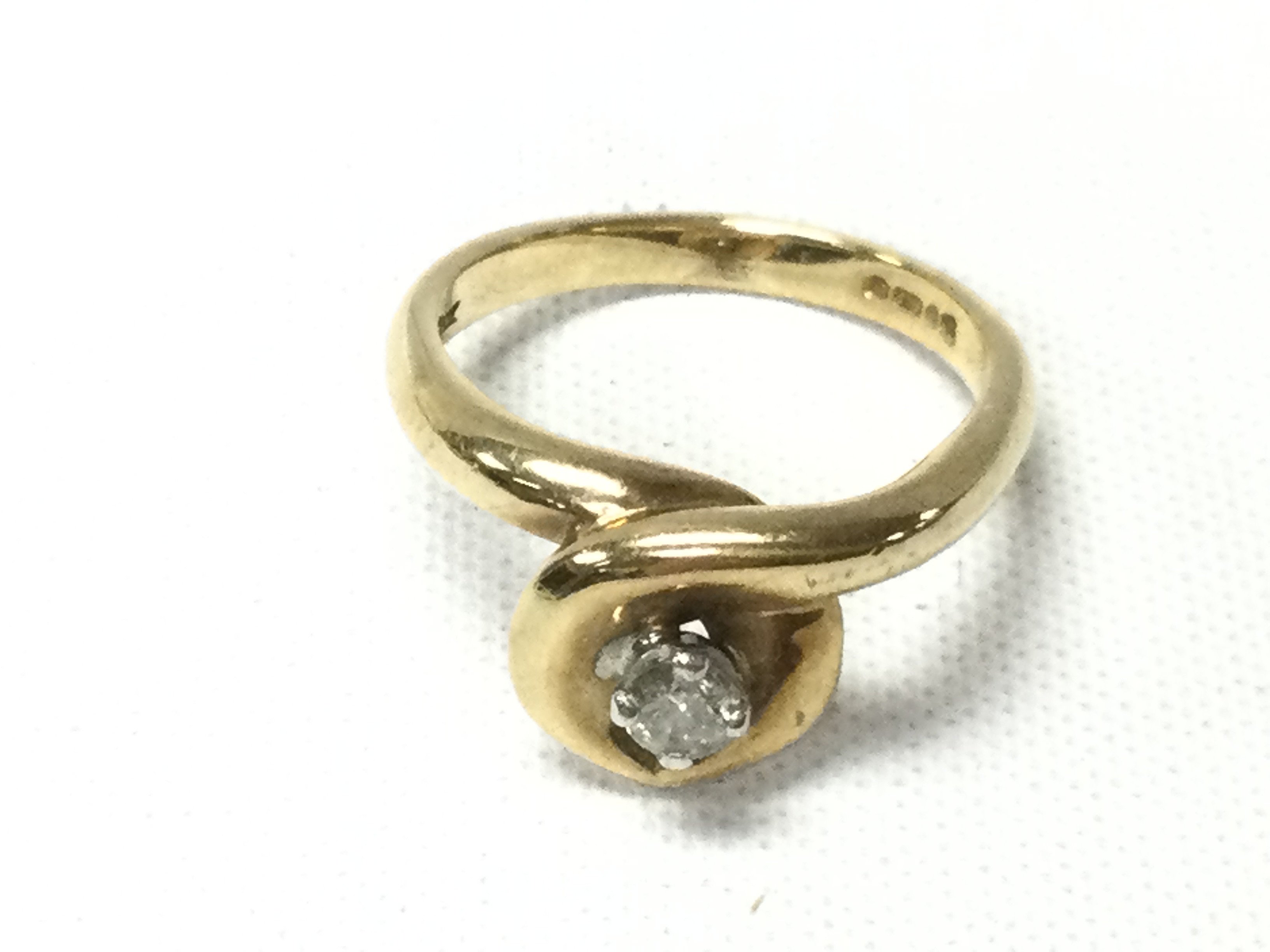 A 9ct gold ring set with a single diamond. Size K 1/2 and 4.05g