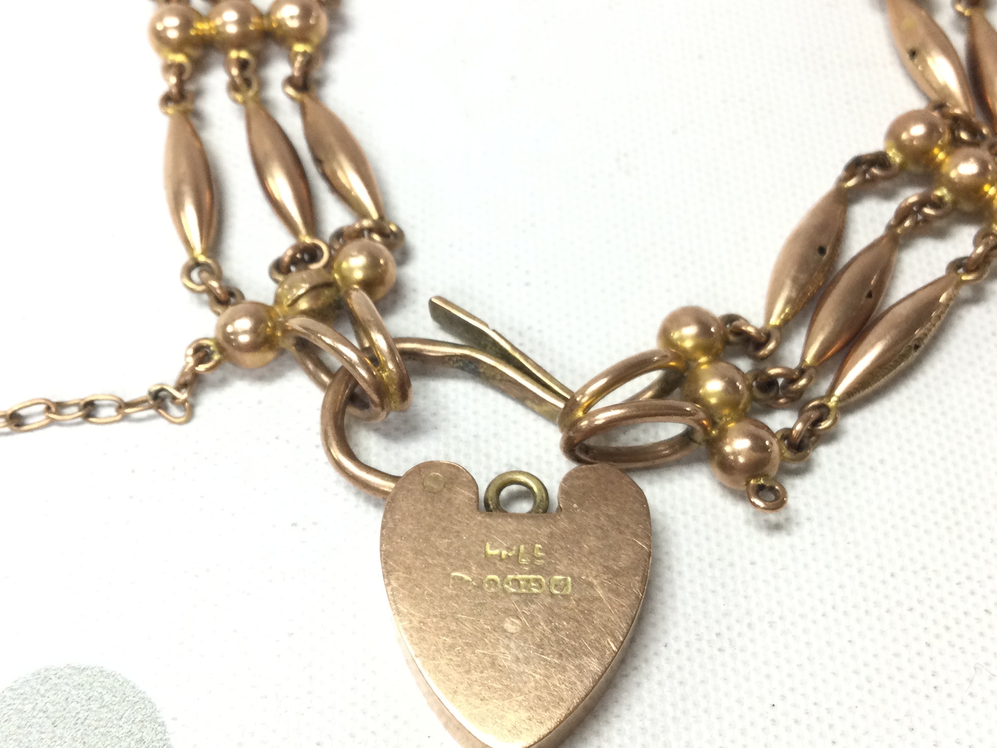 A 9ct gold gate bracelet with heart shaped padlock. 13.70g
