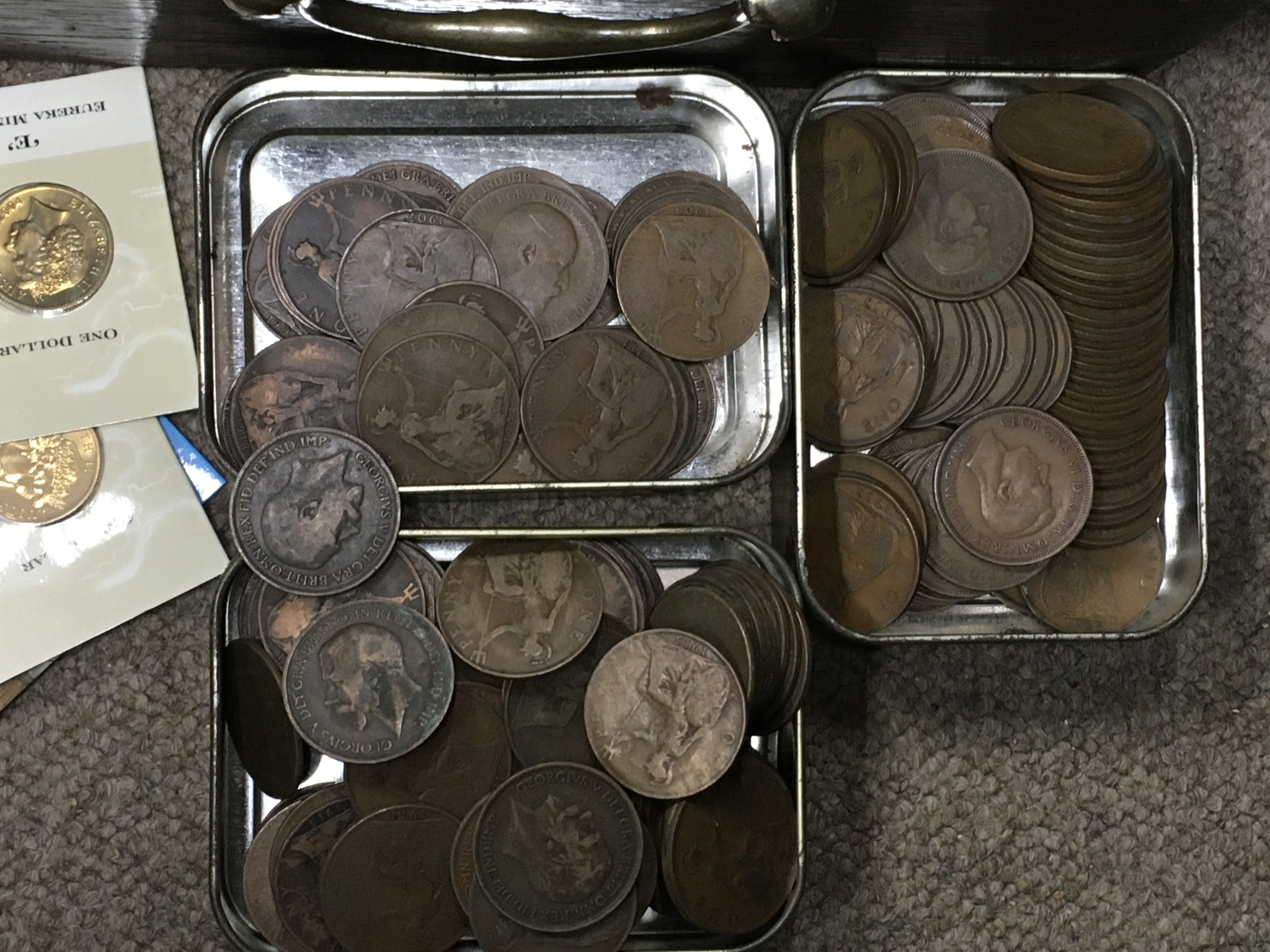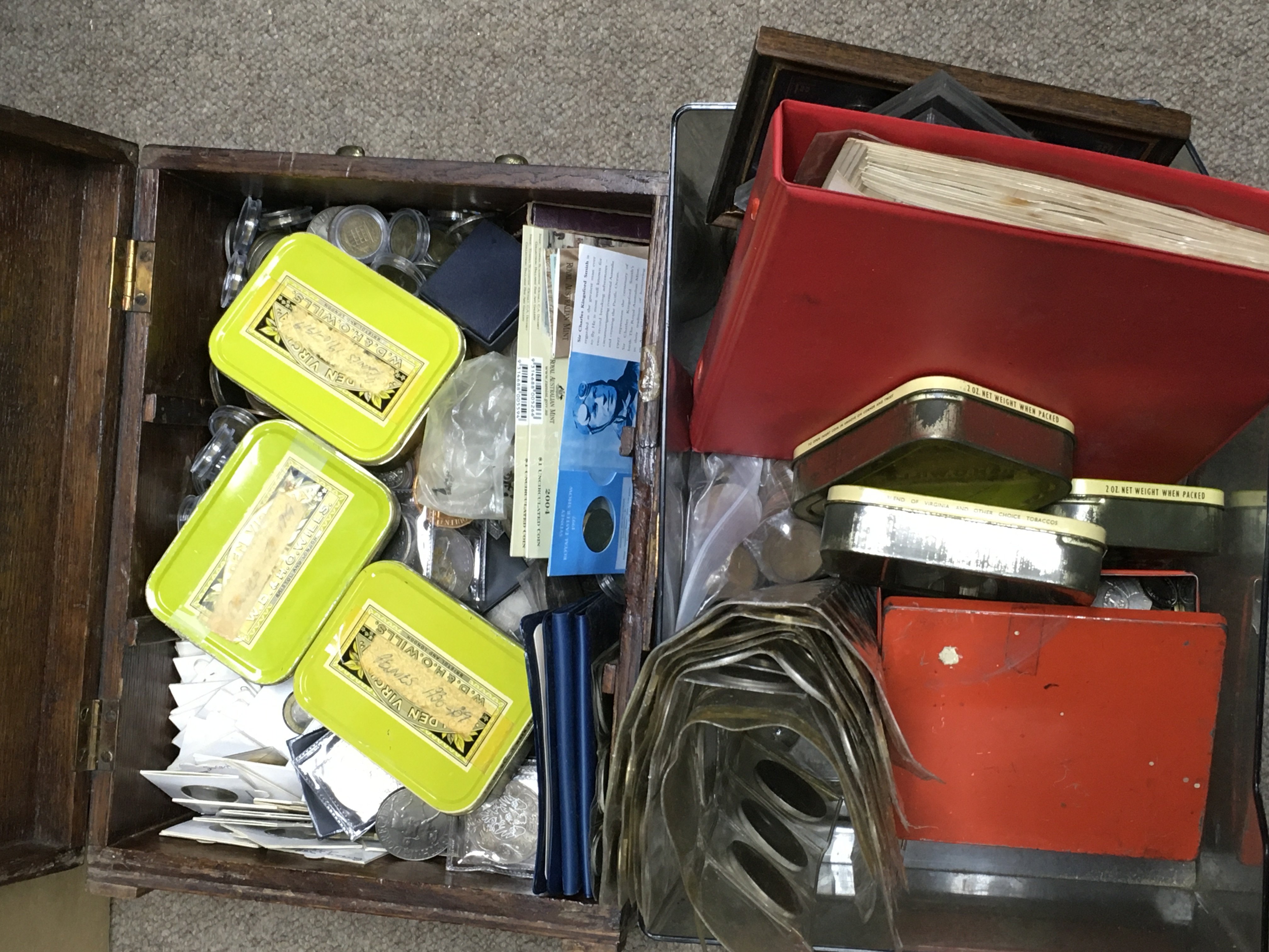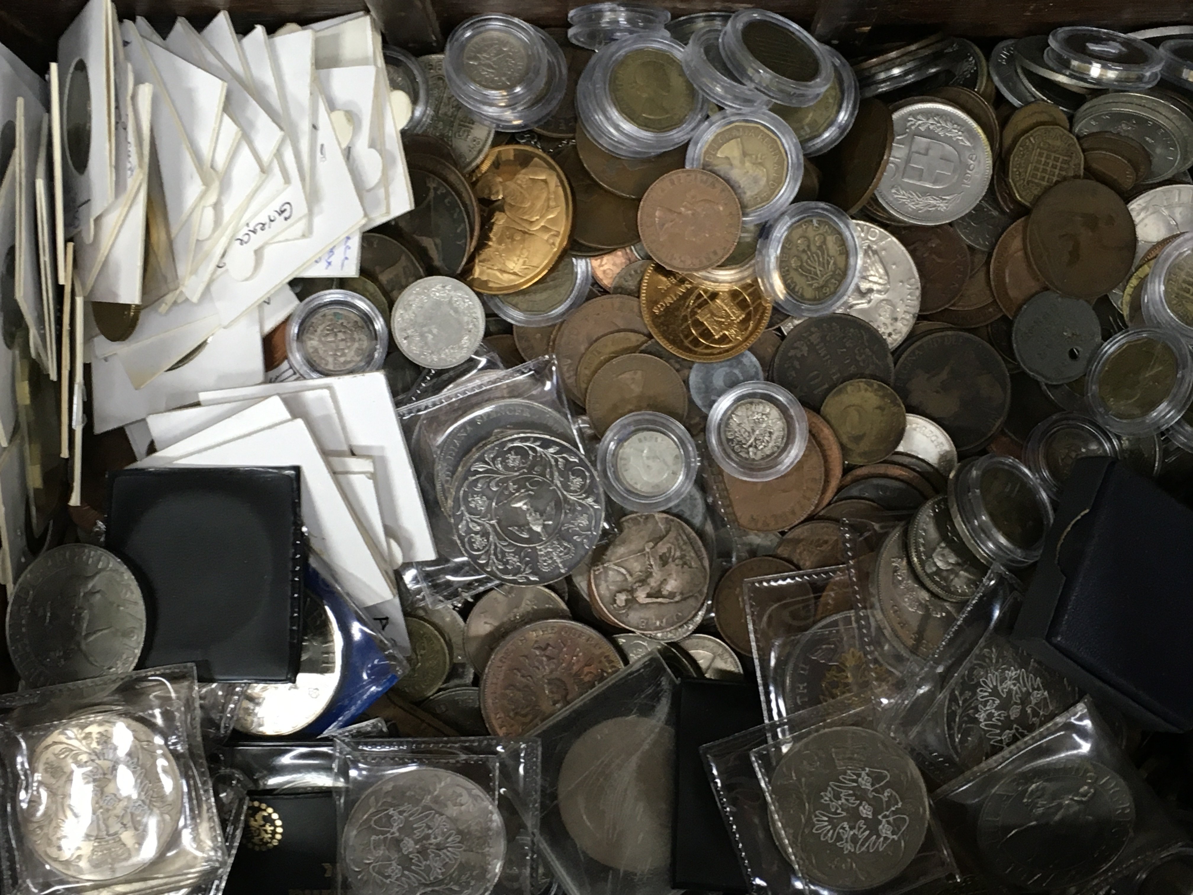 Two boxes of mixed British and World coins including pennies, commemorative etc. this lot cannot be posted