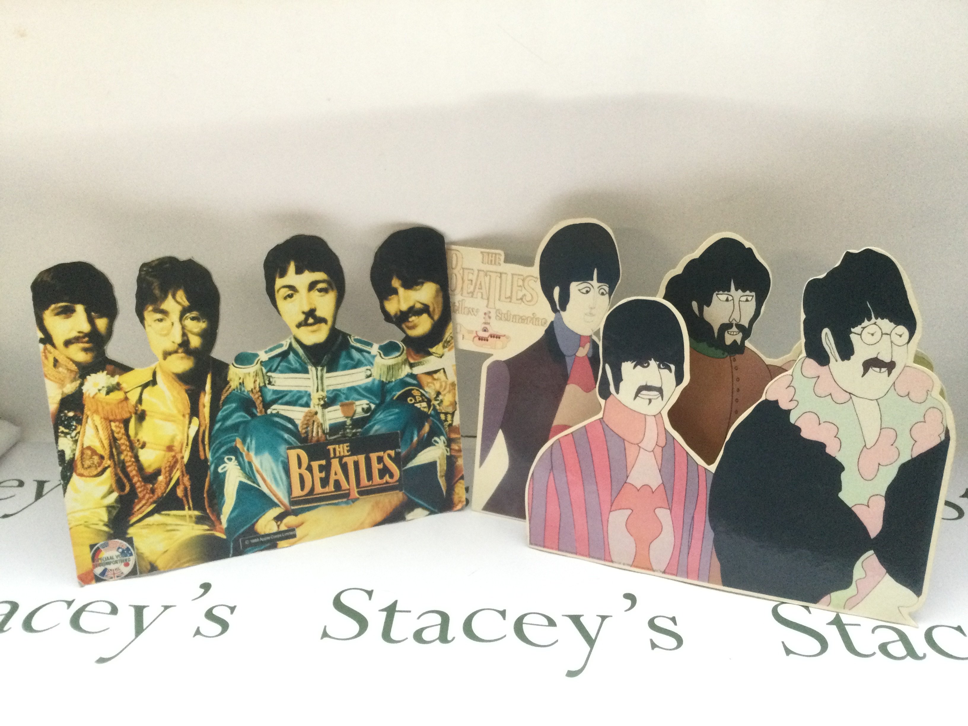 Two Beatles advertising shop counter displays, approx height 30cm.