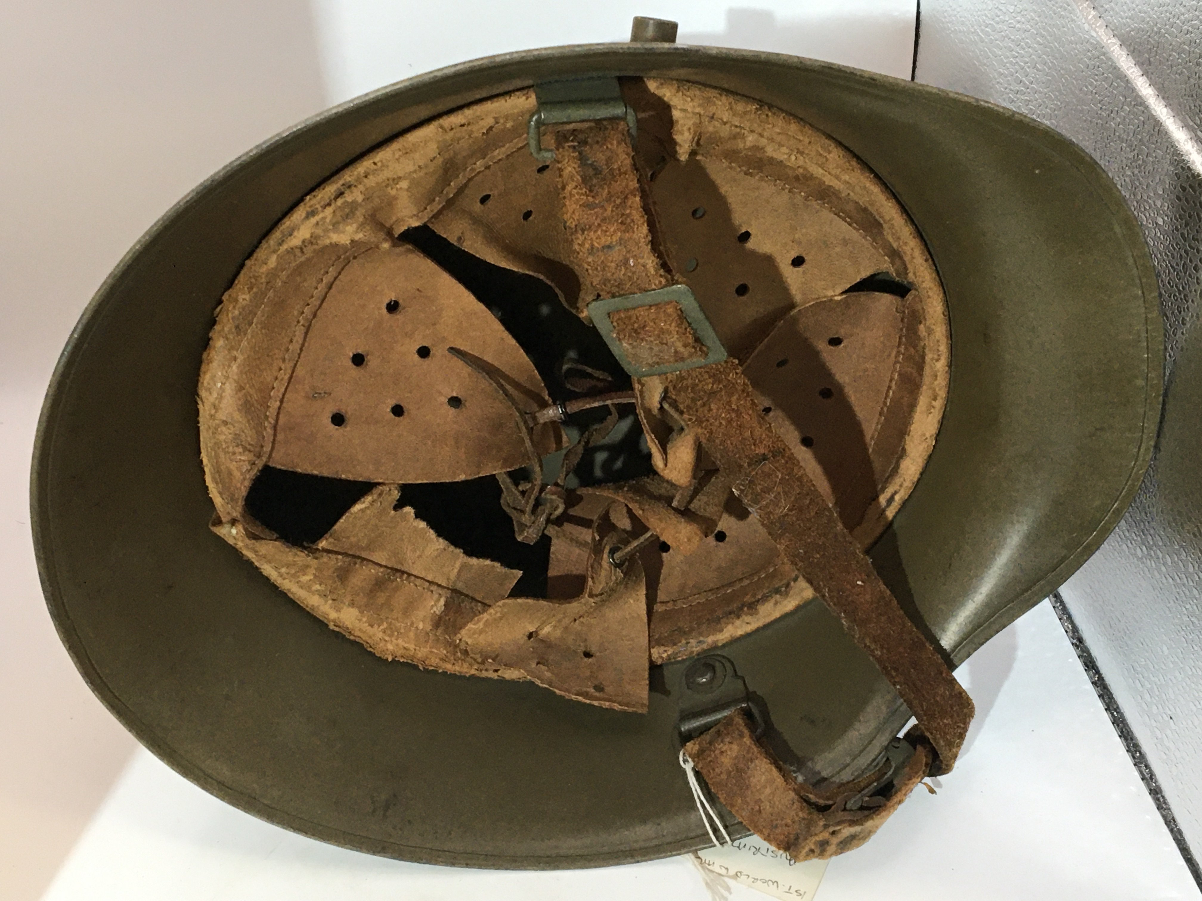 An Austrian or German I world war helmet M16 pattern with leather lined interior.