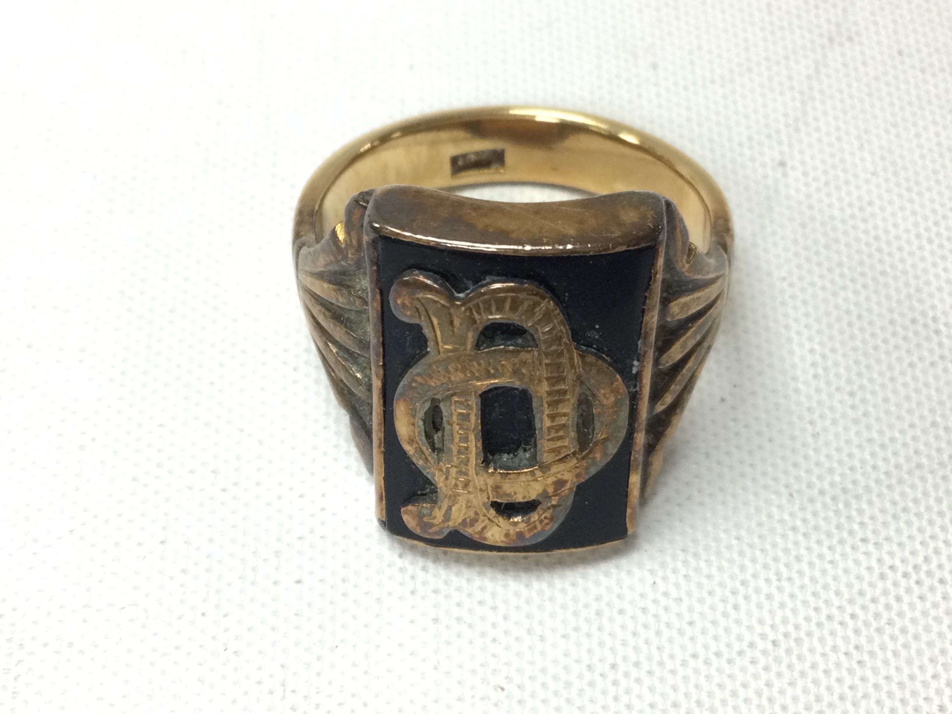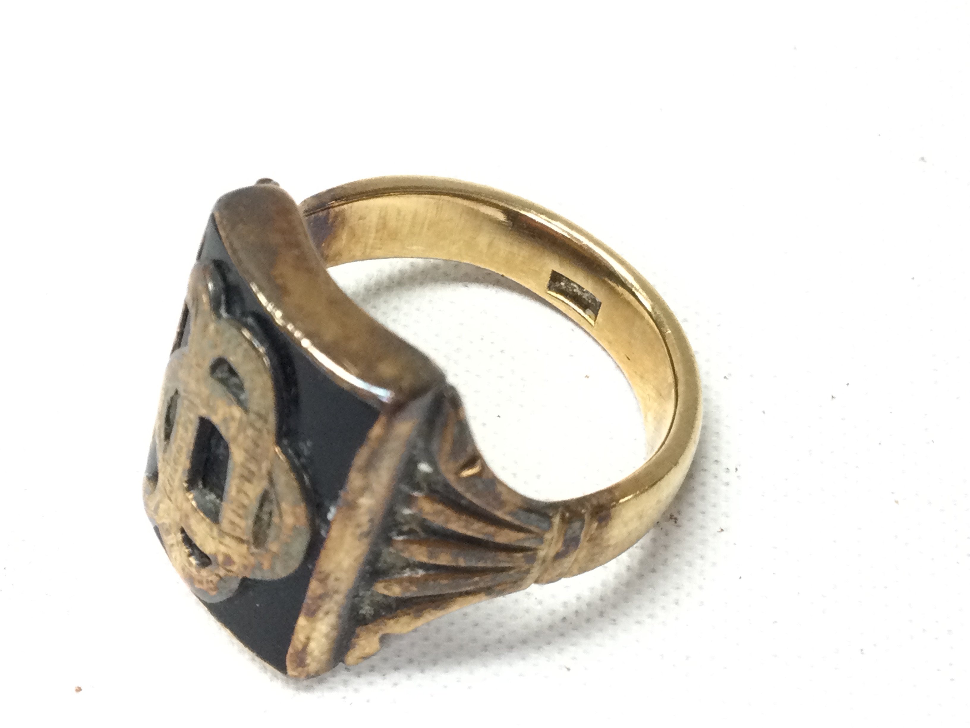 A 14ct gold Onyx DO ring. Size T and 12.08g Postage B