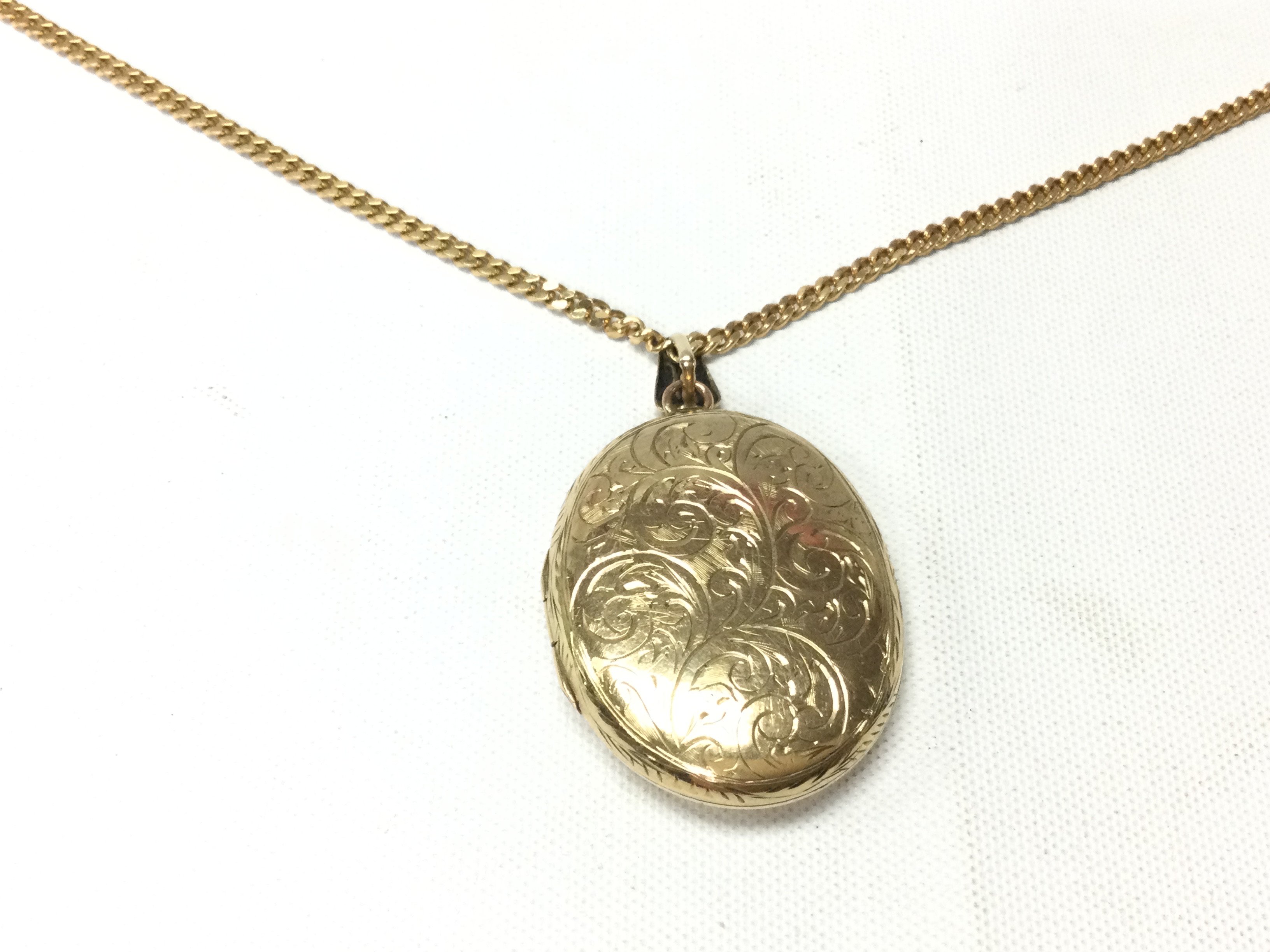 A 9ct gold locket on a 9ct chain. 16.20g Postage B