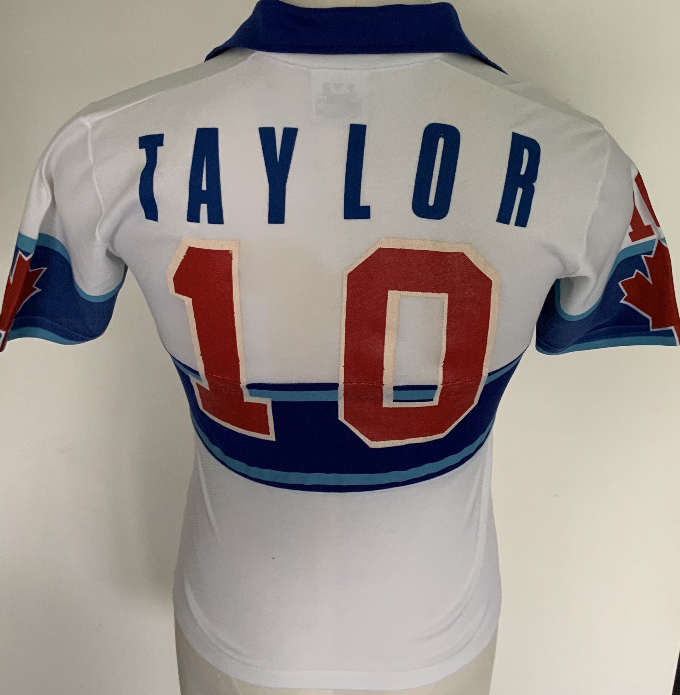 Vancouver Whitecaps 1980 Match Worn Football Shirt: Excellent condition very rare home shirt made by Admiral. Number 10 to front, rear and sleeves. Both sleeves have the Canadian flag. Size 36 attractive shirt has Taylor to rear. The NASL dissolved in 1984 with many participating teams going the same way. COA from Alan Taylor who wore number 10 in his first season.