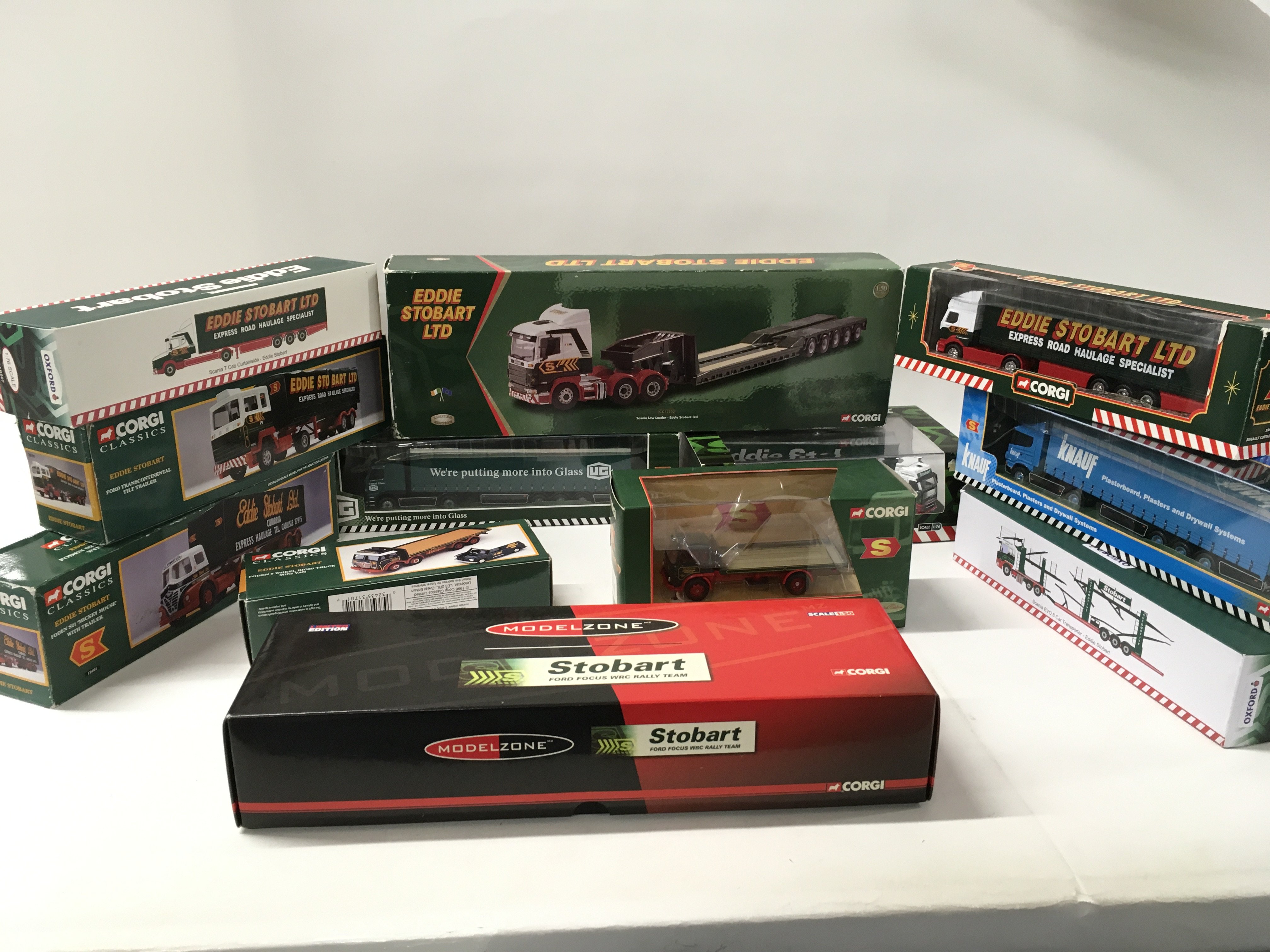 A collection of 12 corgi boxed assorted commercial vehicles all themed Eddie Stobart.
