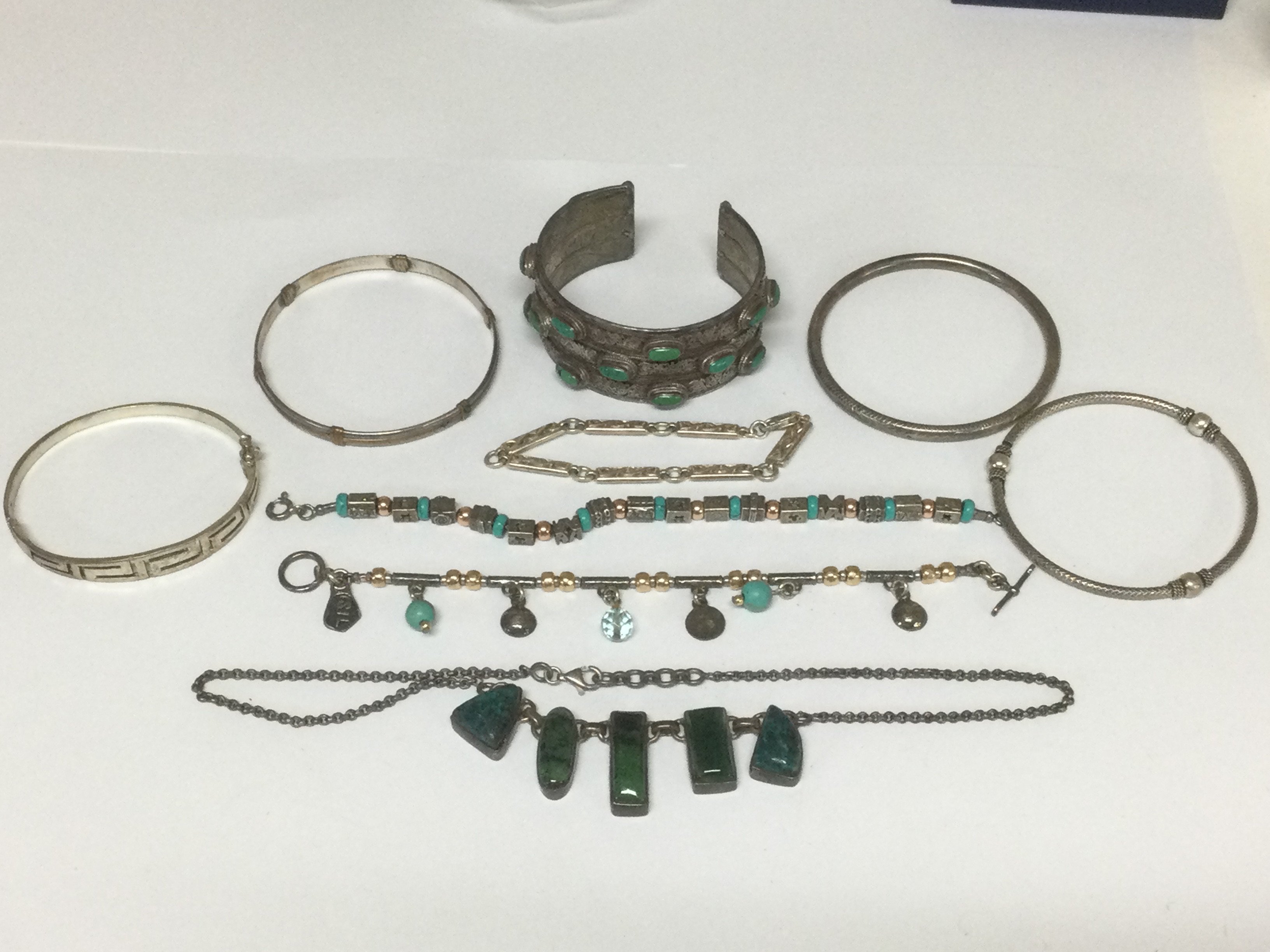 A collection of silver jewellery comprising mainly bangles. Shipping category A.