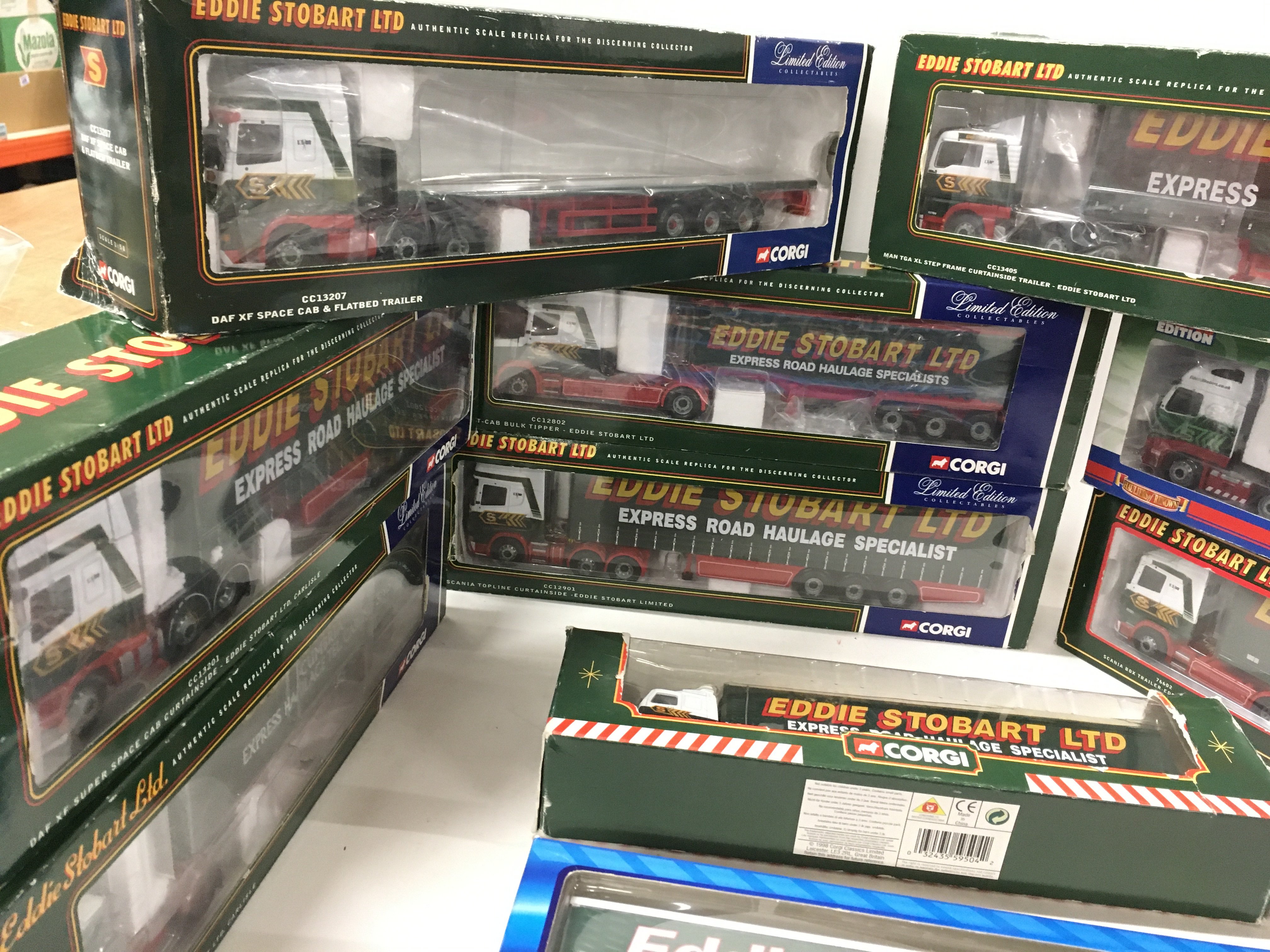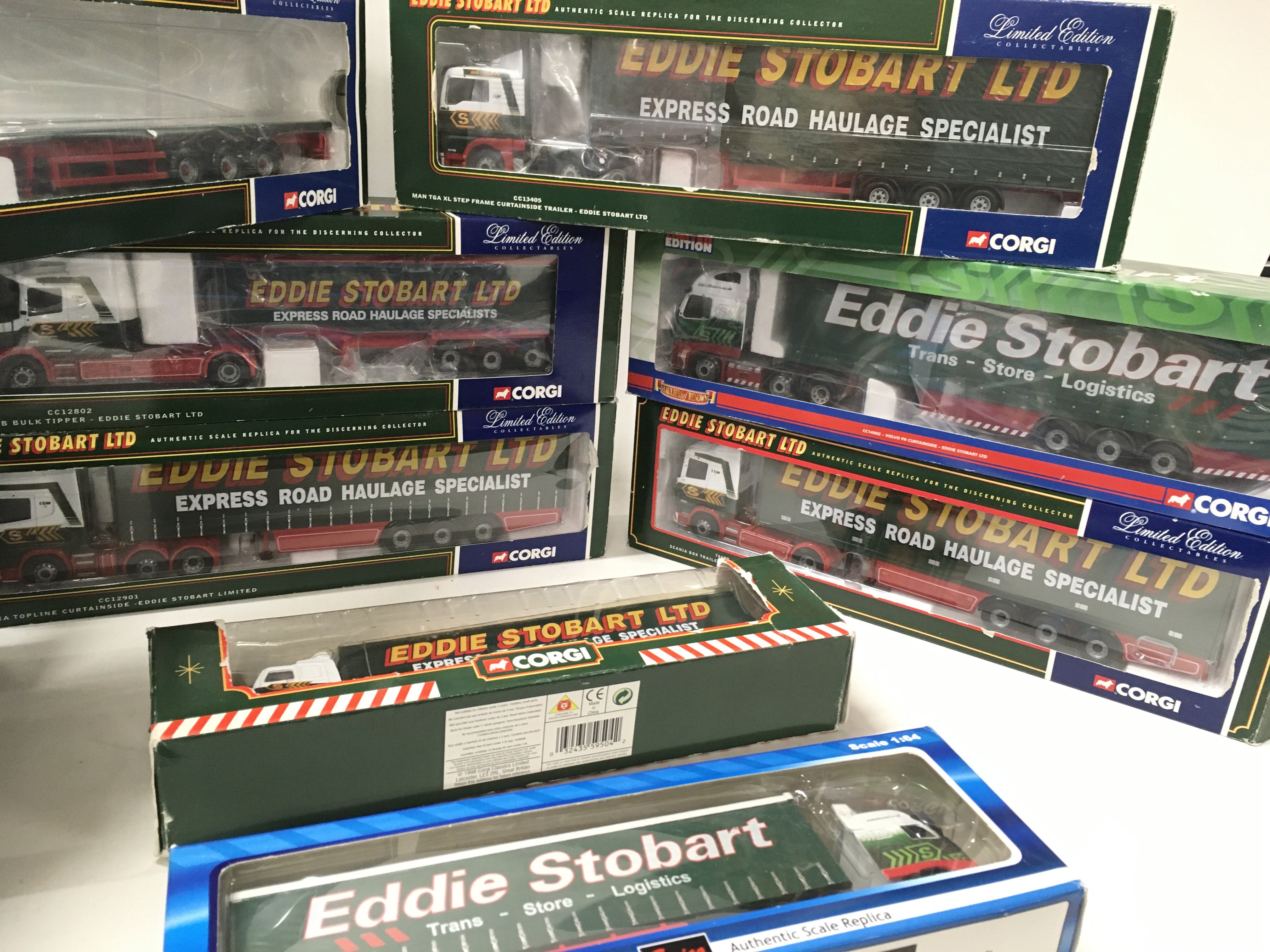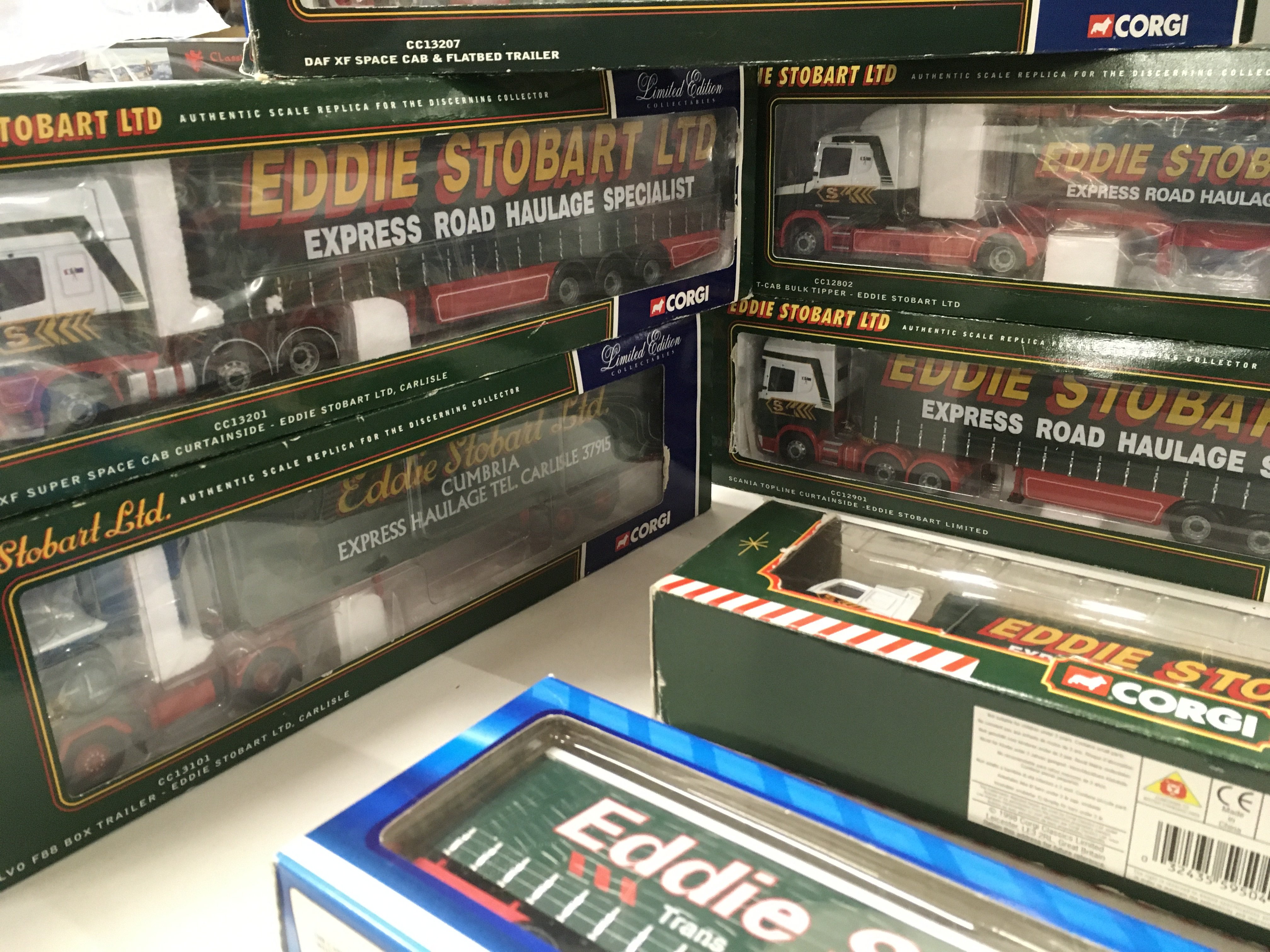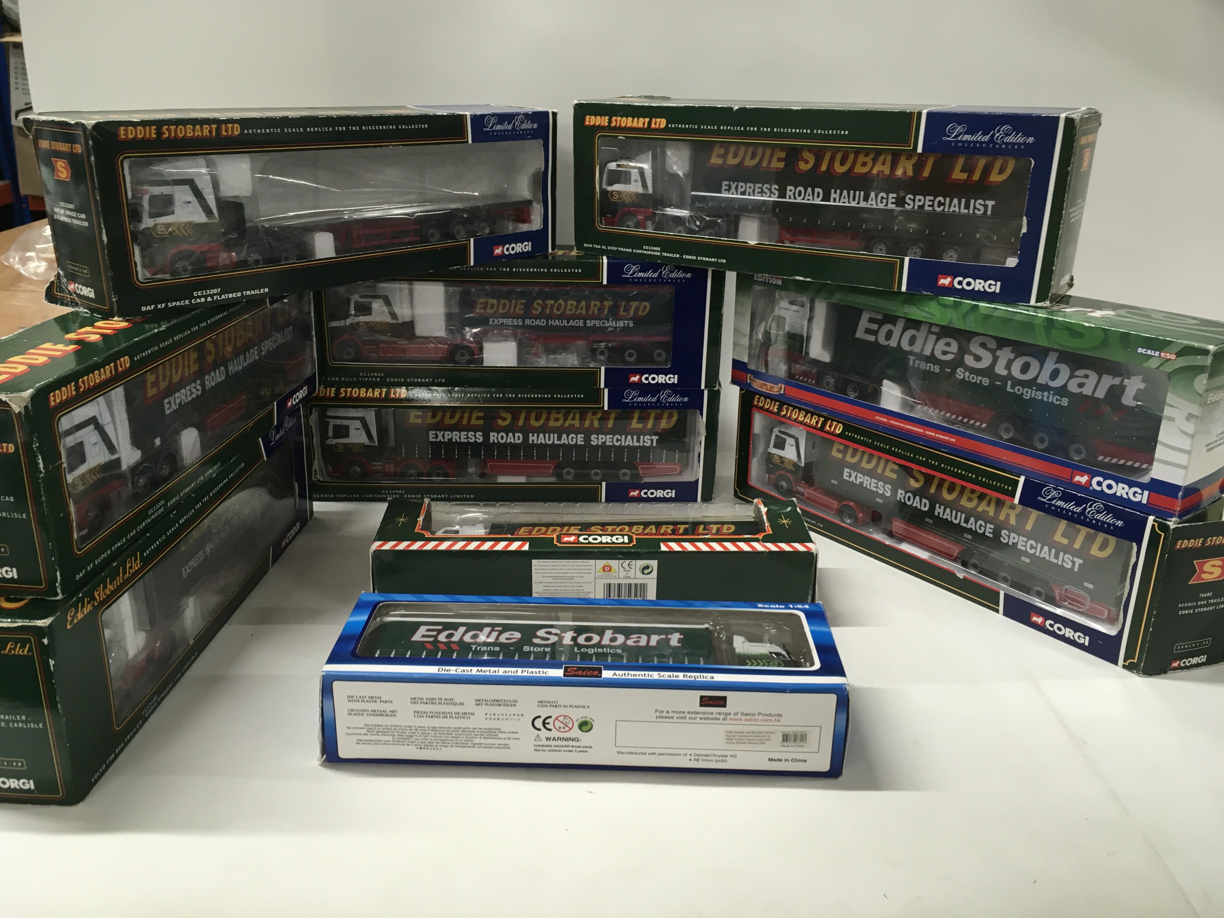 A collection of 10 boxed model commercial vehicles all themed Eddie Stobart. Manufacturers are Corgi and Saico.