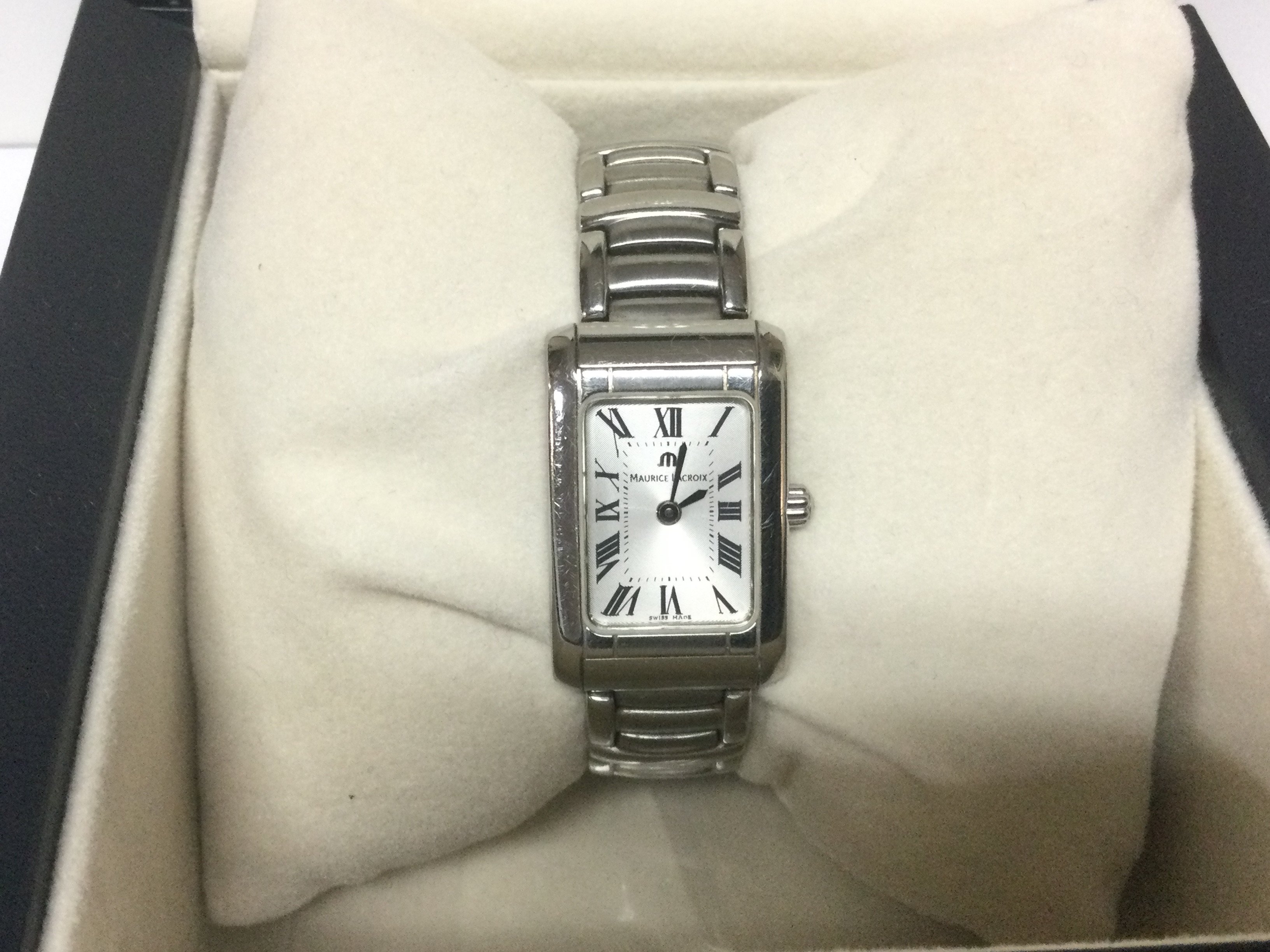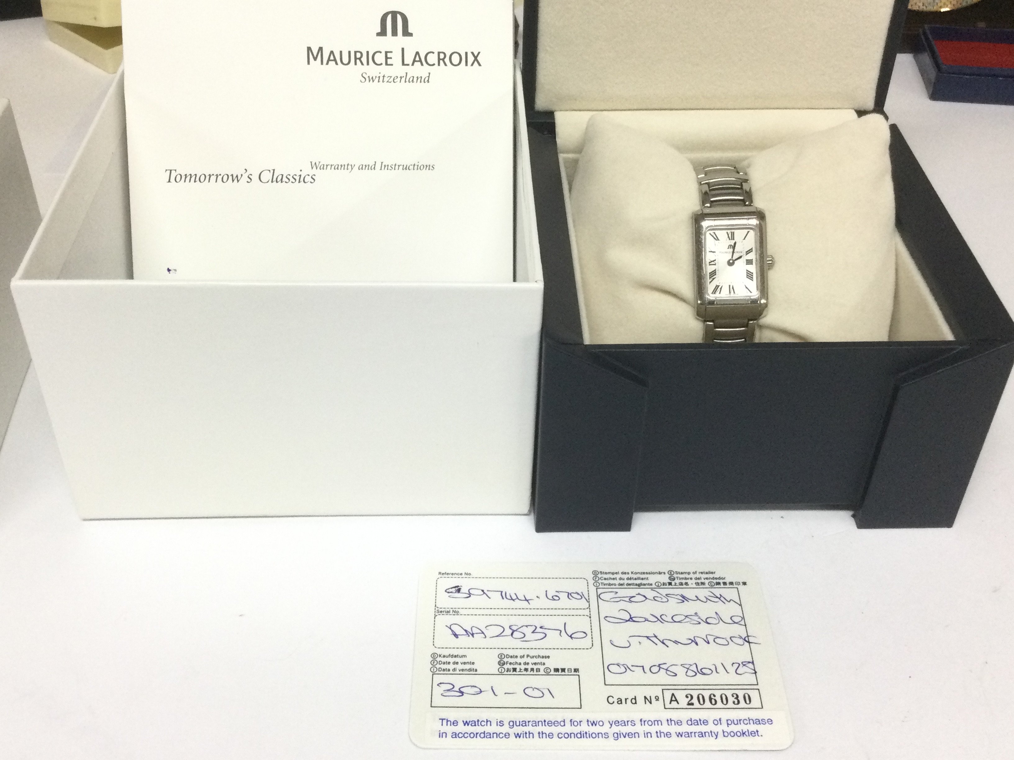 A boxed Maurice Lacroix ladies watch with paperwork and warranty card. Shipping category B.