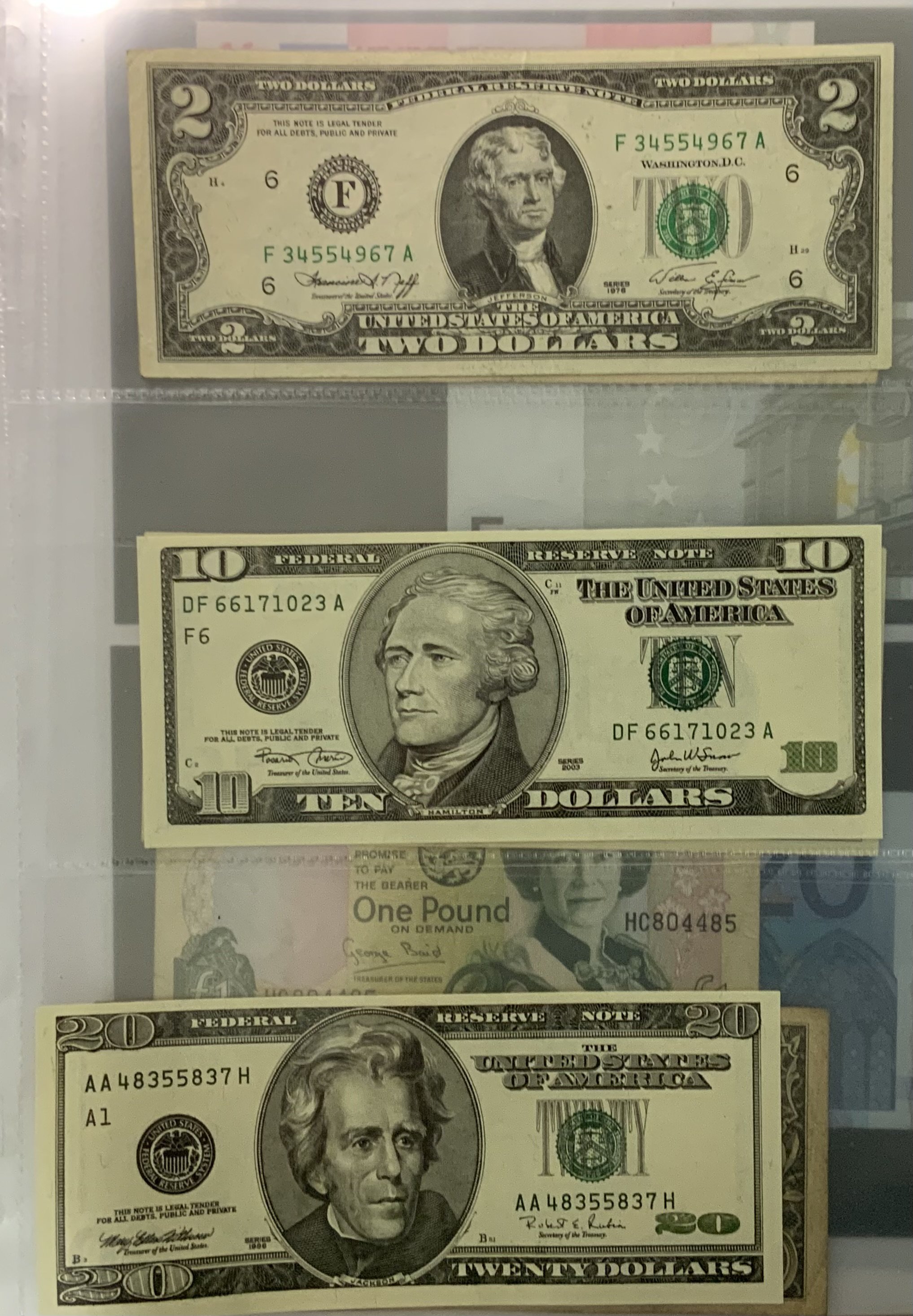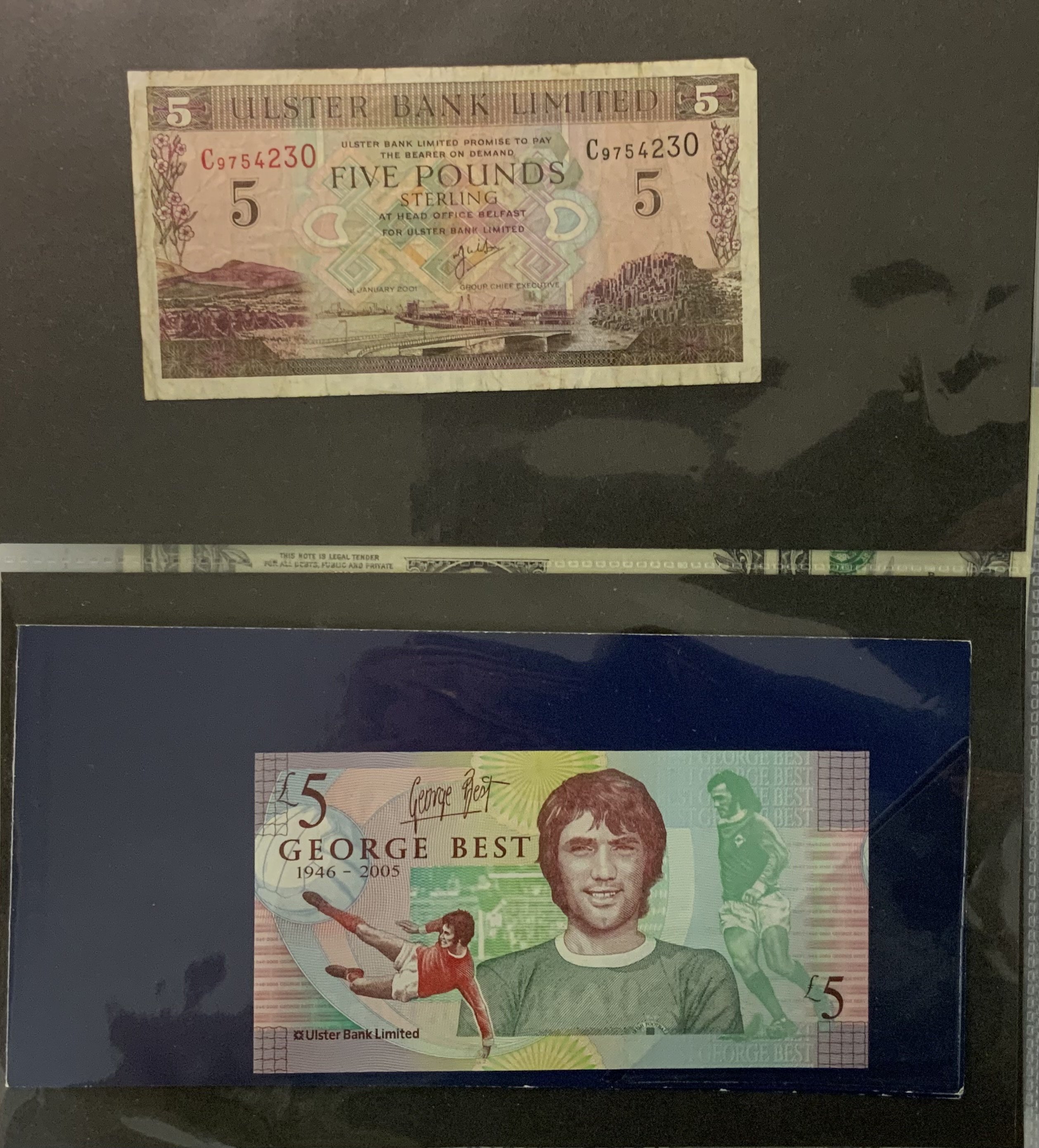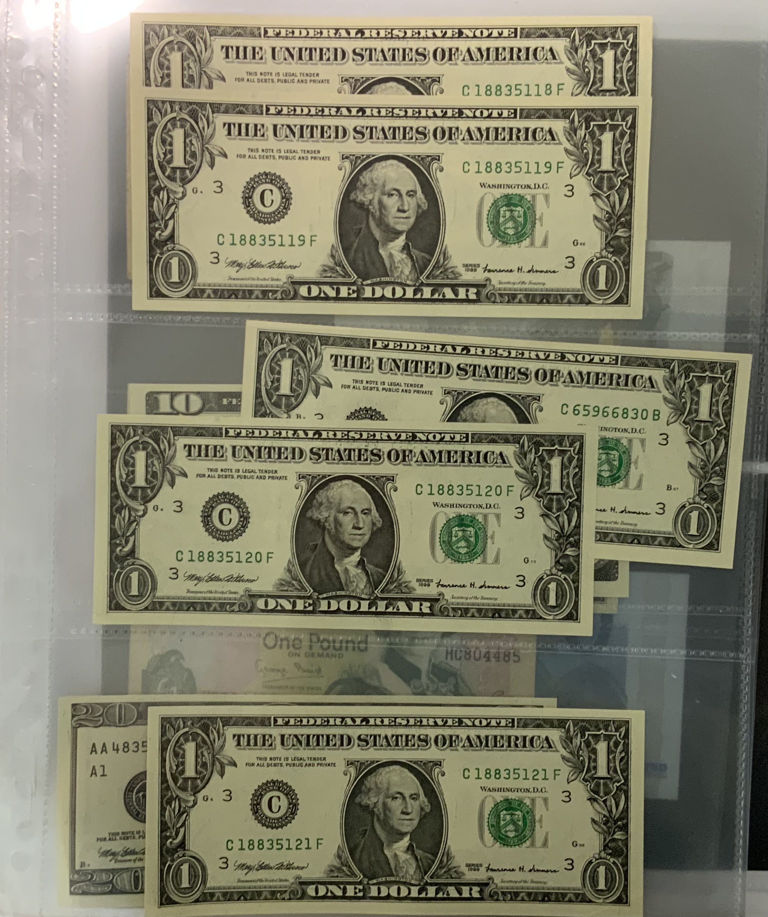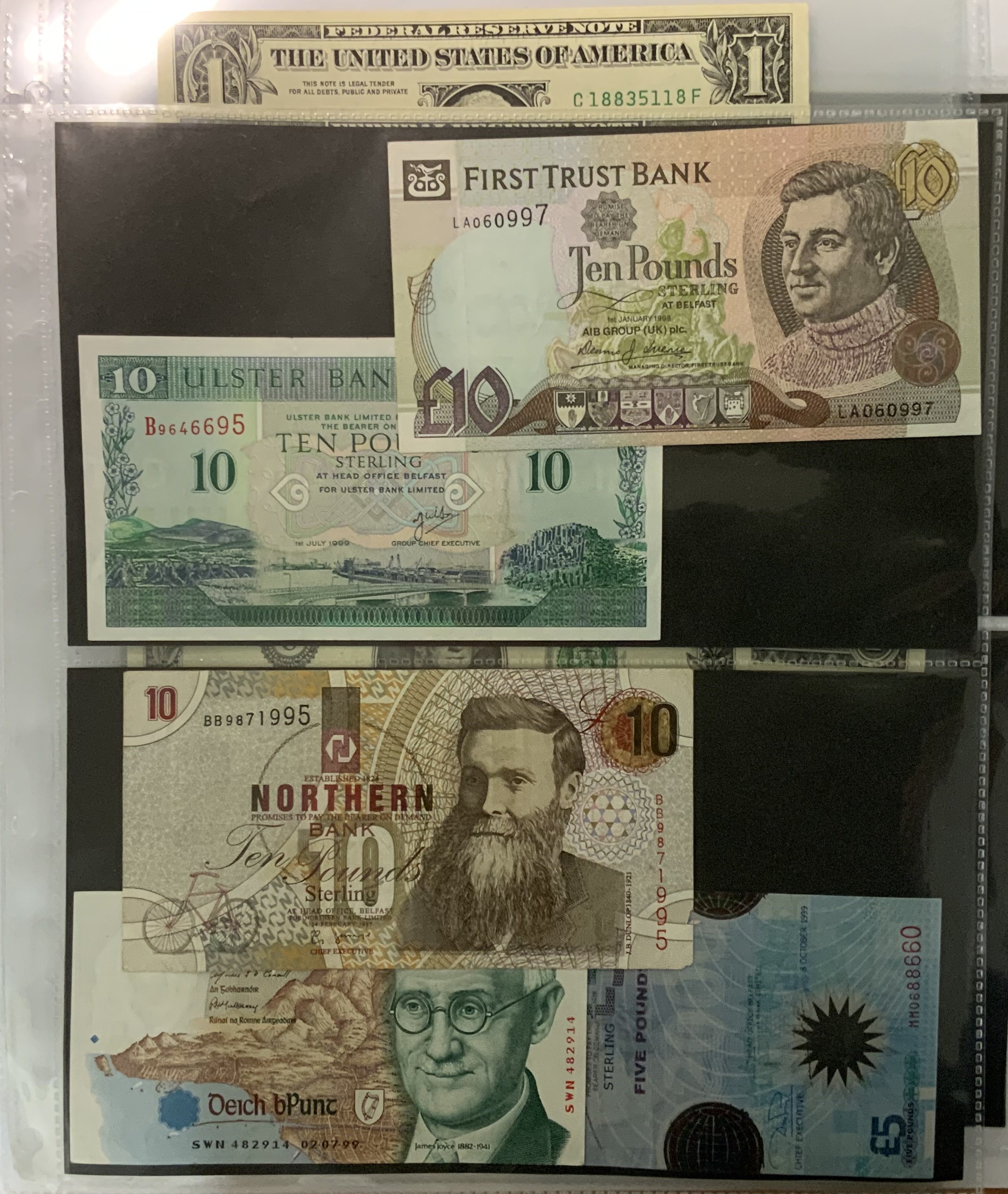 A good collection of Irish, Jersey, American, Euro banknotes most mint uncirculated.