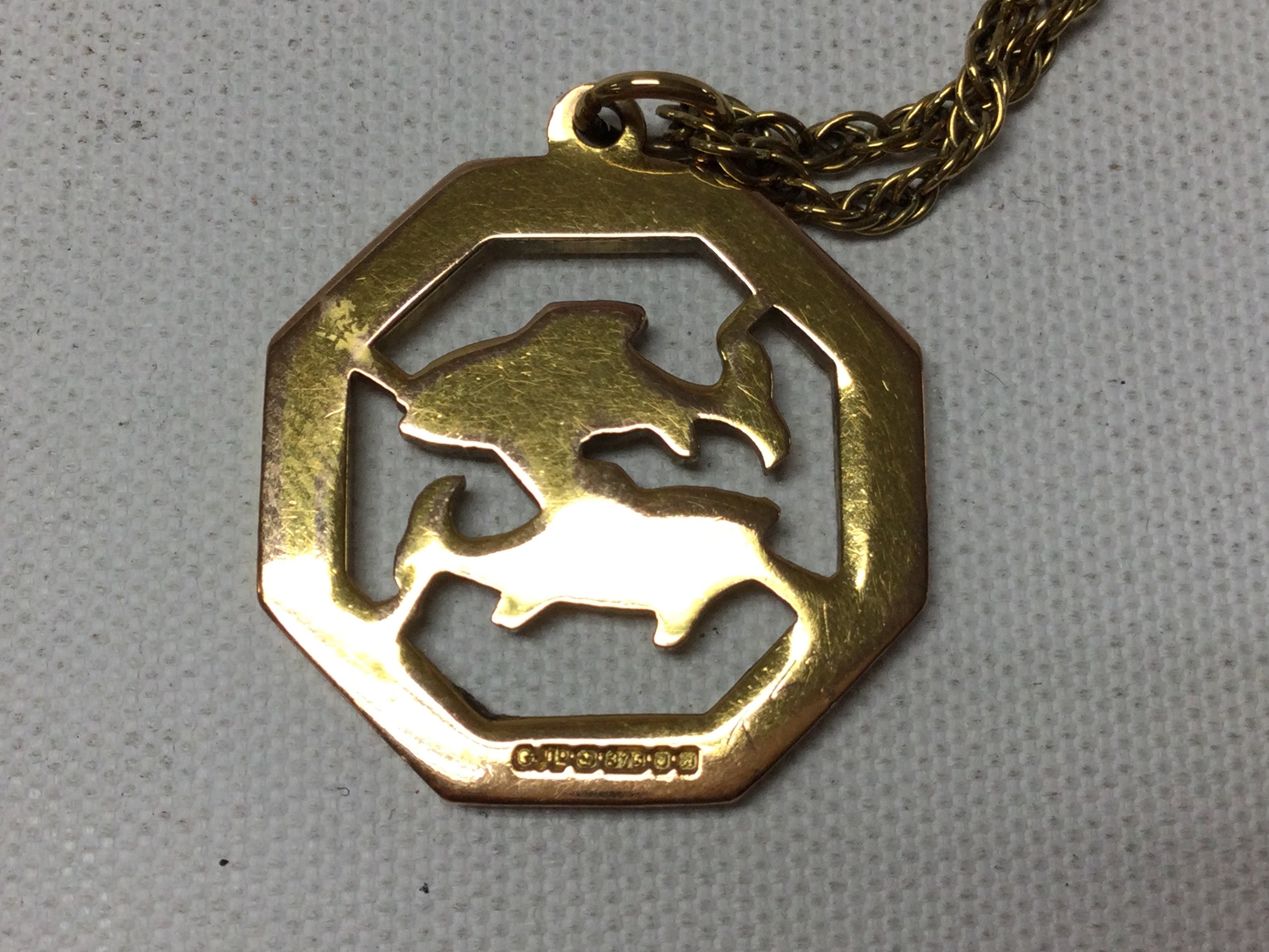 A 9ct Pisces pendant on a 9ct chain. 8.46g
