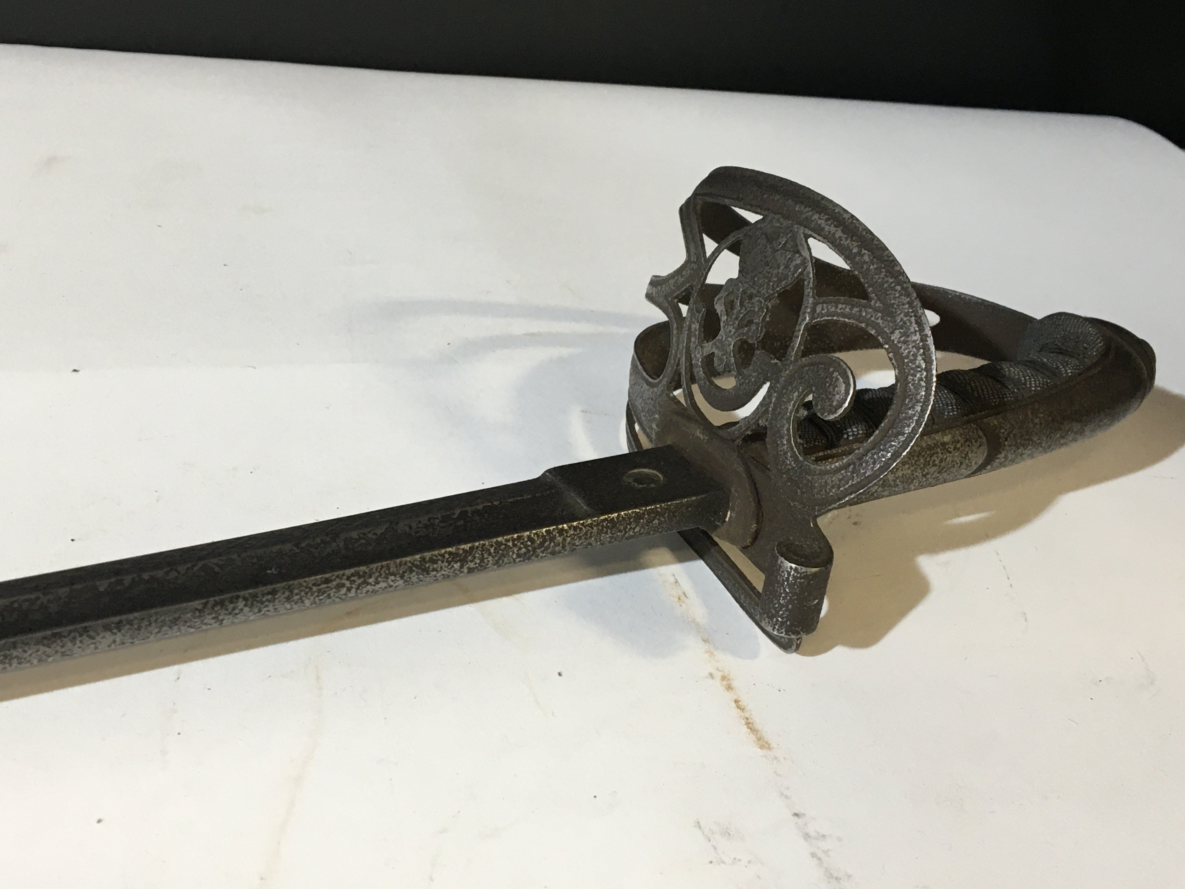 An Early 19th century military sword with a steel hilt and blade no scabbard.