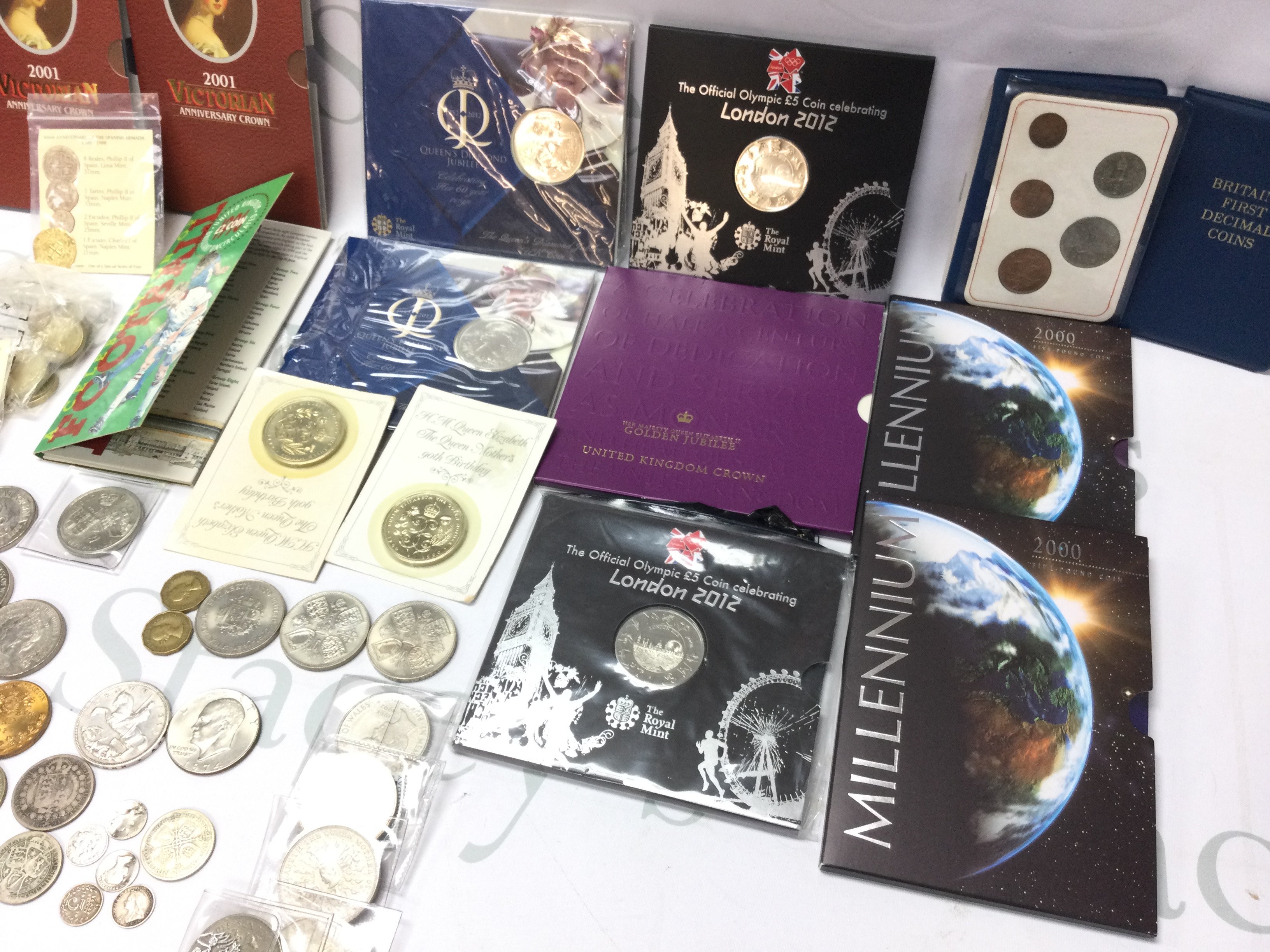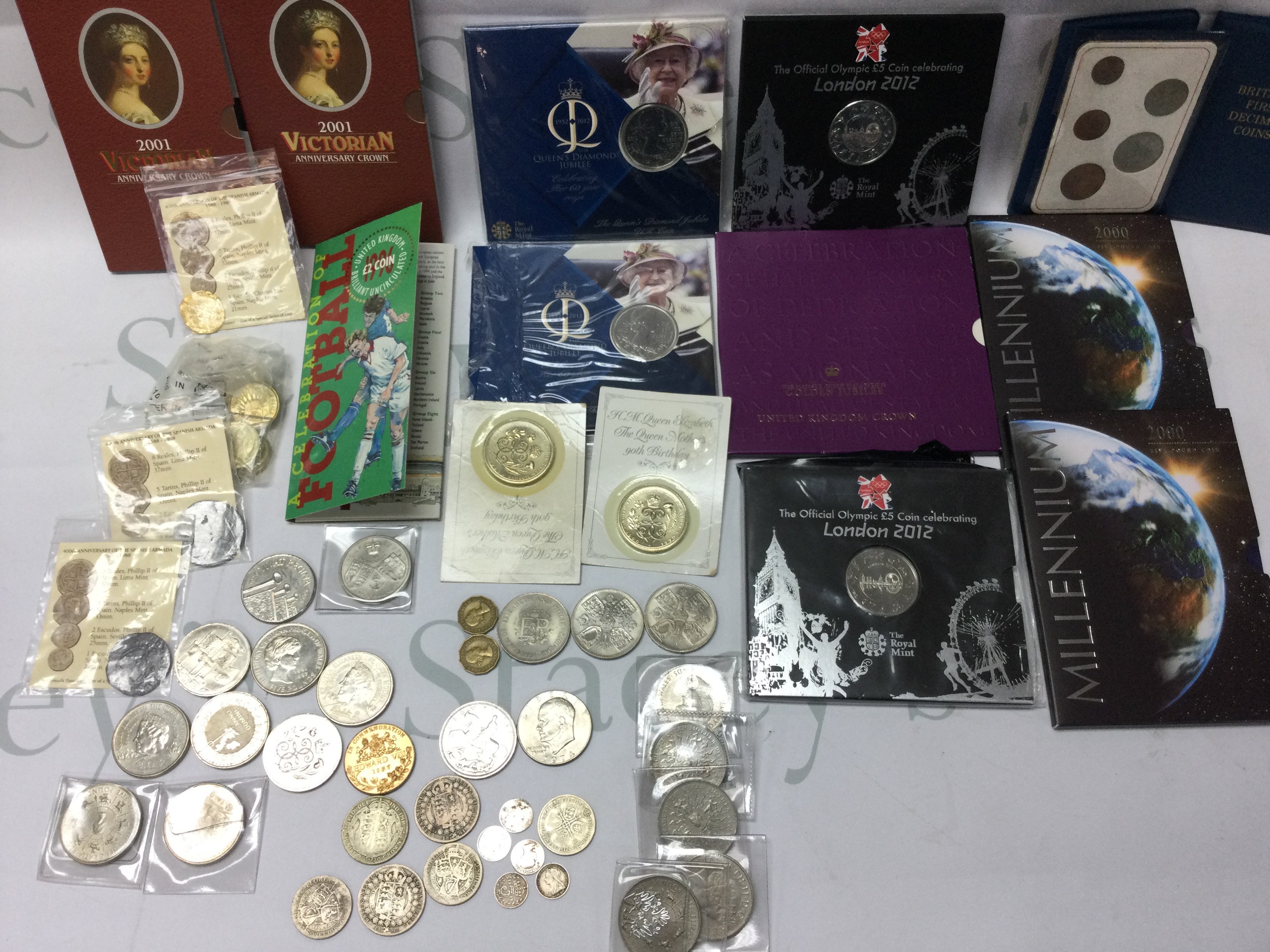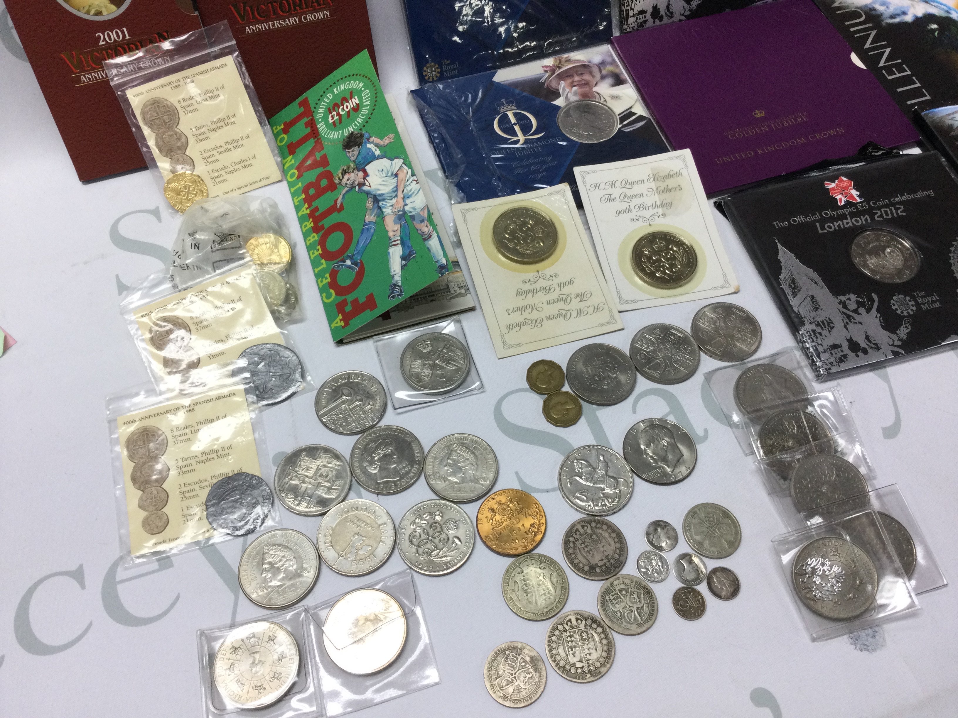 Small collection of coinage and commemorative coins. Including some pre 1920 coins.
