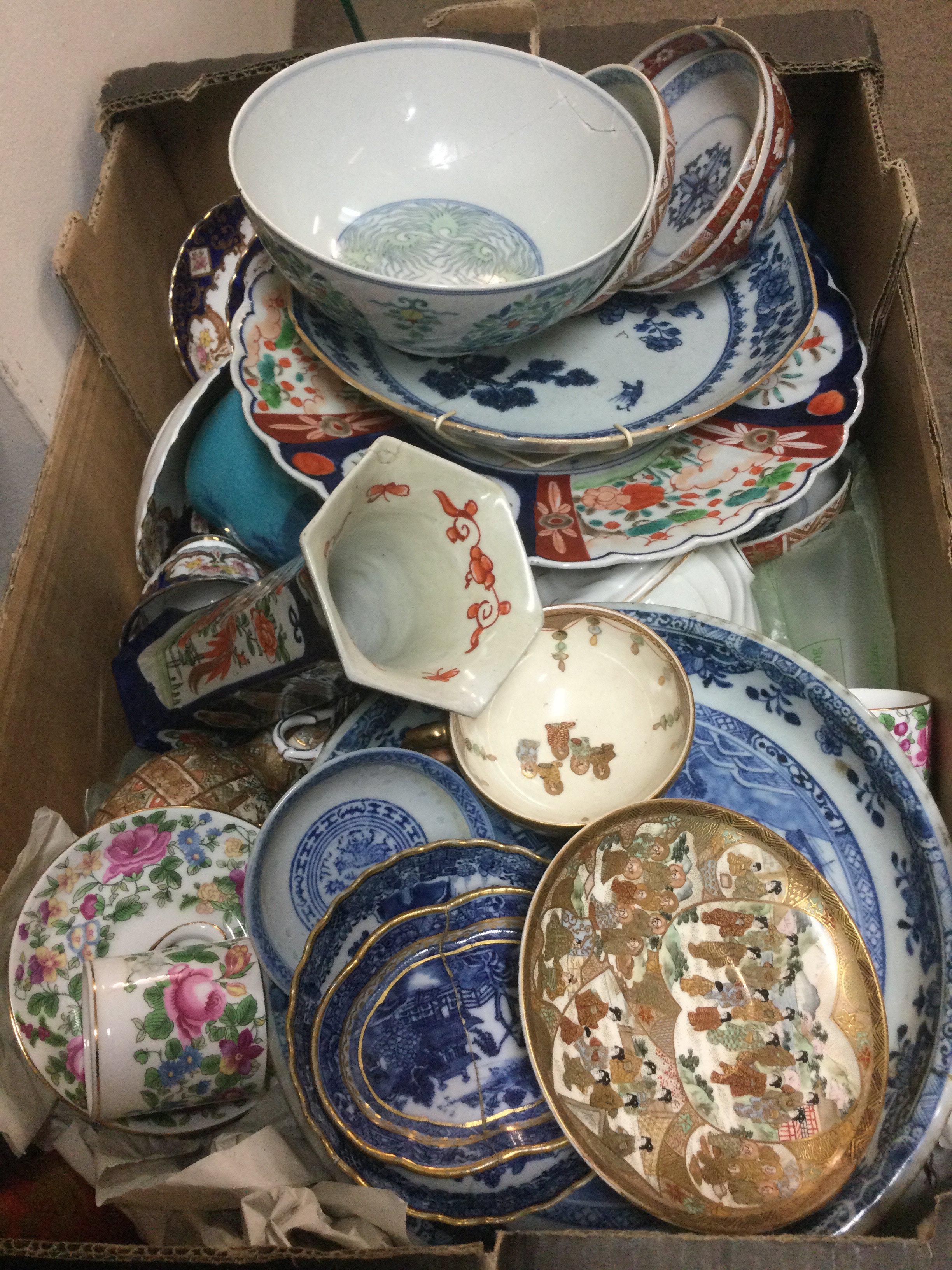 A box of Chinese and Japanese ceramics. Shipping category D.