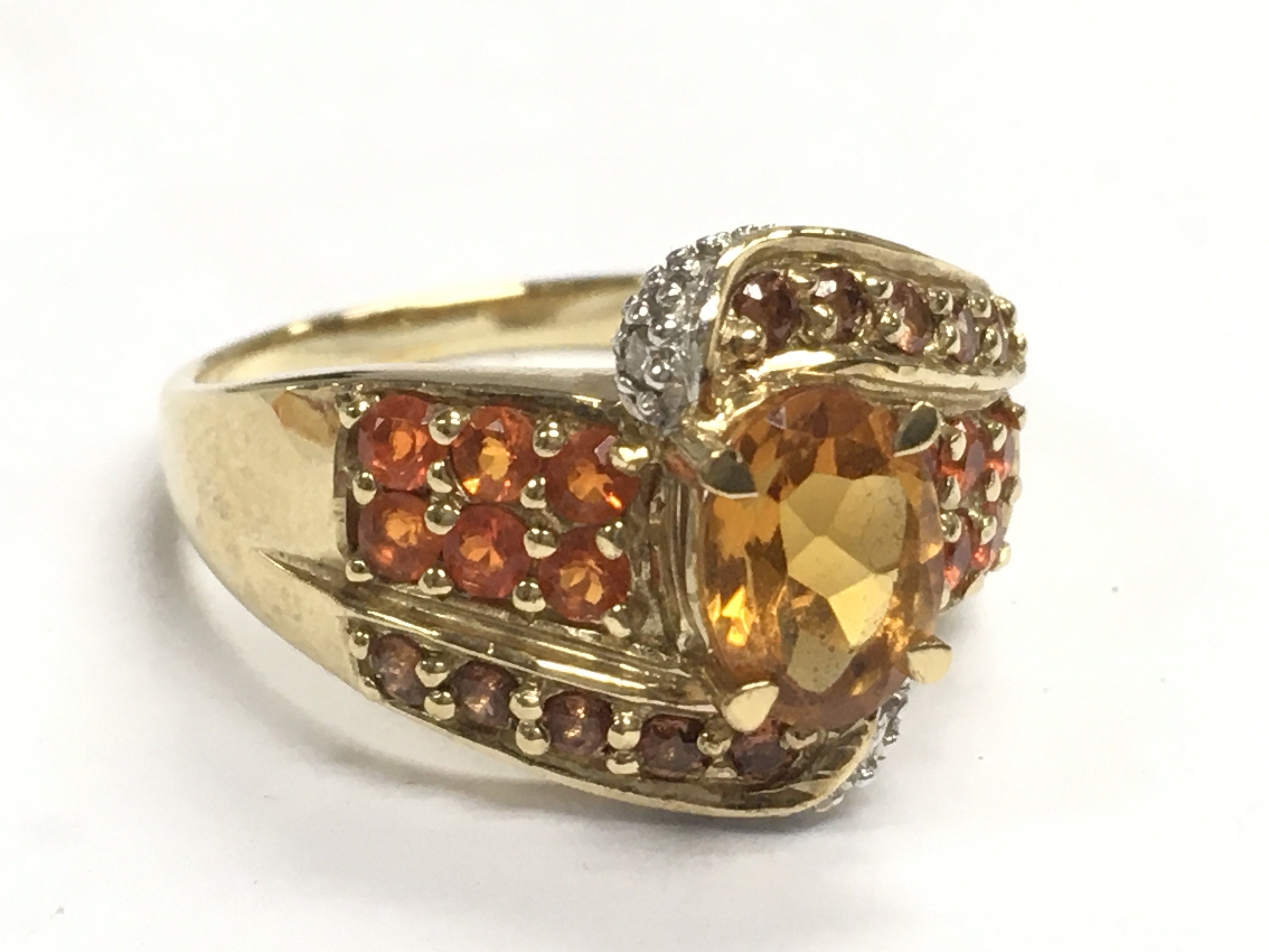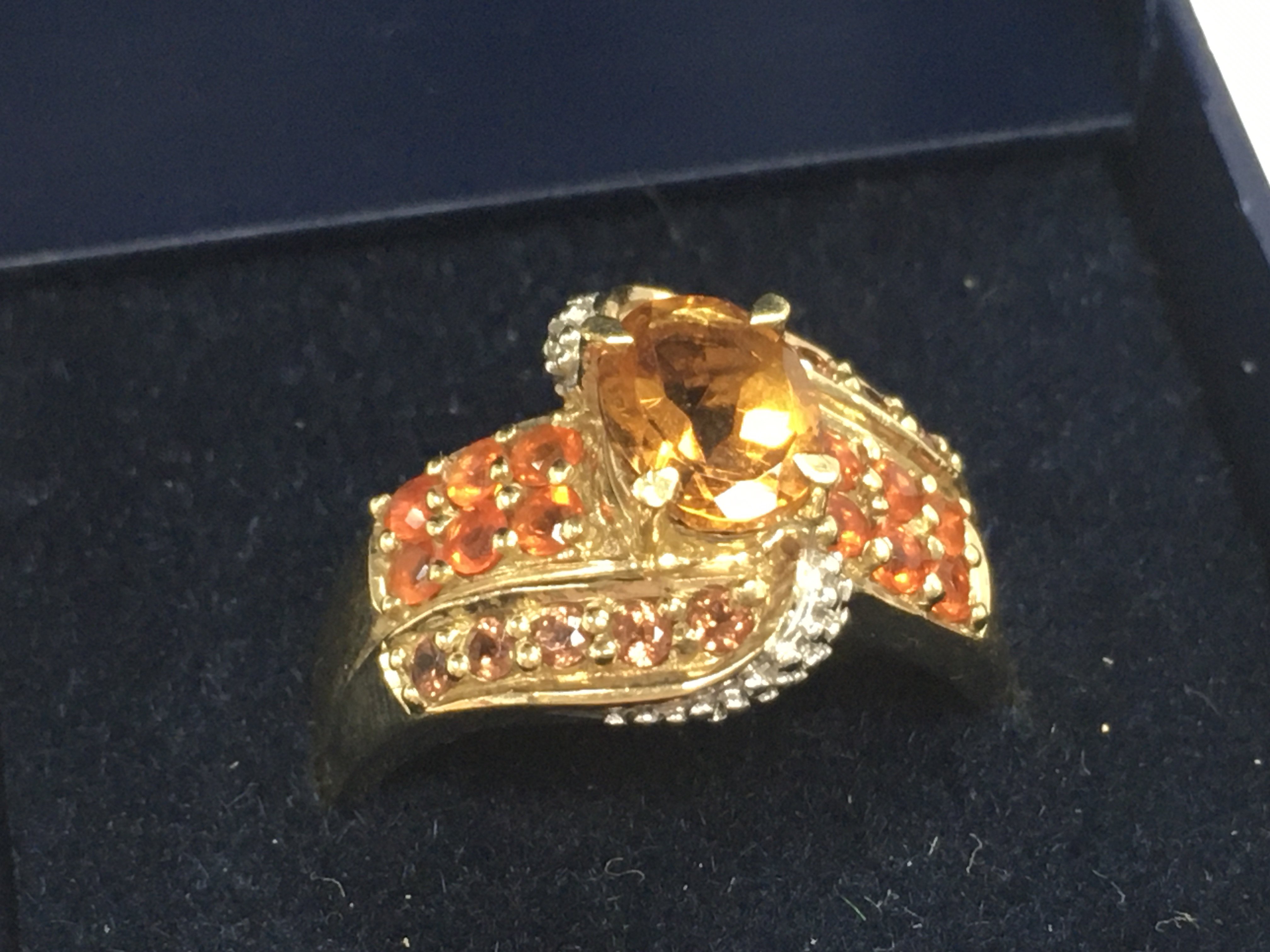 9 carat gold ring set with citrine stones , total weight 4.8g . Postage catA