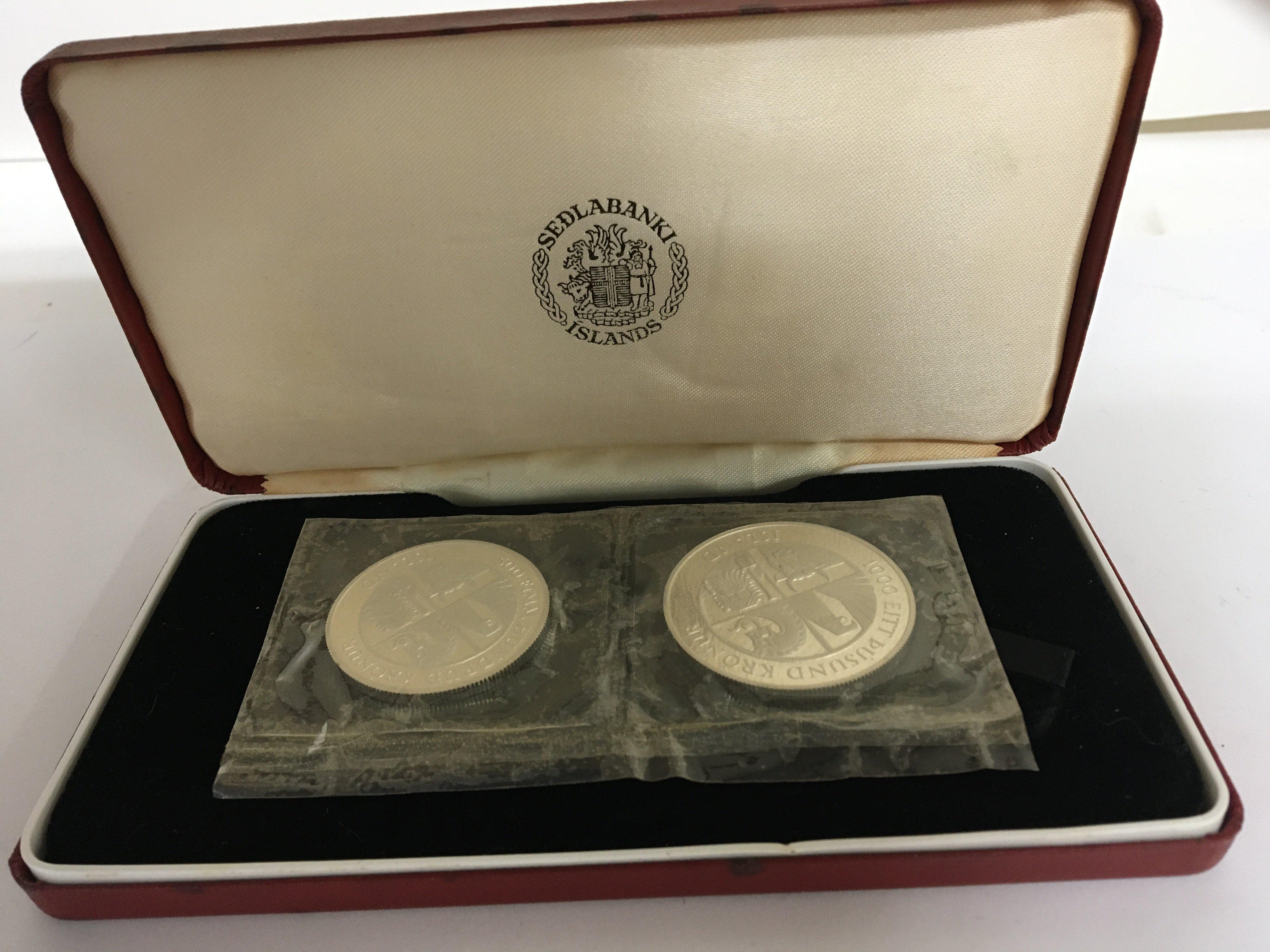 A cased double silver coin commemorative set Iceland 874-1974